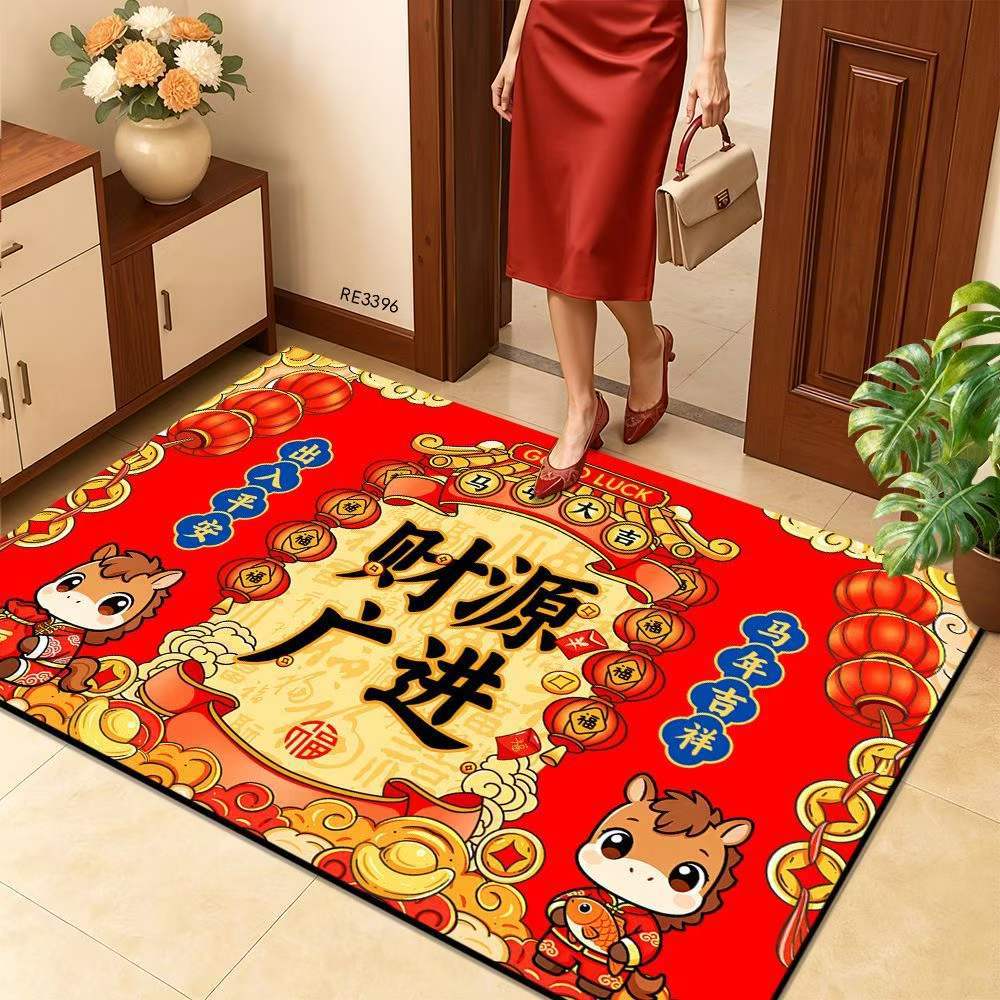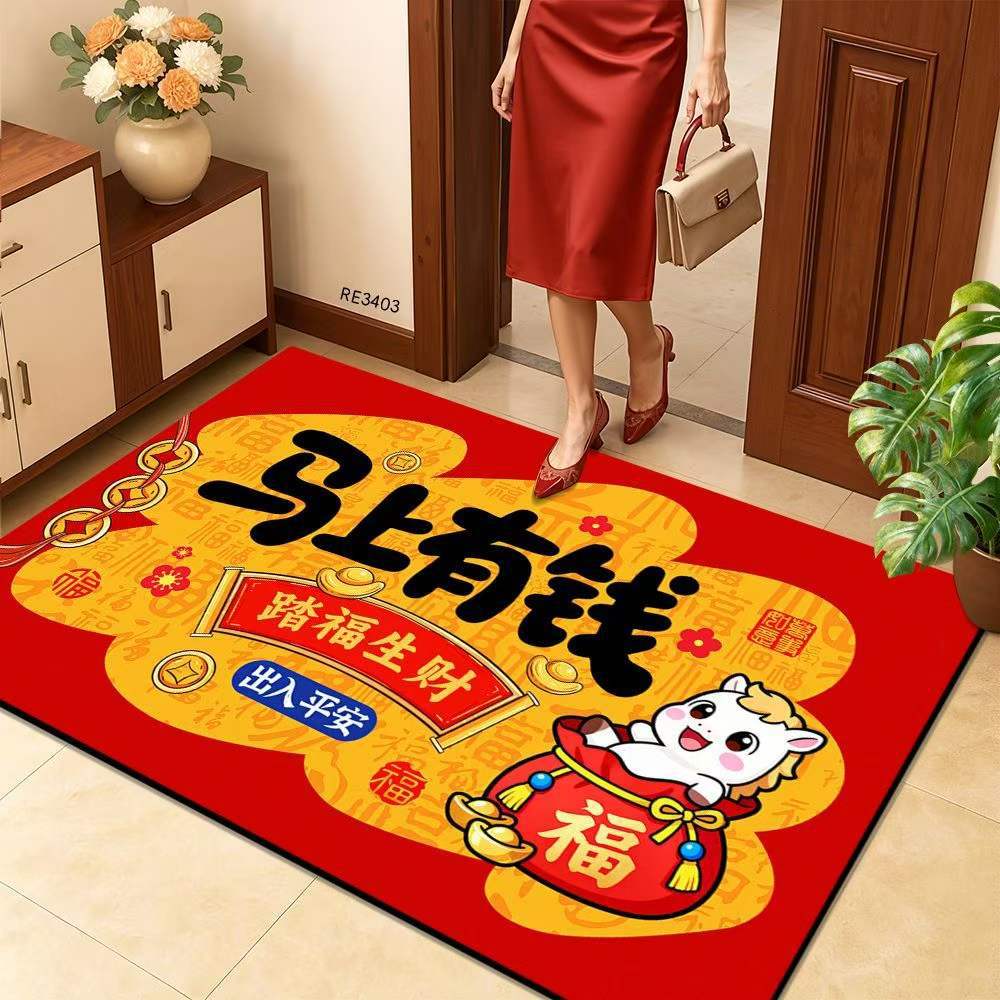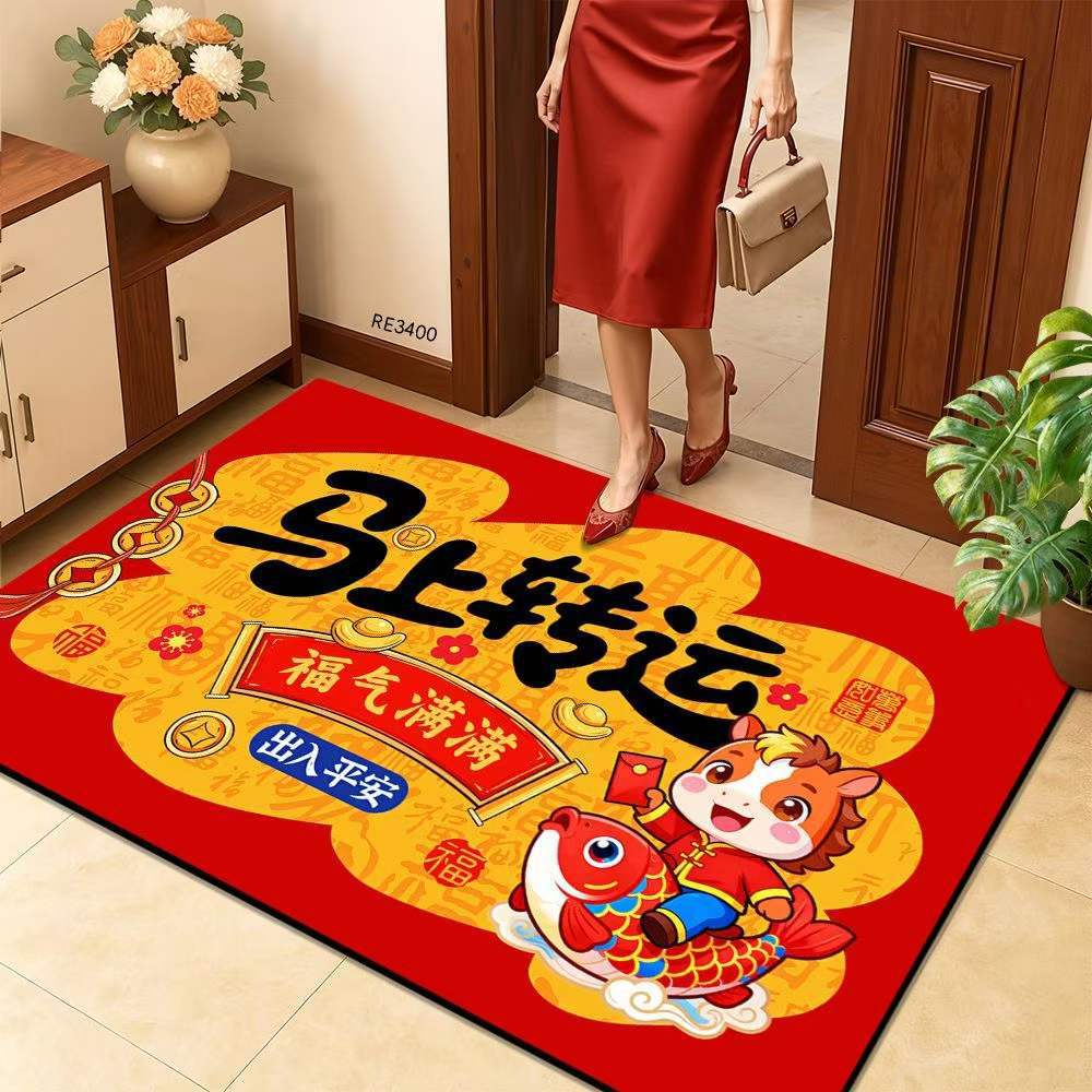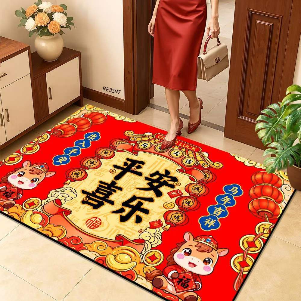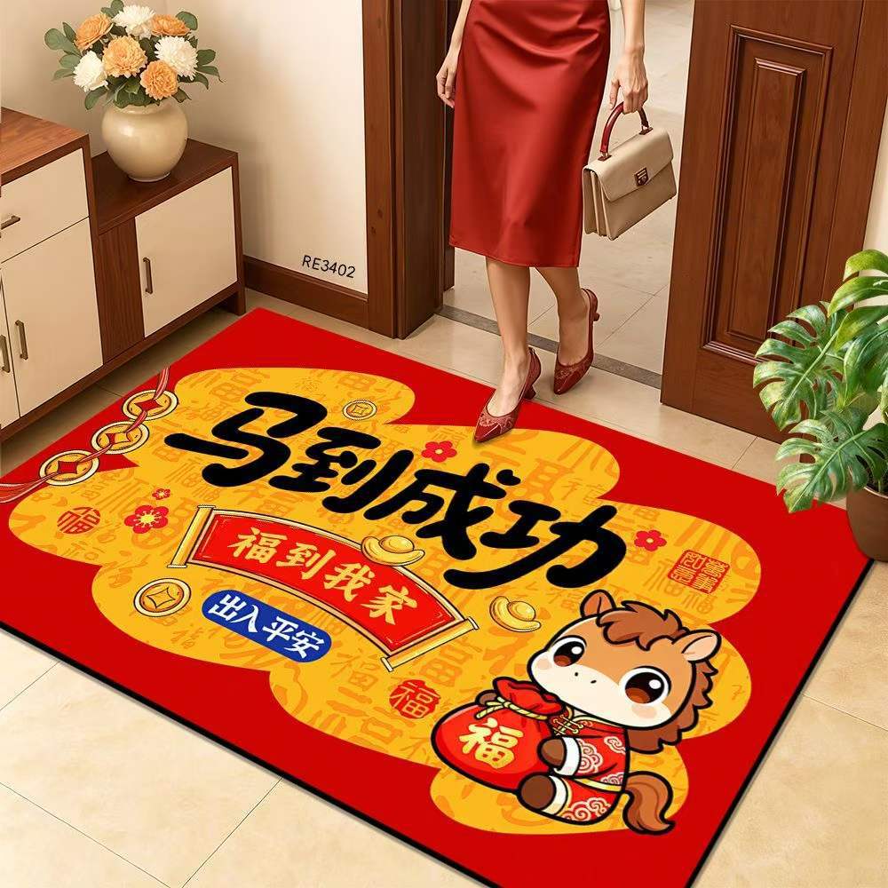 2026马年红色喜庆进门地毯新年脚垫子银行店庆保险印字广告门垫