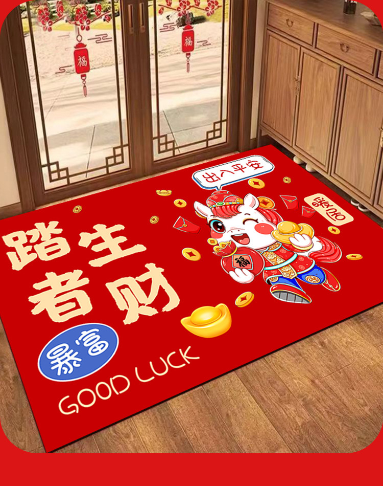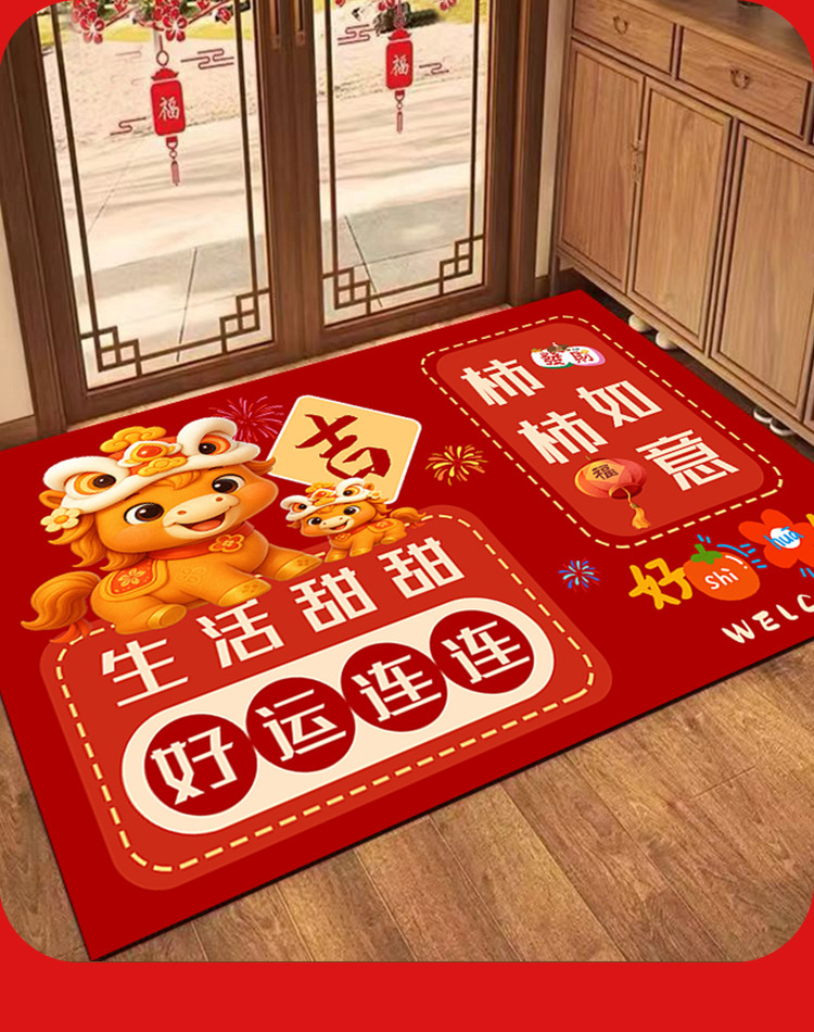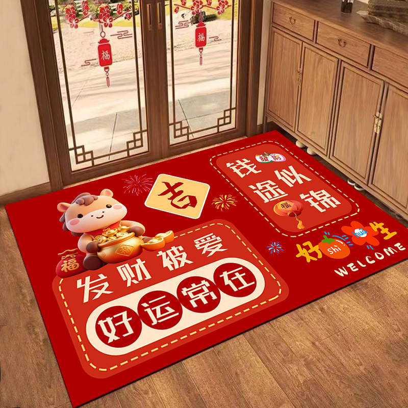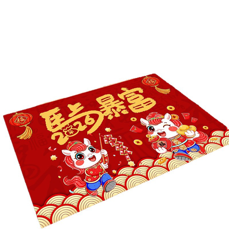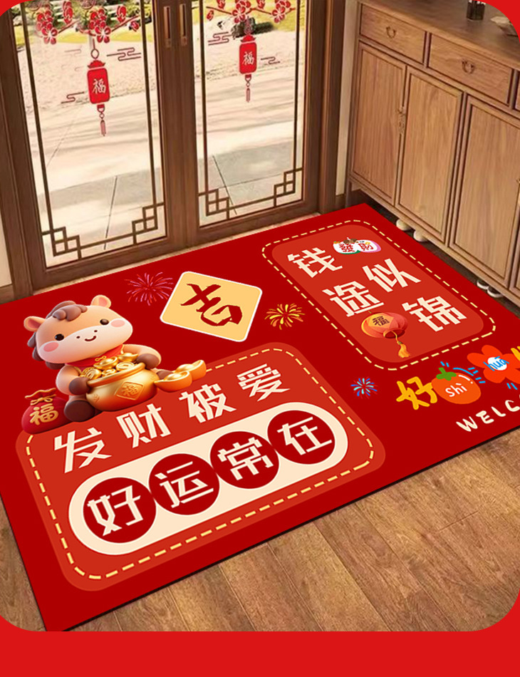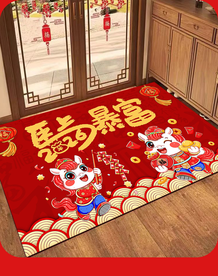 2026马年新年卡通喜庆地垫进门入户玄关浴室水晶绒脚垫地毯门垫