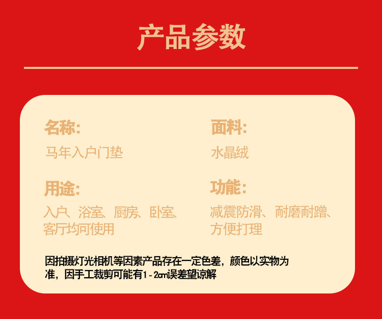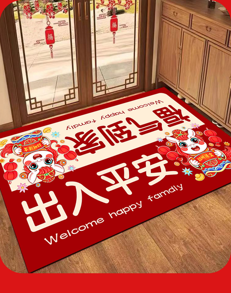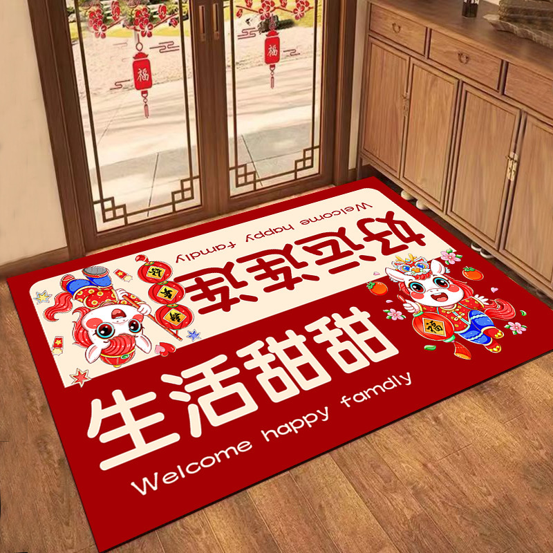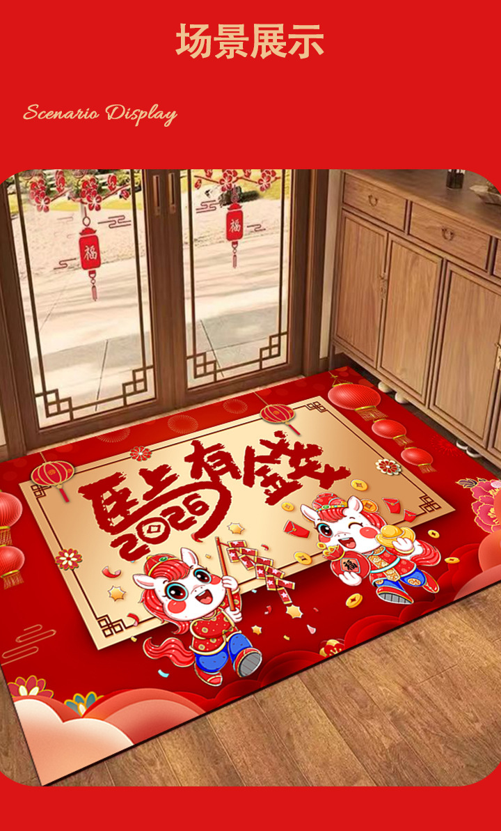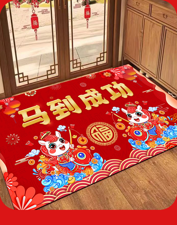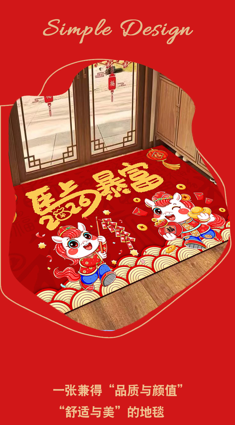 2026马年新年卡通喜庆地垫进门入户玄关浴室水晶绒脚垫地毯门垫