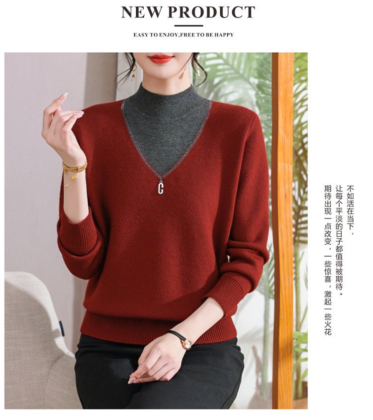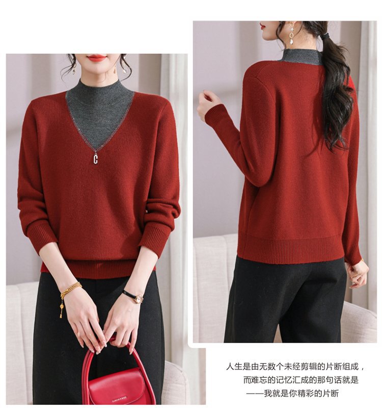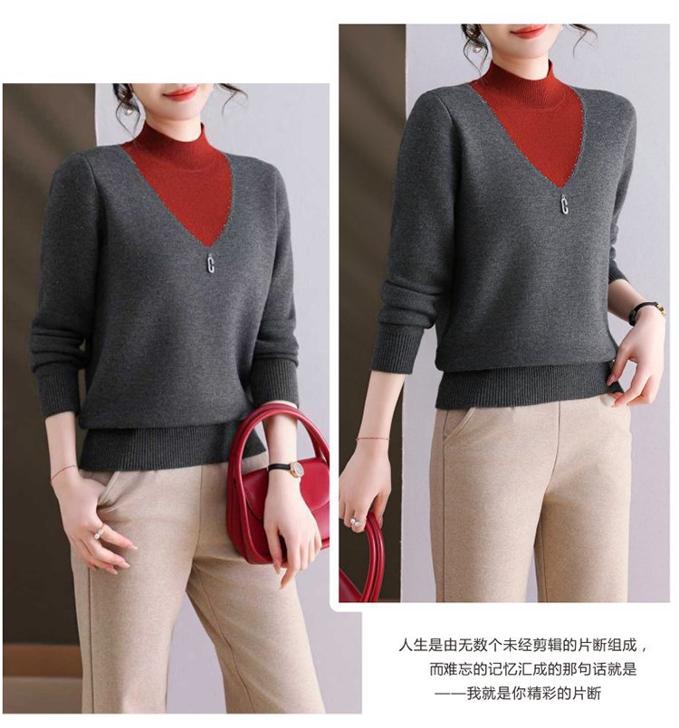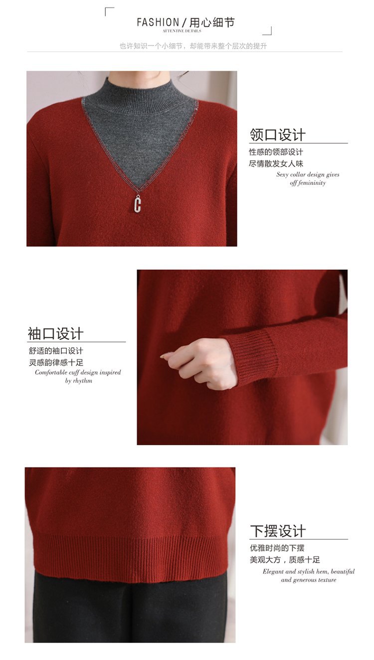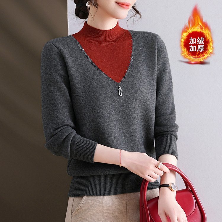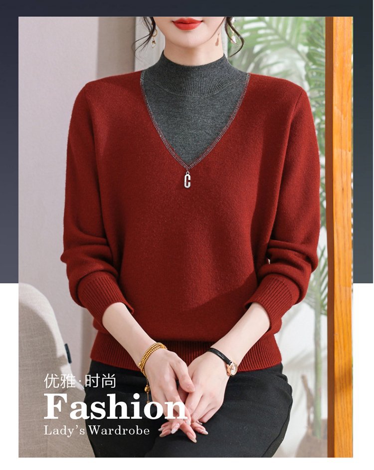 喜婆婆中老年妈妈装秋冬加绒加厚打底衫红色喜庆本命年半高领毛衣