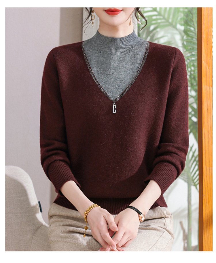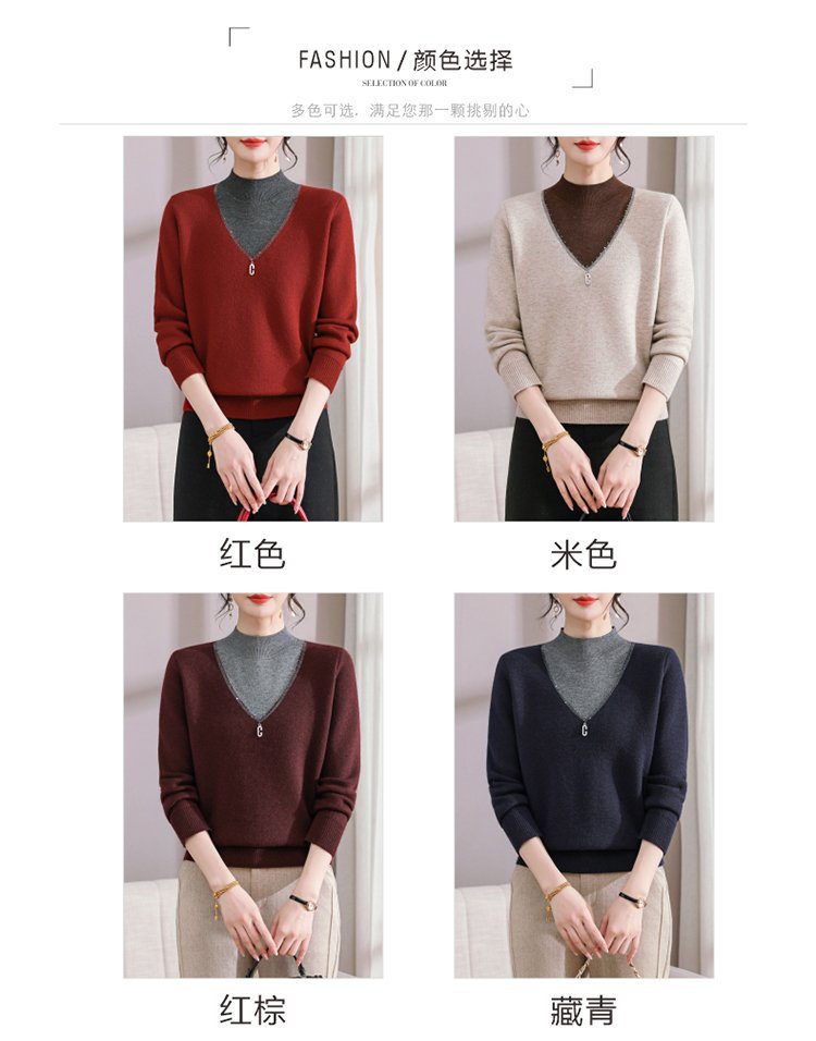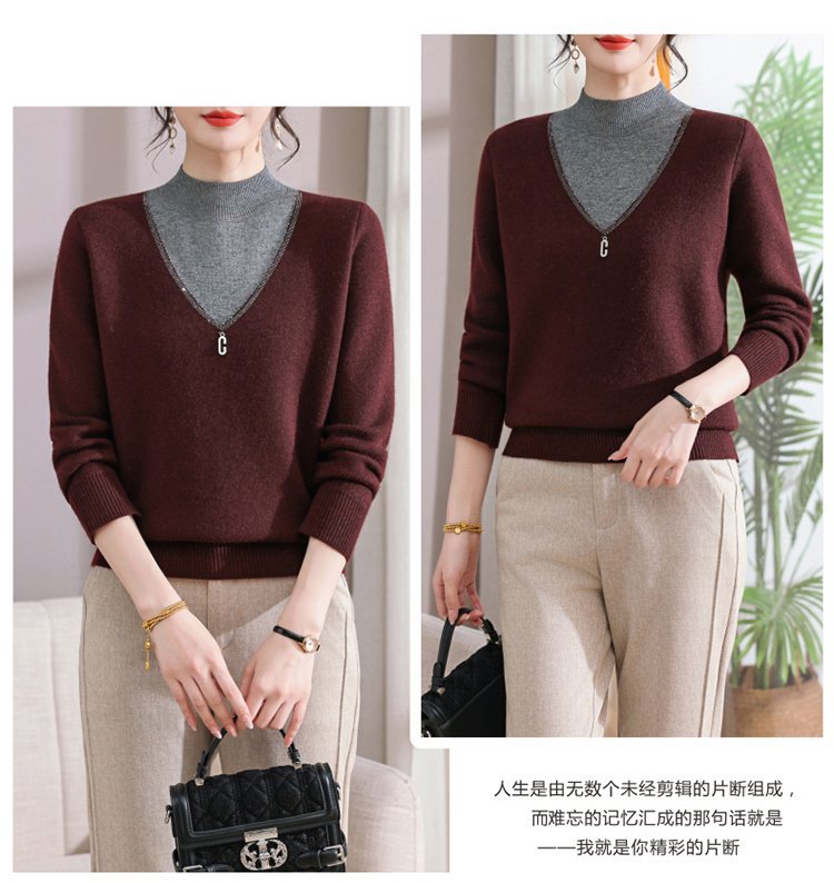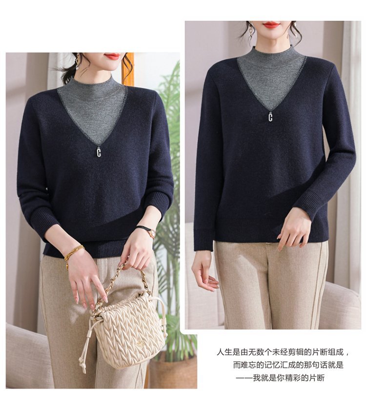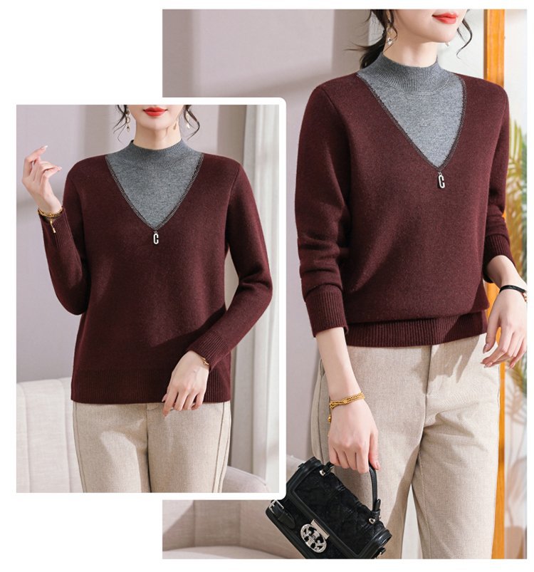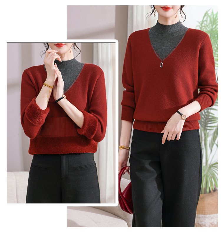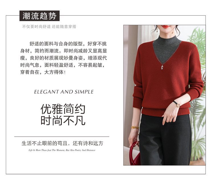 喜婆婆中老年妈妈装秋冬加绒加厚打底衫红色喜庆本命年半高领毛衣