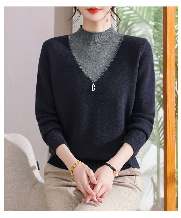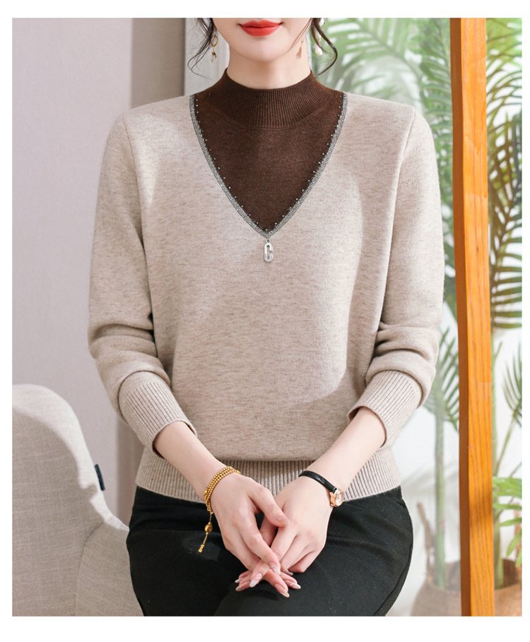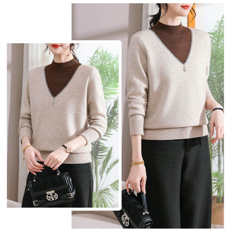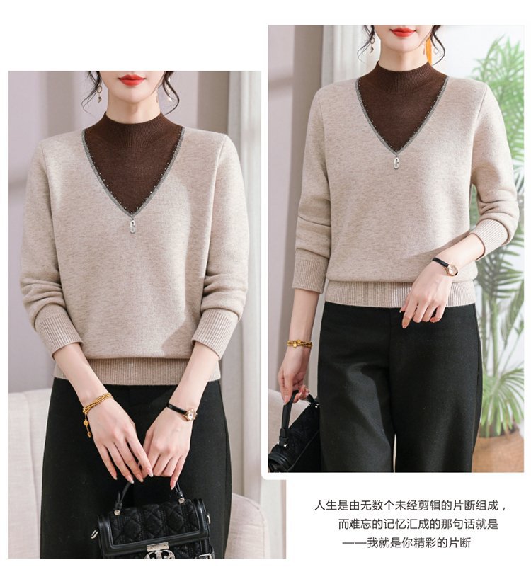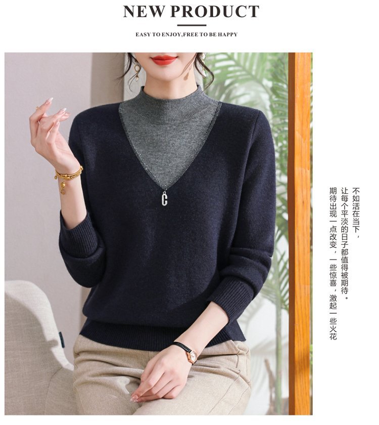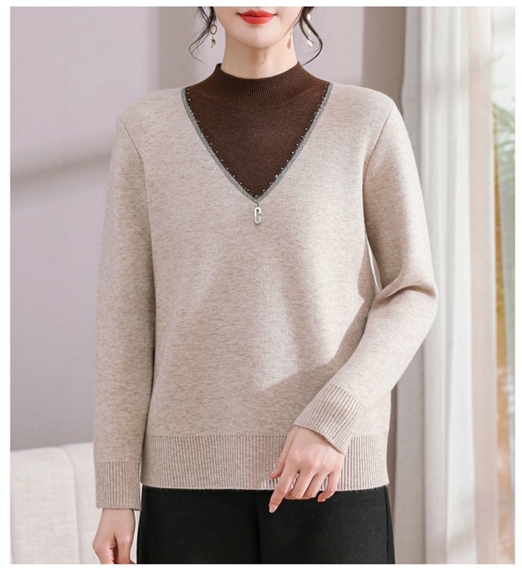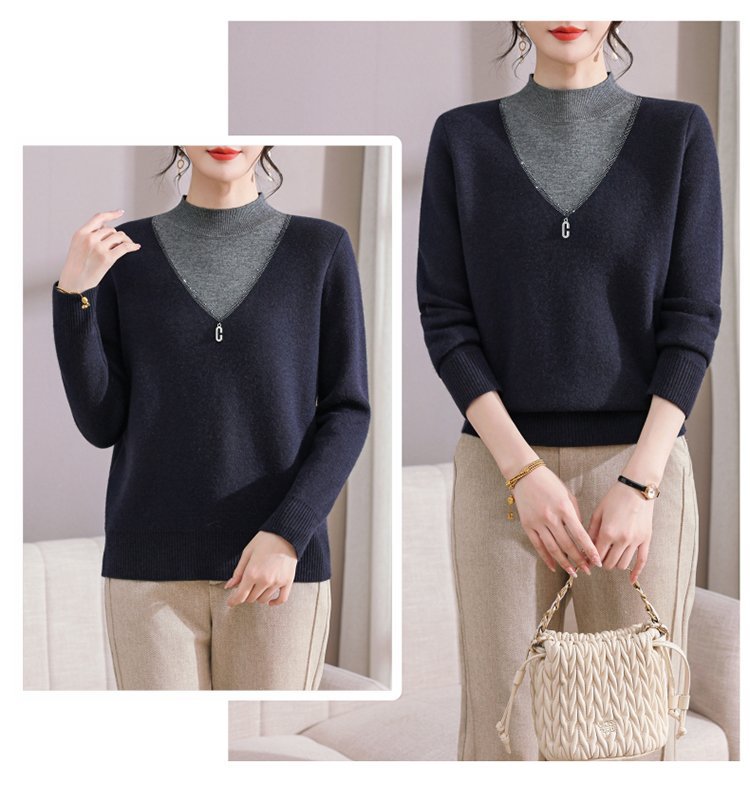 喜婆婆中老年妈妈装秋冬加绒加厚打底衫红色喜庆本命年半高领毛衣