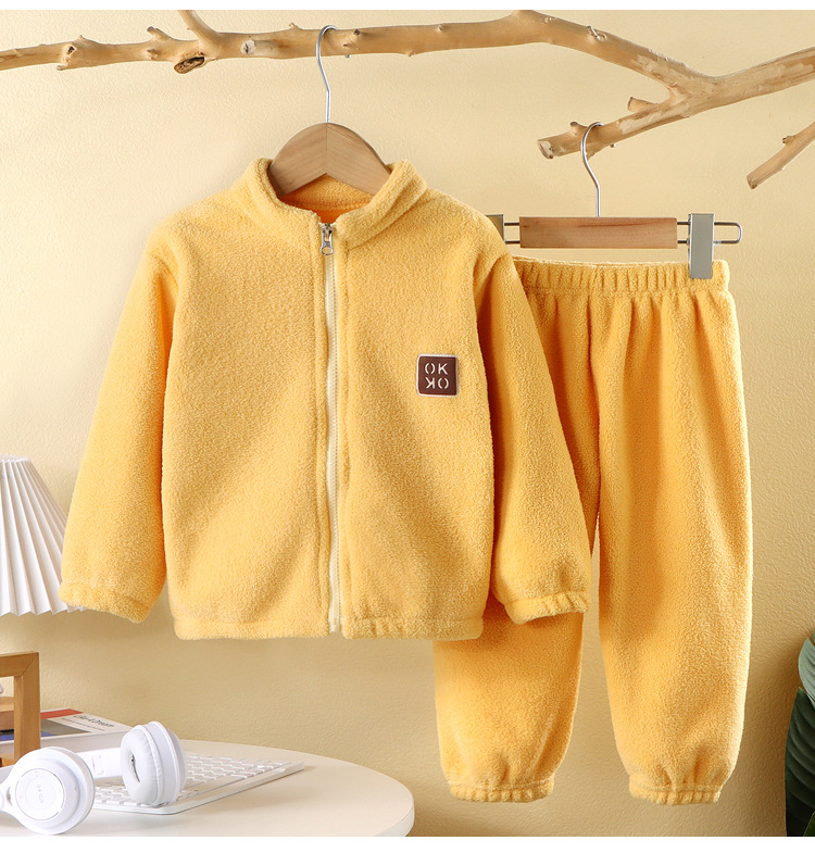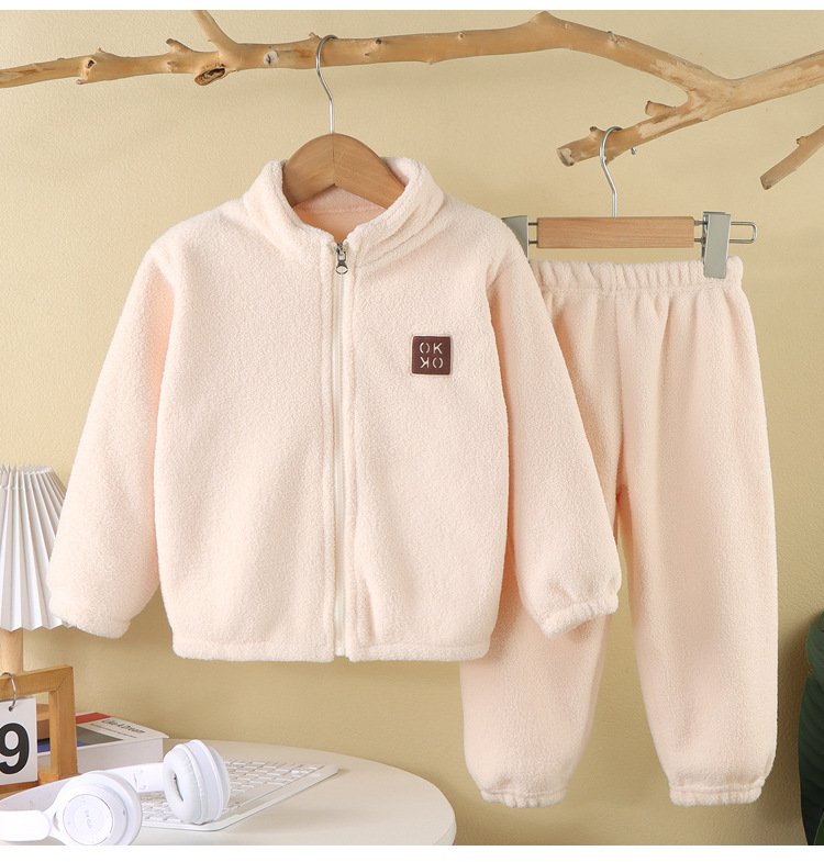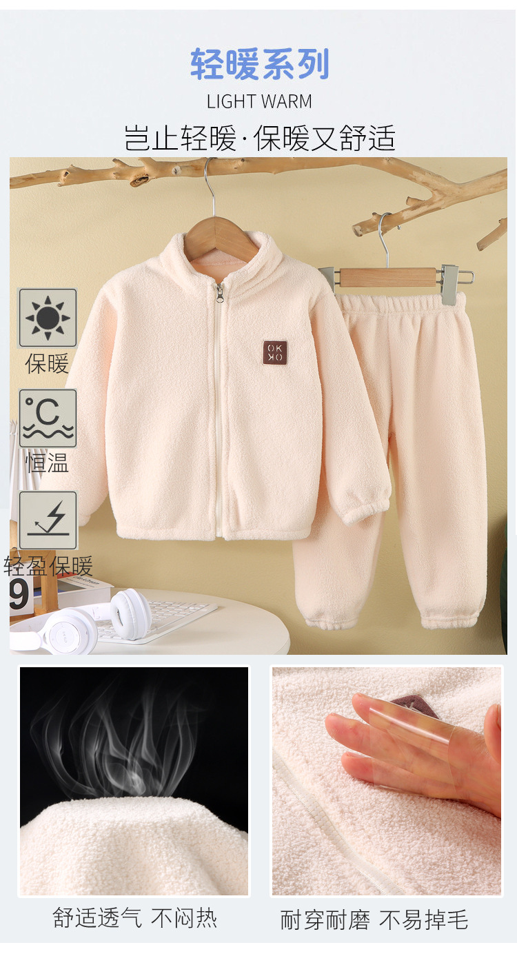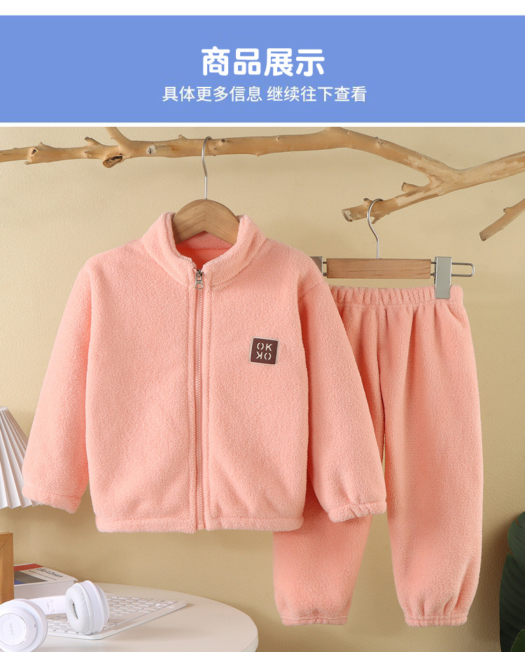新款秋冬季婴幼儿童加厚拉链开衫套装男女童舒适贴身宝宝家居服
