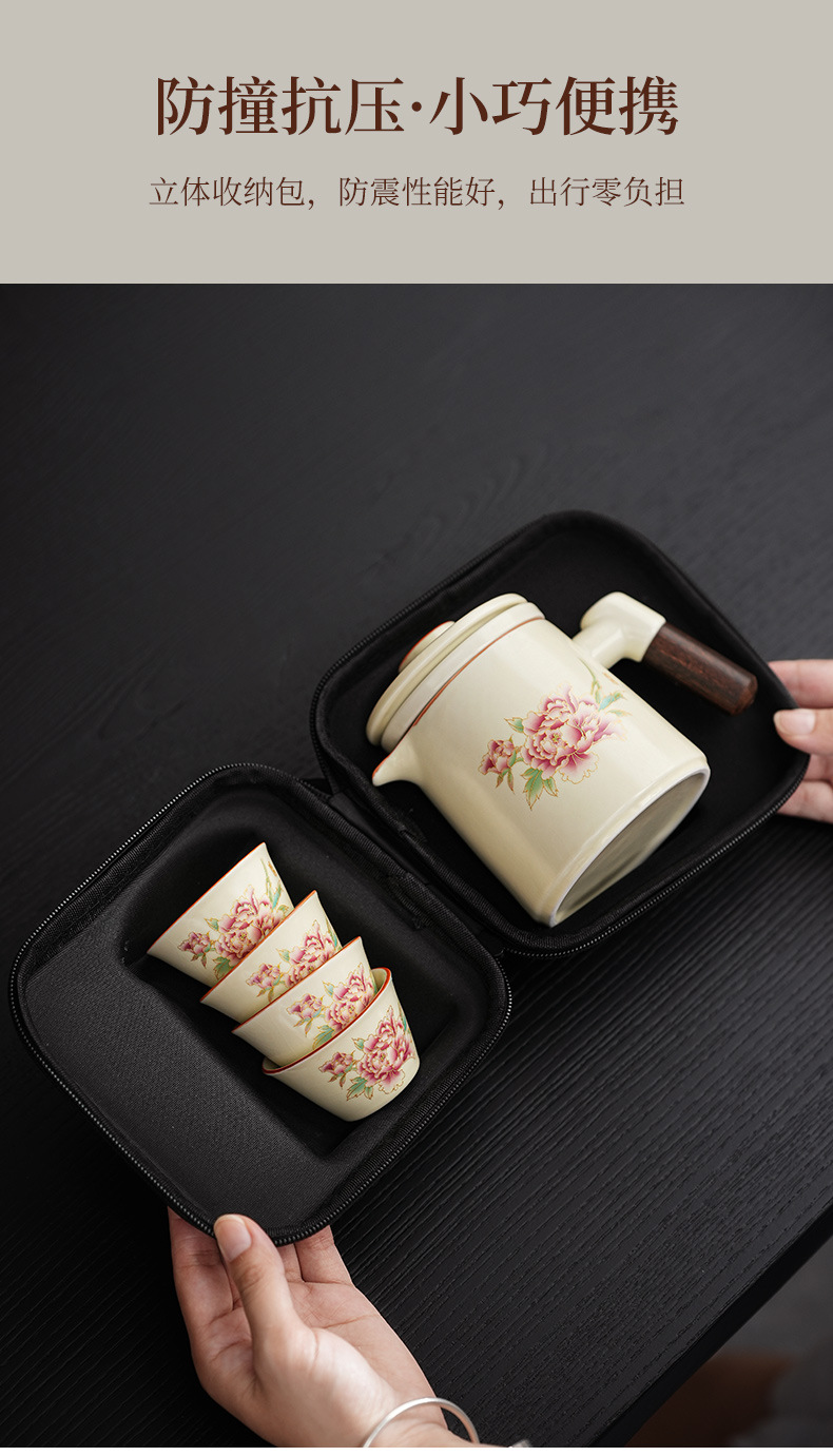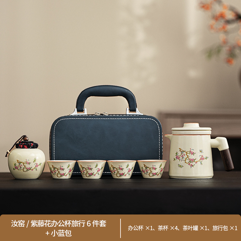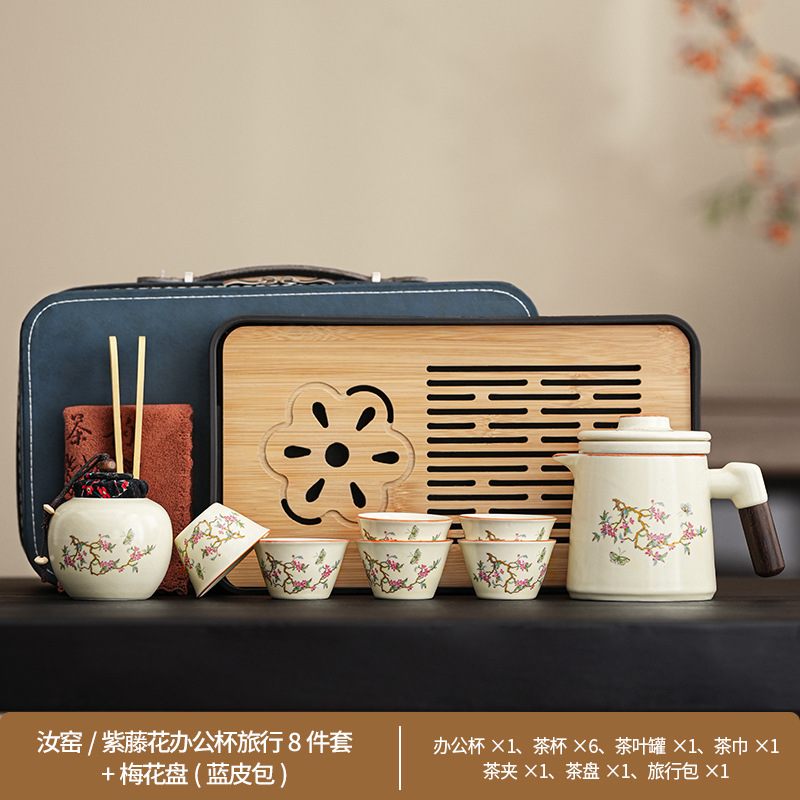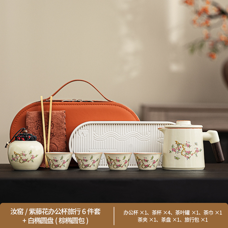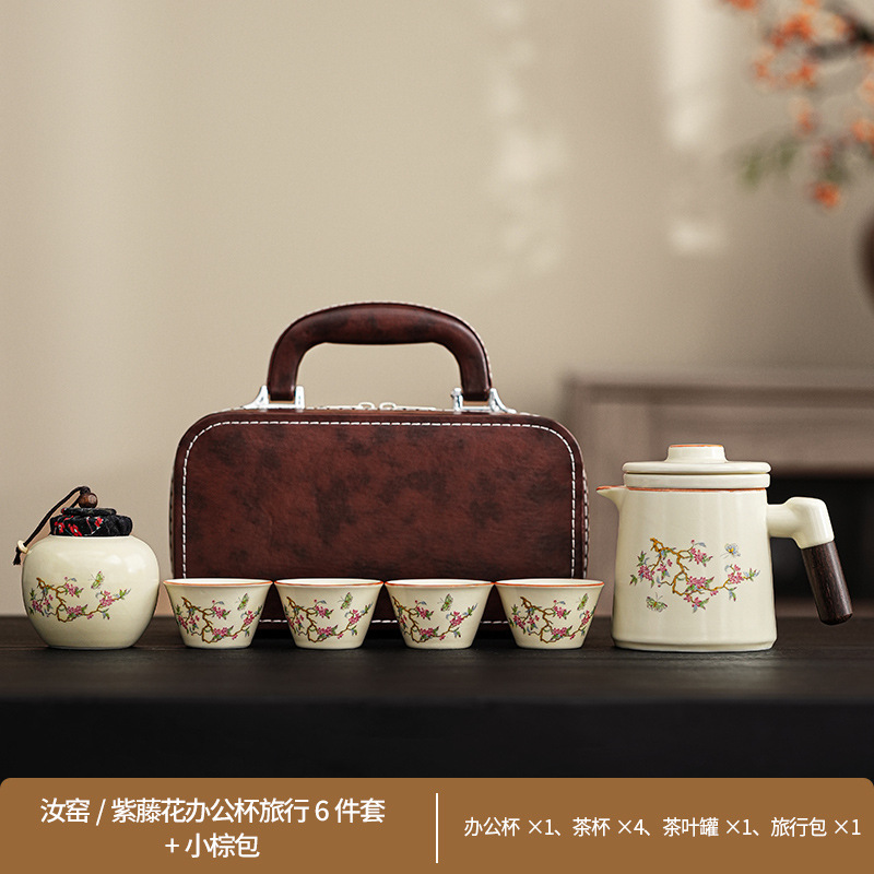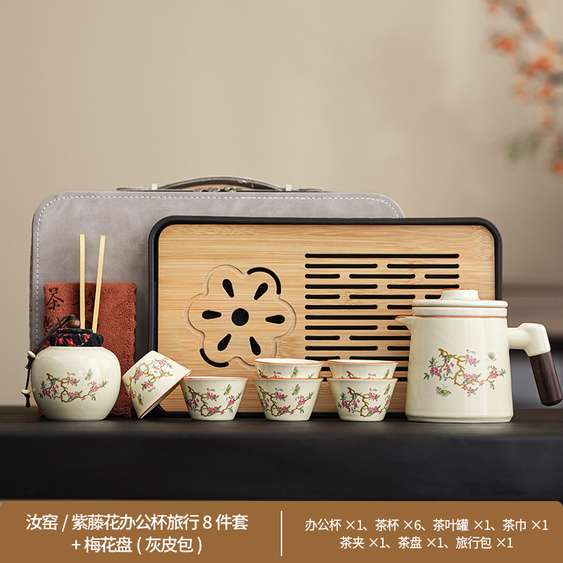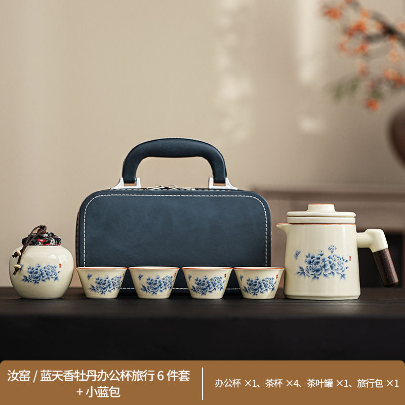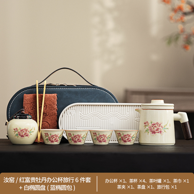 高级汝窑套装商务礼品牡丹办公泡茶壶可携带皮包茶器定印开业礼品