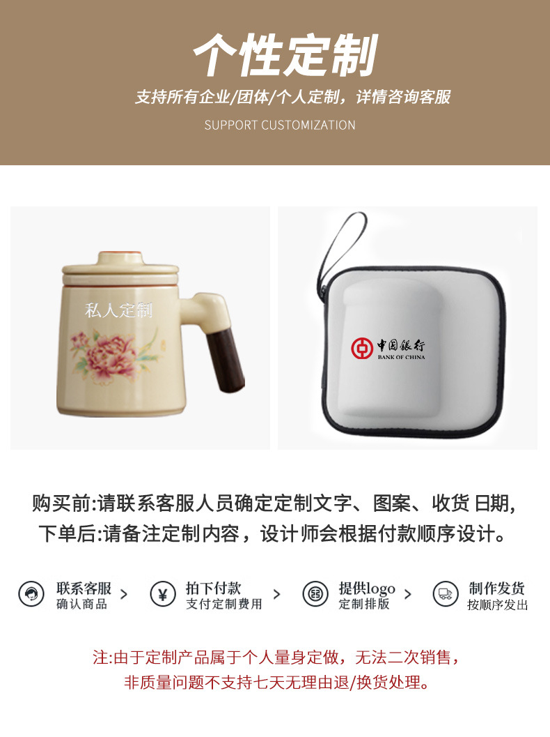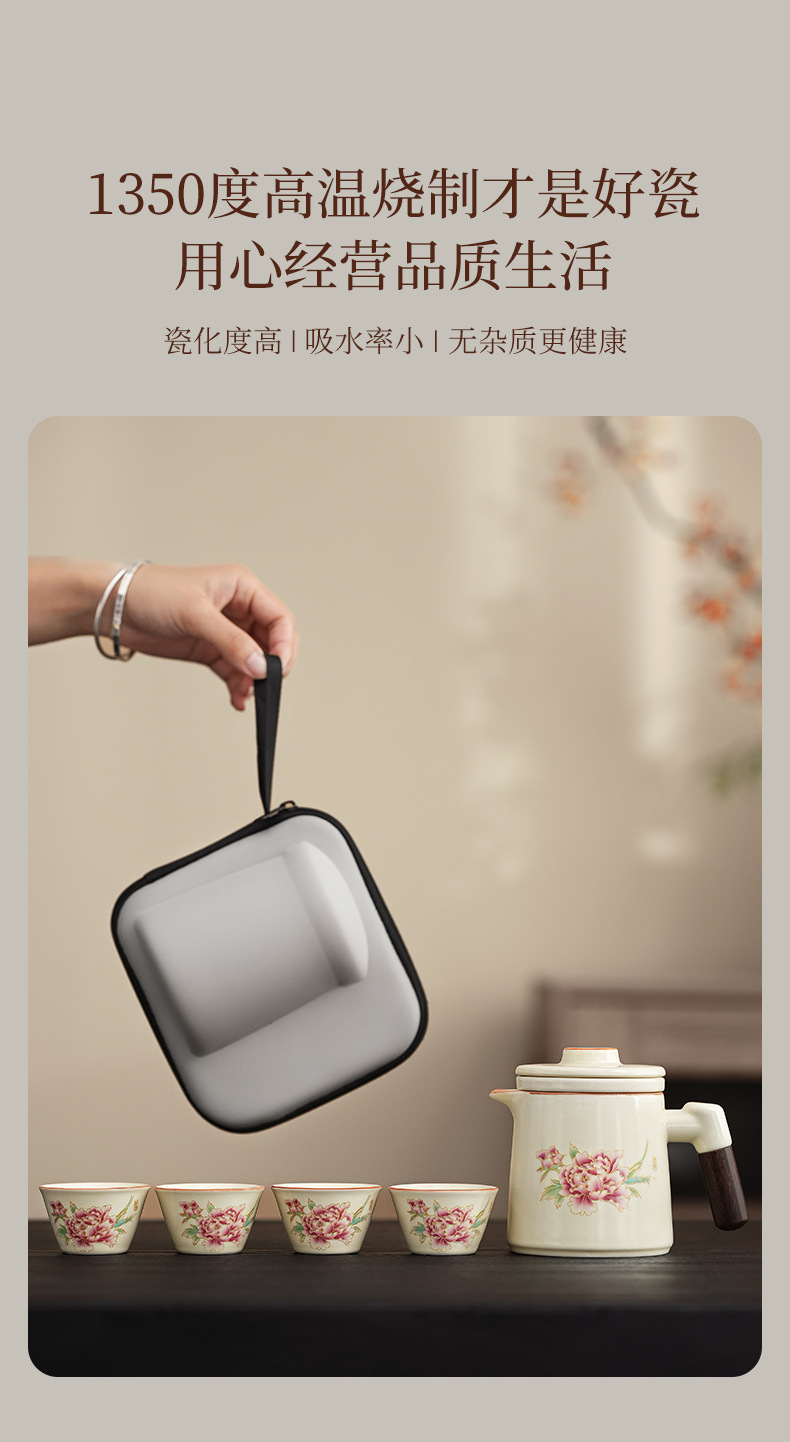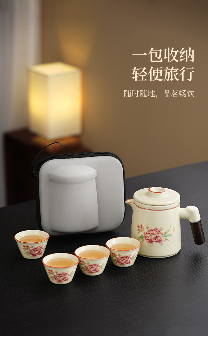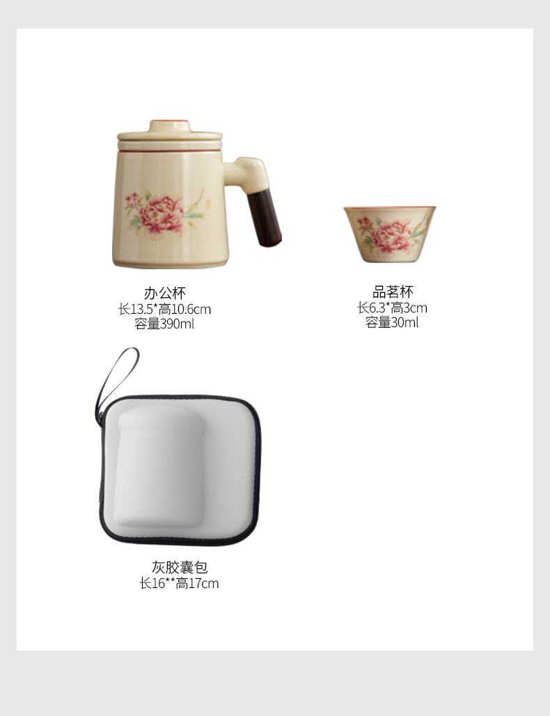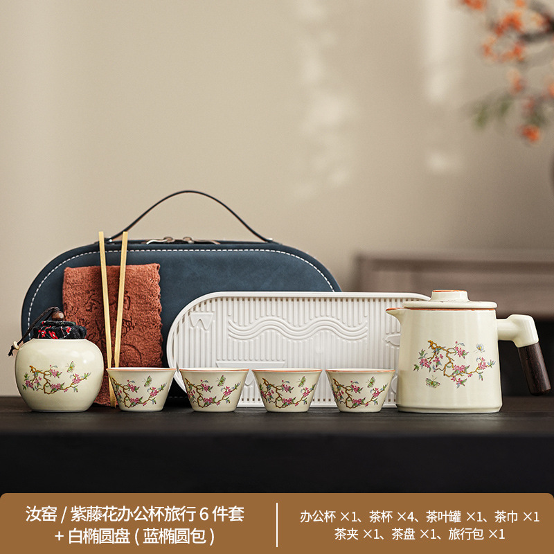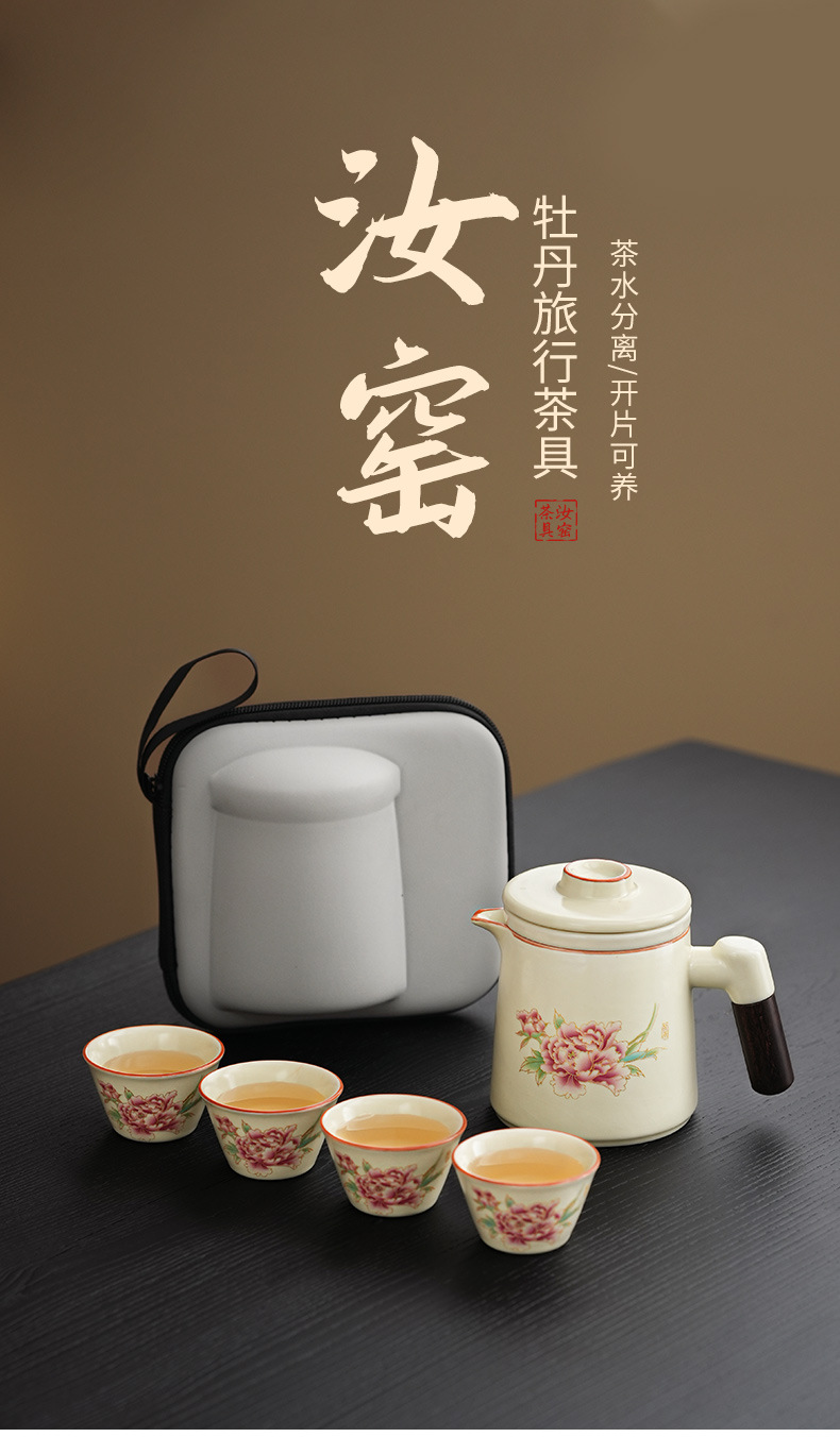 高级汝窑套装商务礼品牡丹办公泡茶壶可携带皮包茶器定印开业礼品