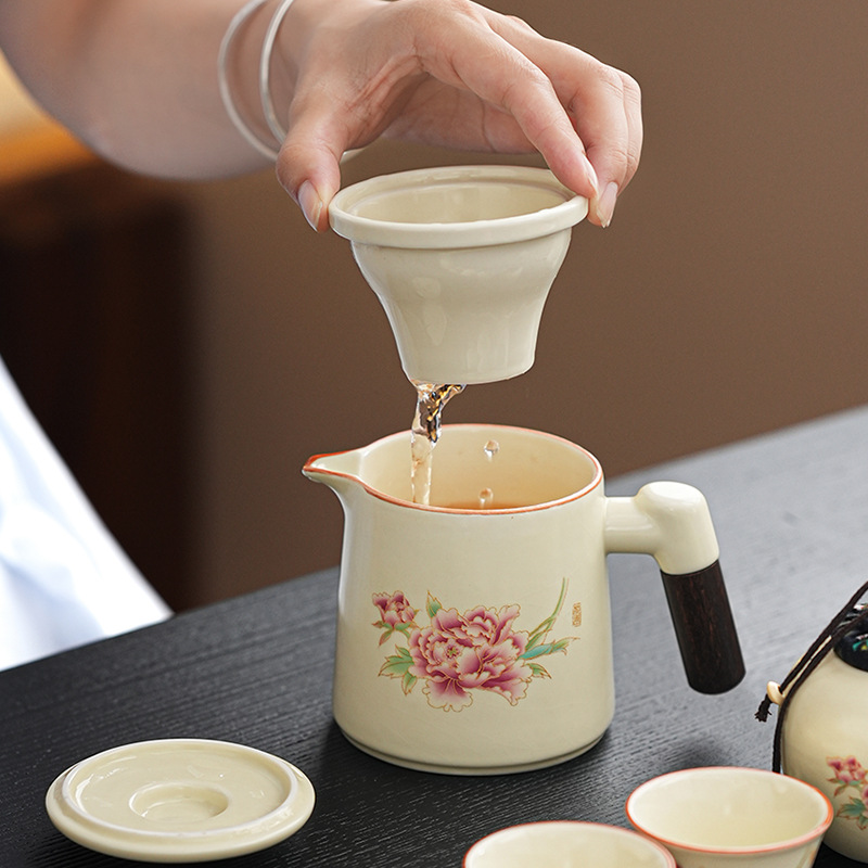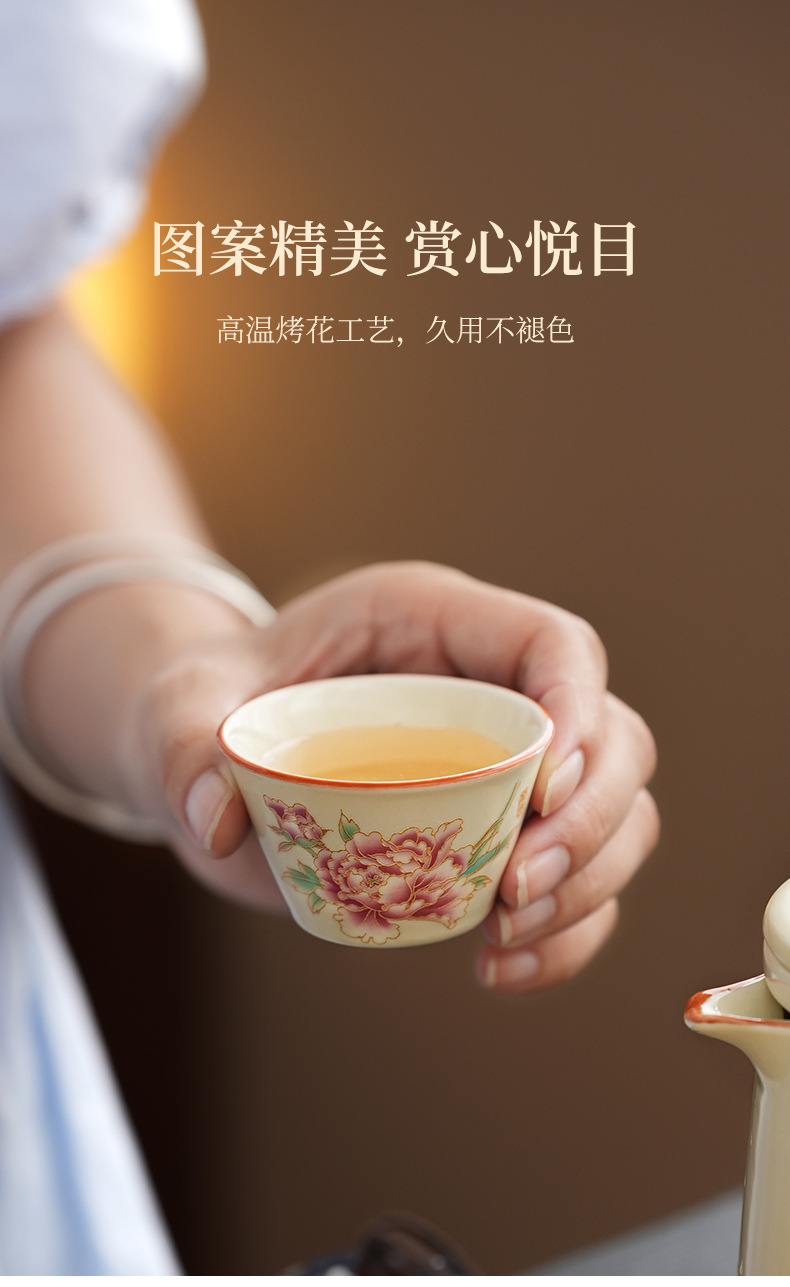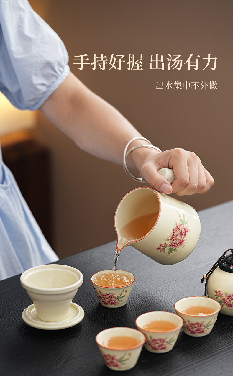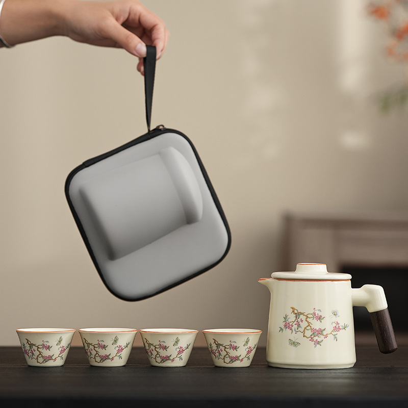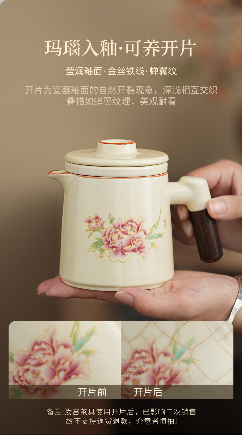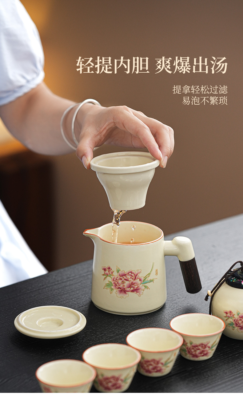 高级汝窑套装商务礼品牡丹办公泡茶壶可携带皮包茶器定印开业礼品
