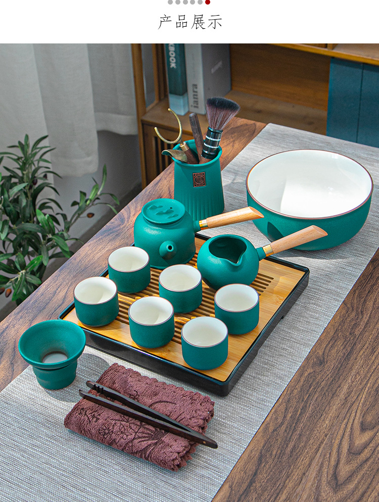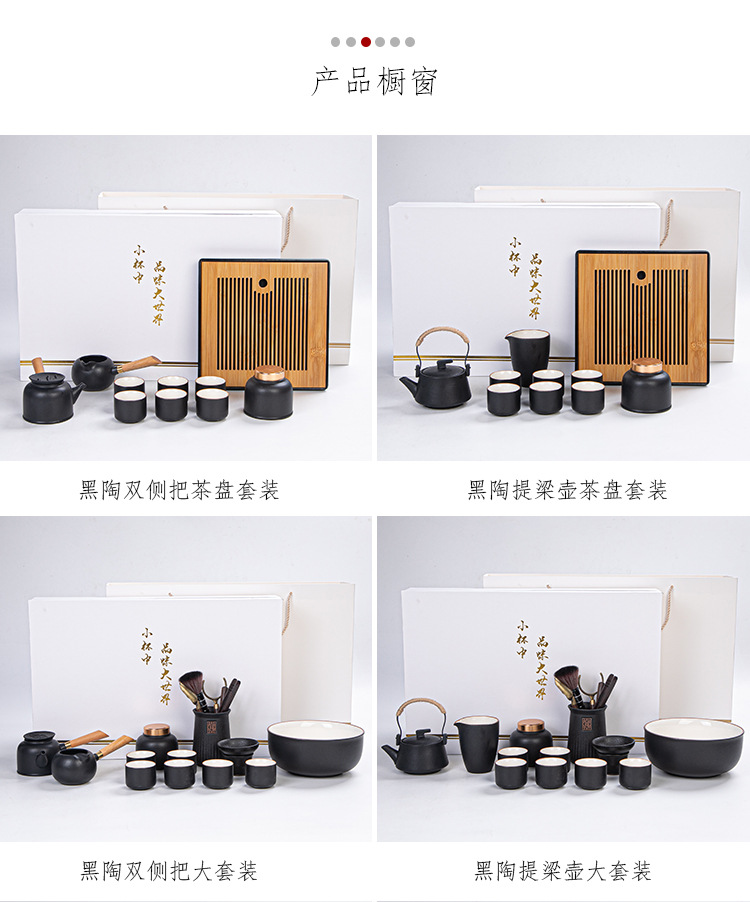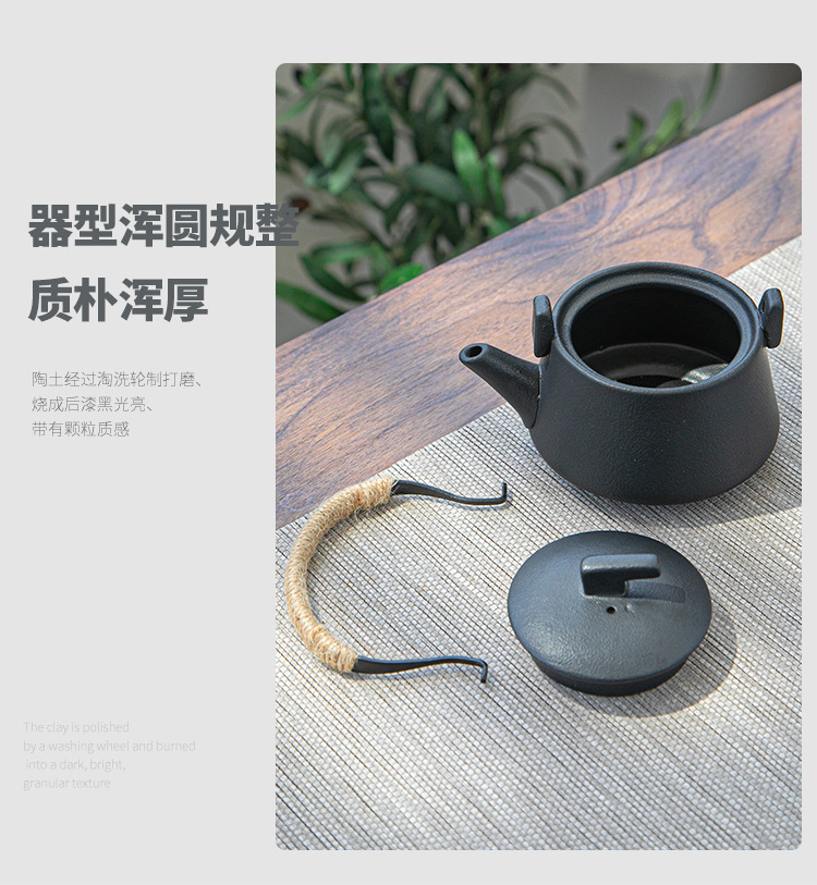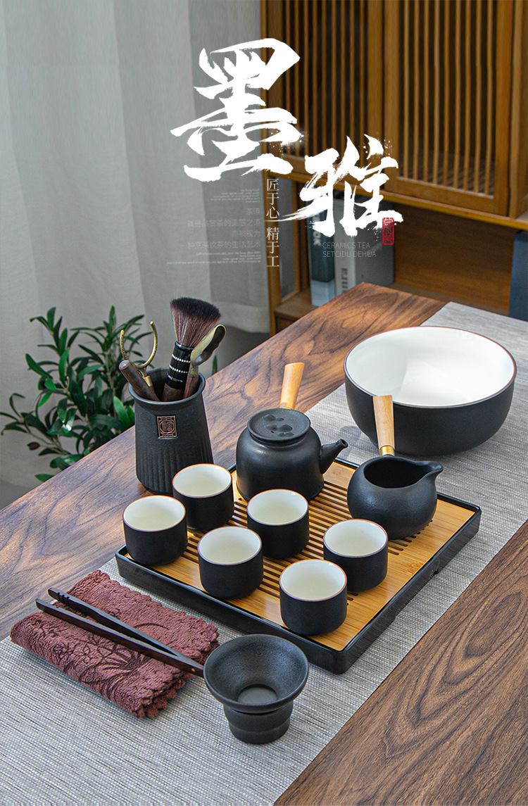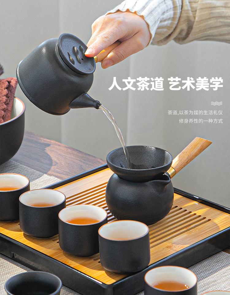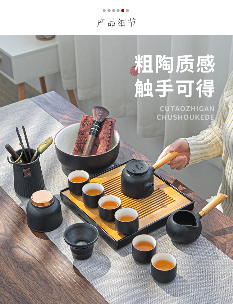 黑陶功夫茶具套装日式侧把壶家用简约办公茶盘粗陶泡茶壶整套礼品