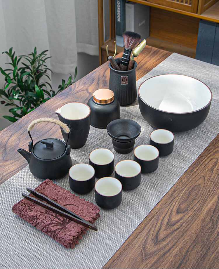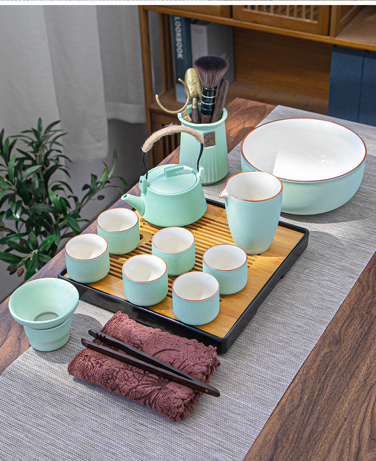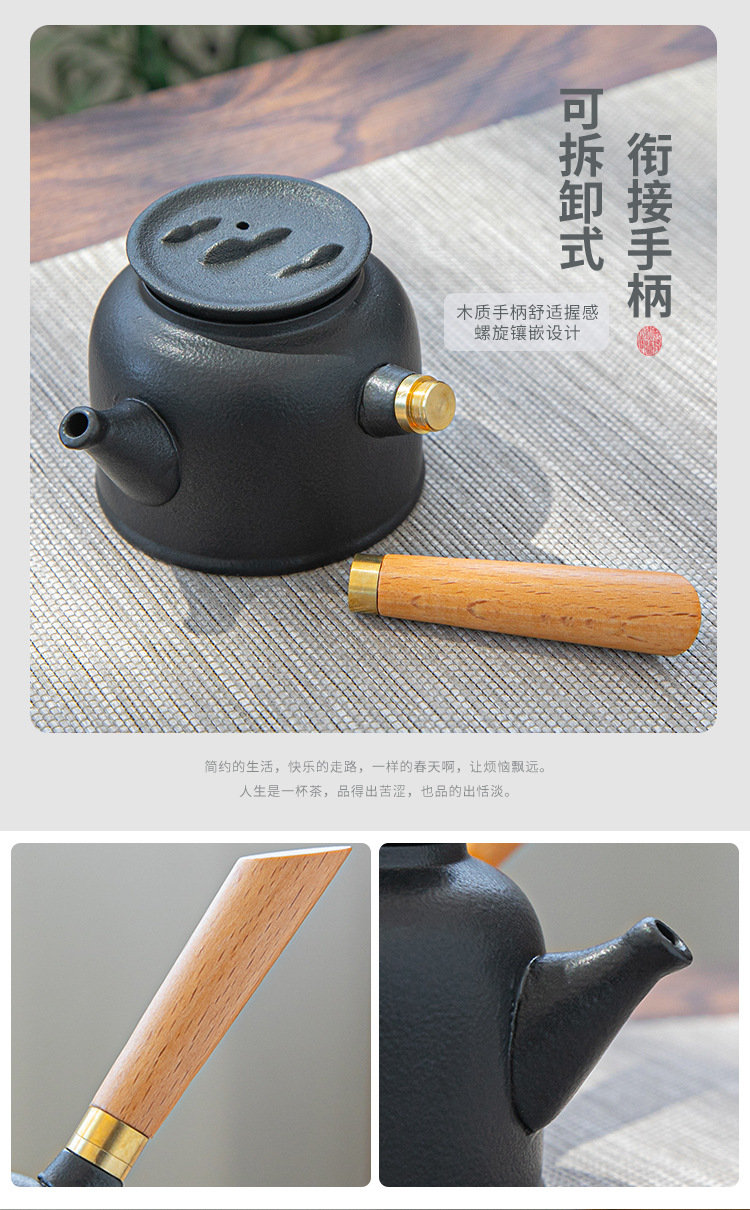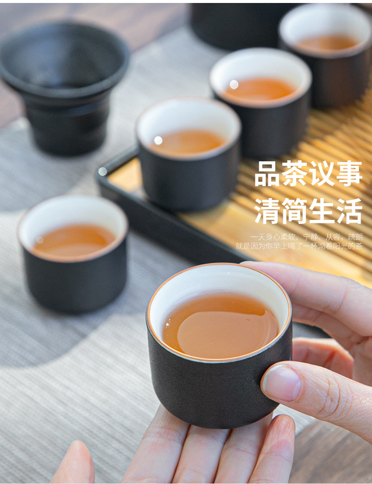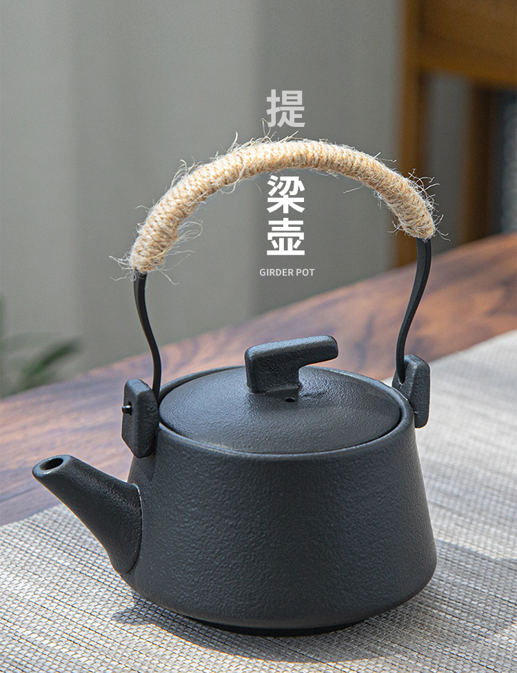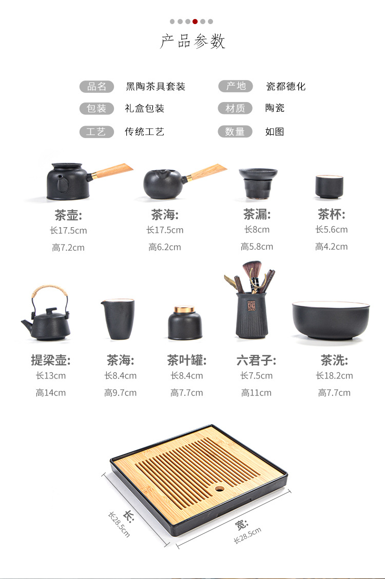 黑陶功夫茶具套装日式侧把壶家用简约办公茶盘粗陶泡茶壶整套礼品