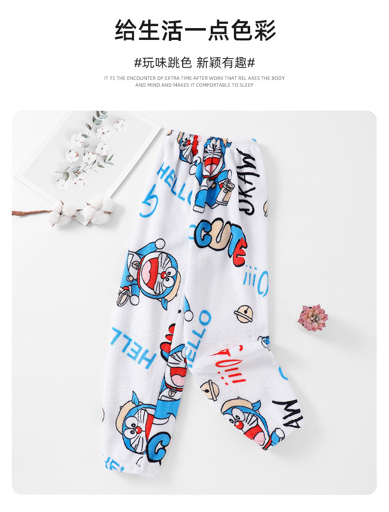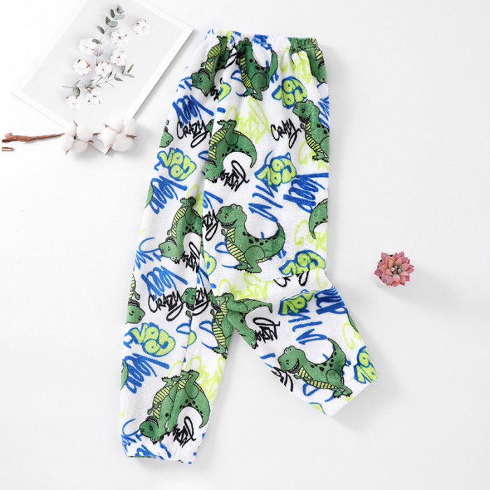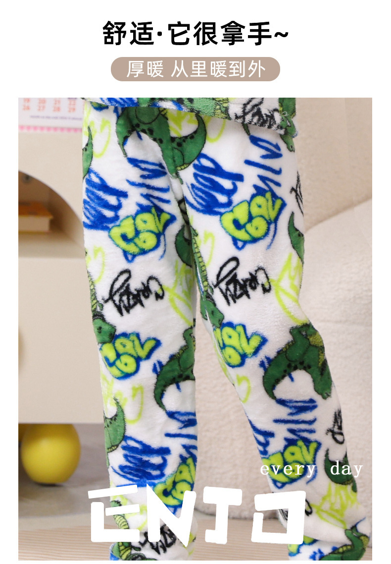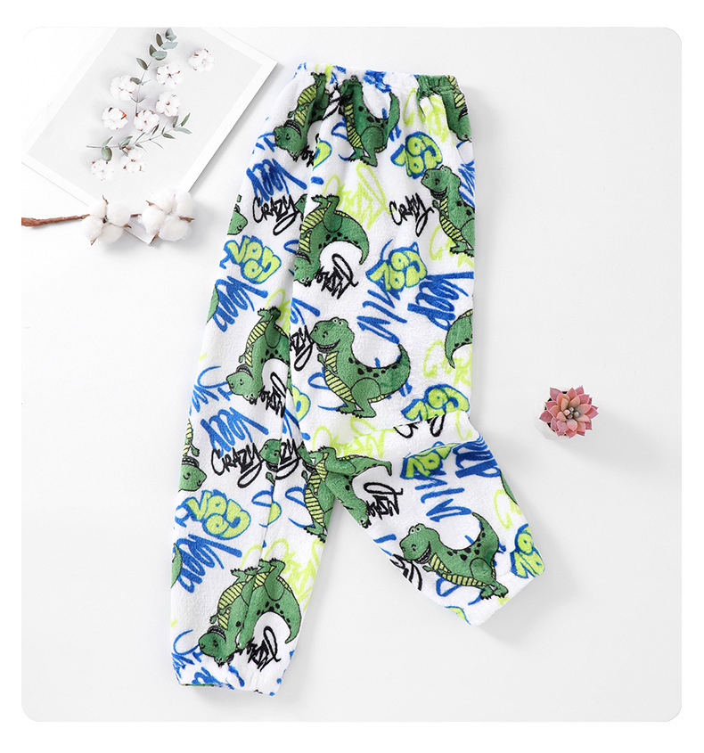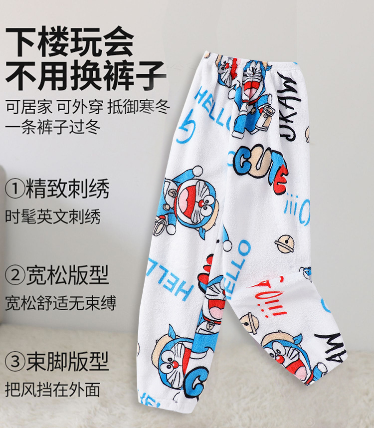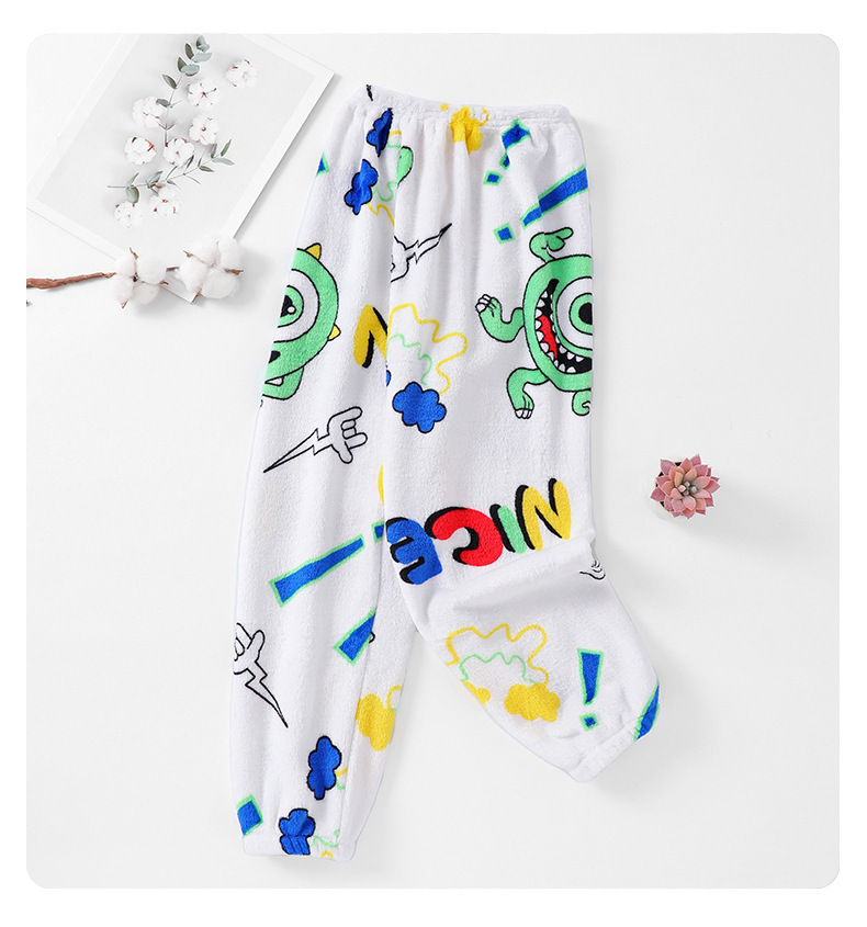 儿童睡裤女童男孩秋冬新款外穿居家法兰绒长裤韩版宽松卡通裤子
