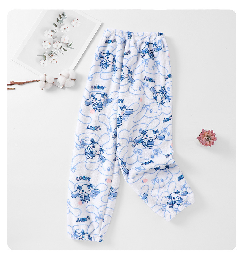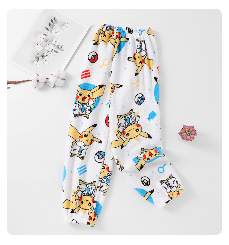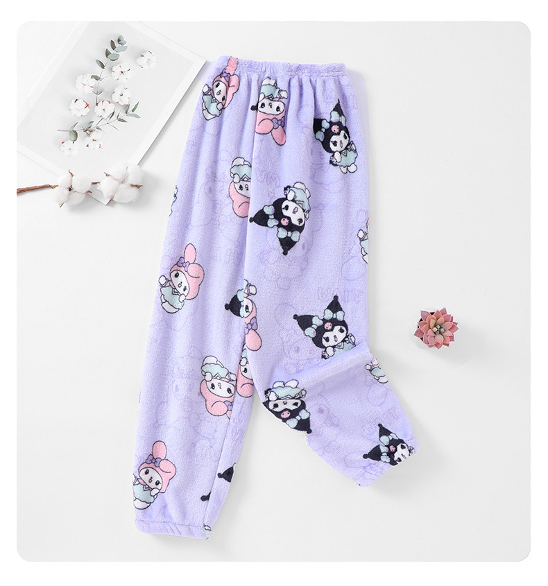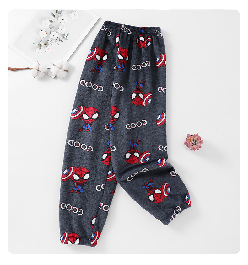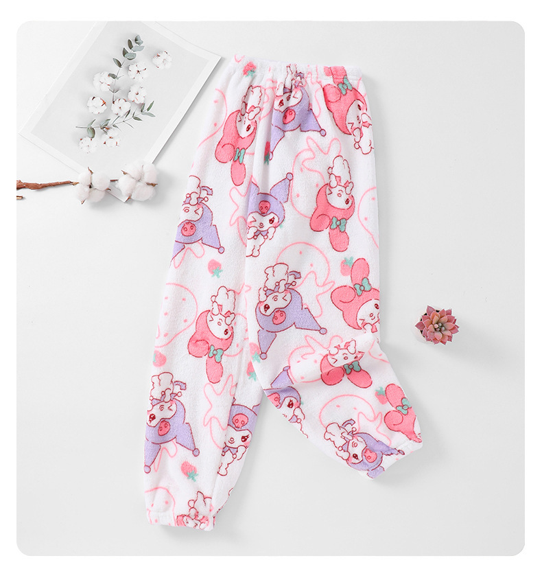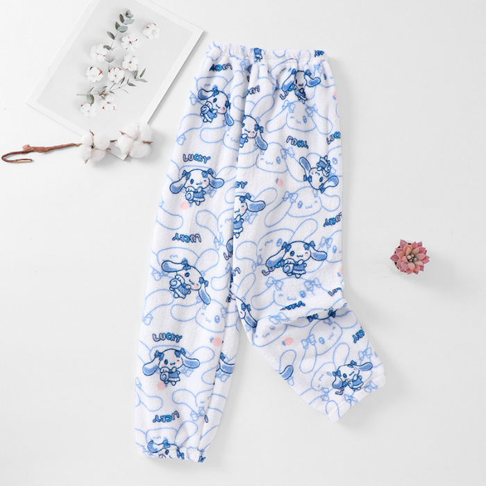 儿童睡裤女童男孩秋冬新款外穿居家法兰绒长裤韩版宽松卡通裤子