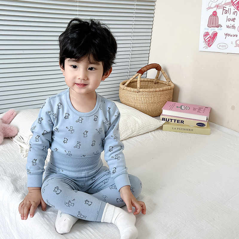 秋冬宝宝内衣套装无骨高腰护肚儿童纯棉秋衣秋裤男童女童磨毛睡衣