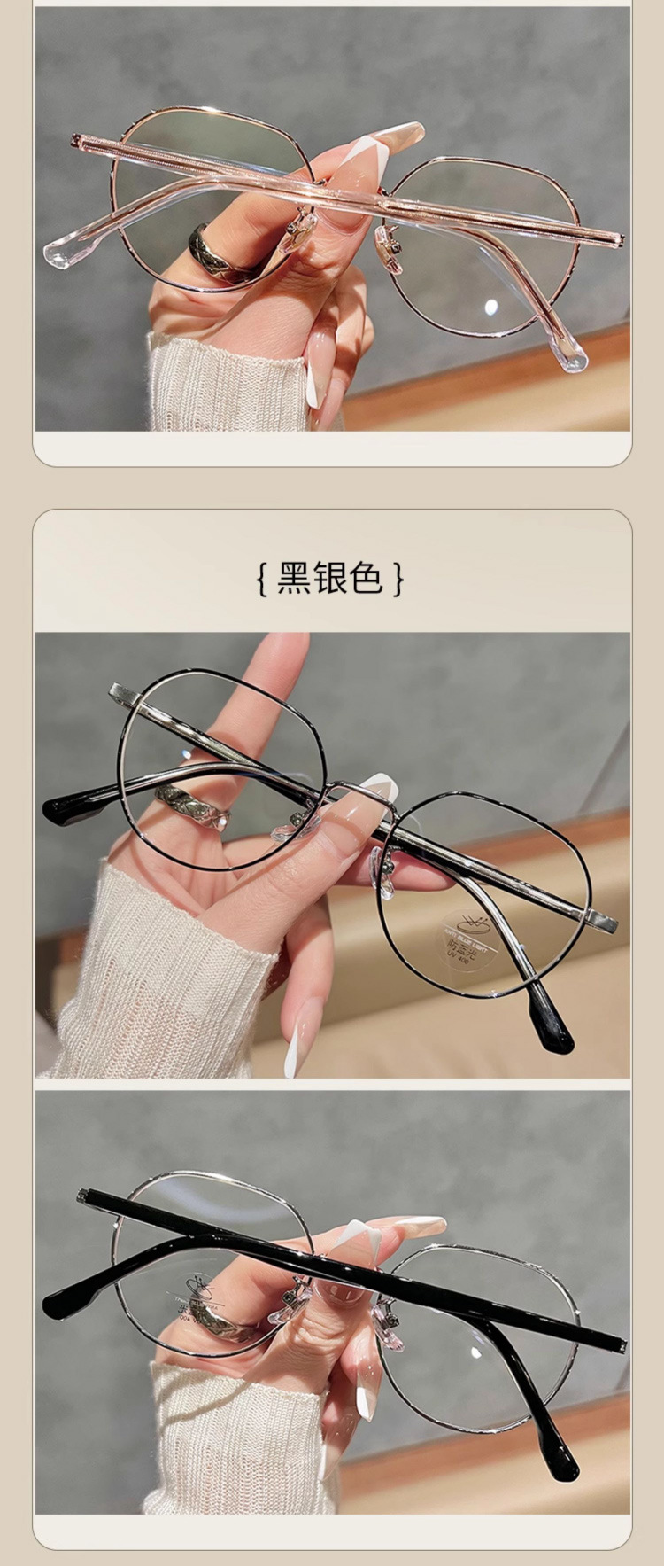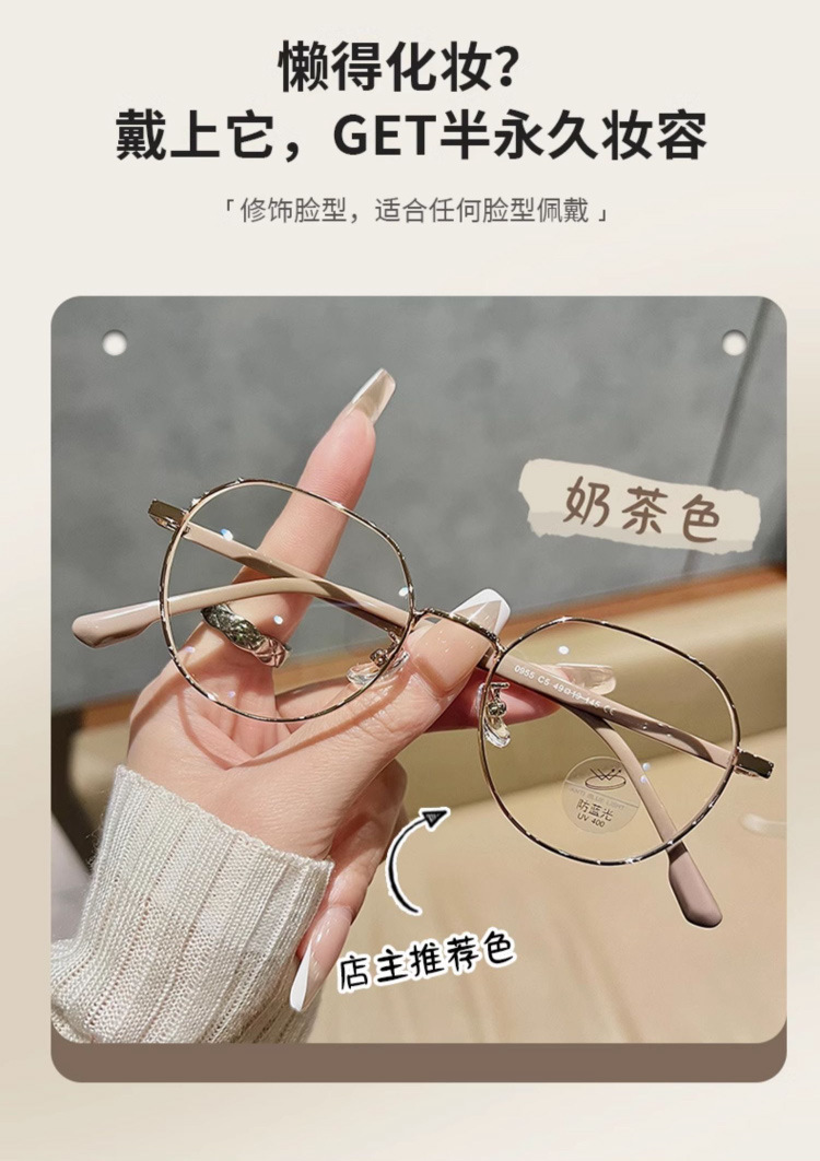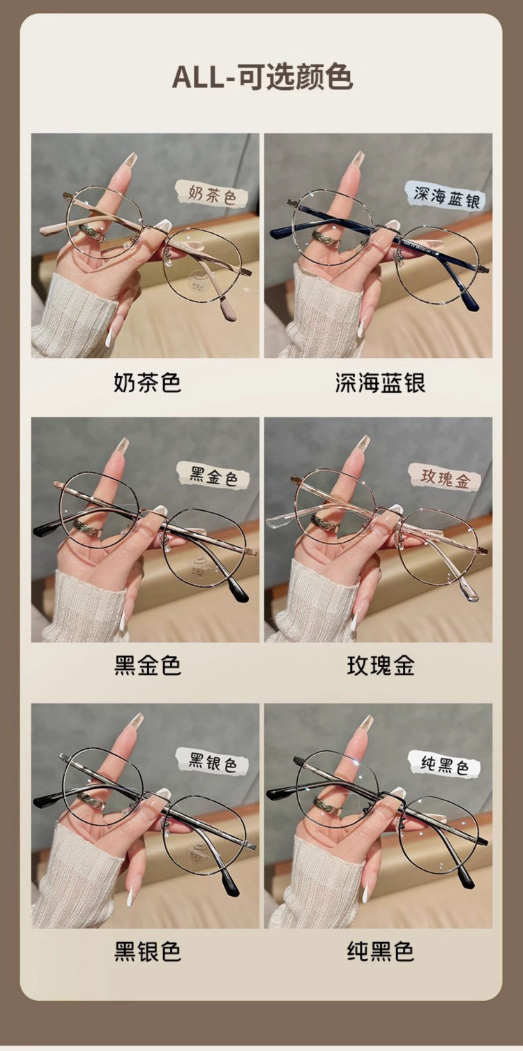 韩系显白奶茶色眼镜框男女可配近视度数素颜文艺小圆框金丝眼镜架