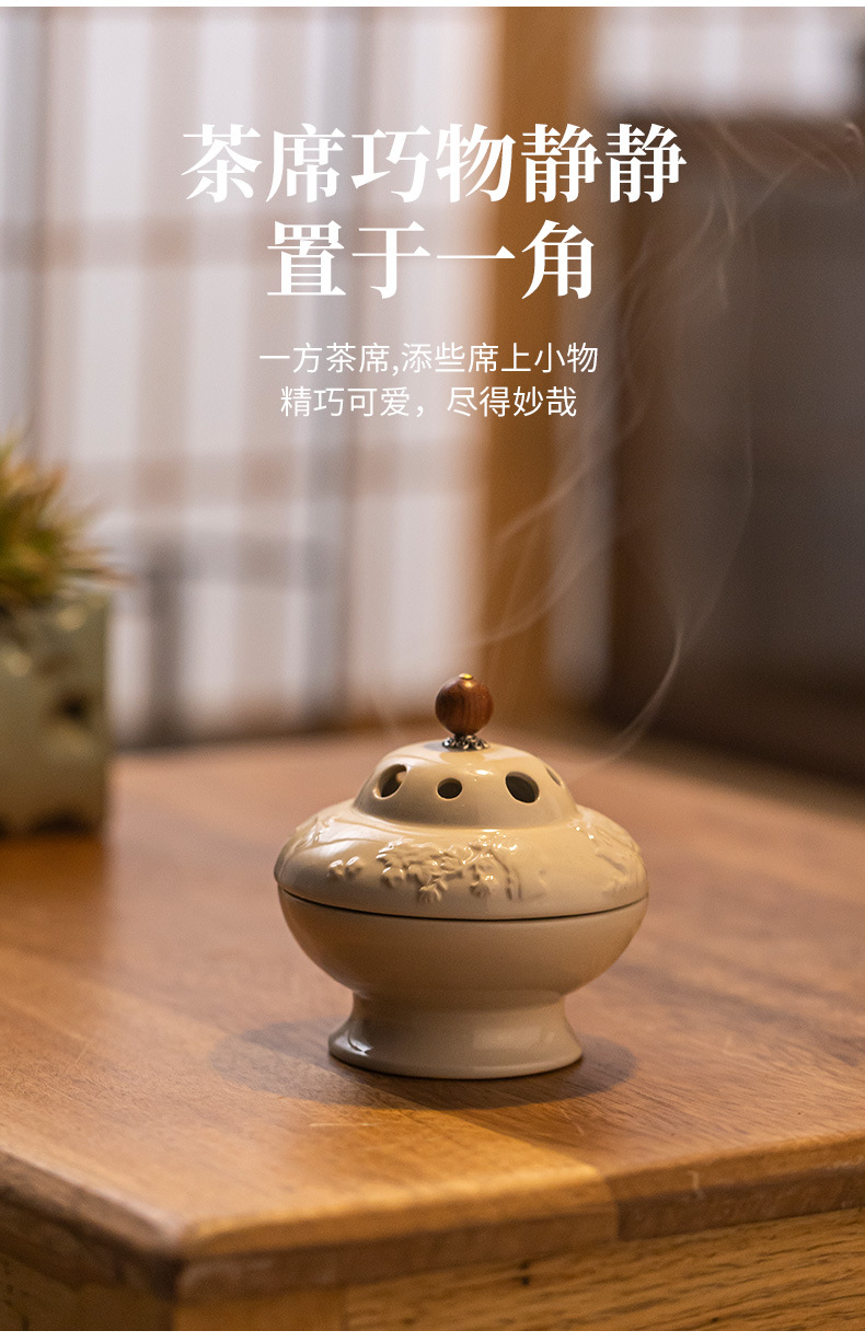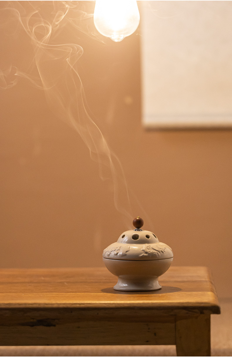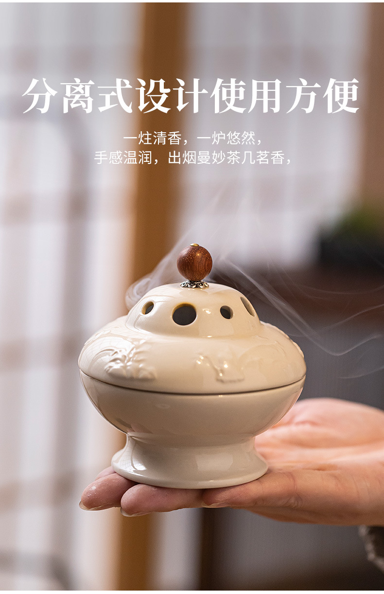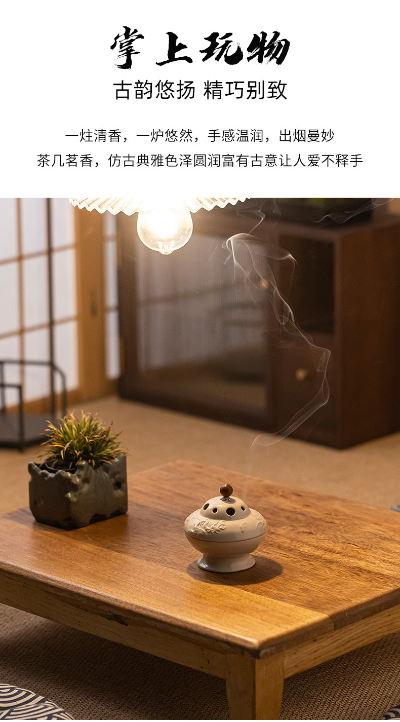 岩山 草木灰陶瓷室内焚香盘香炉檀沉香炉创意桌上摆件香道香薰炉