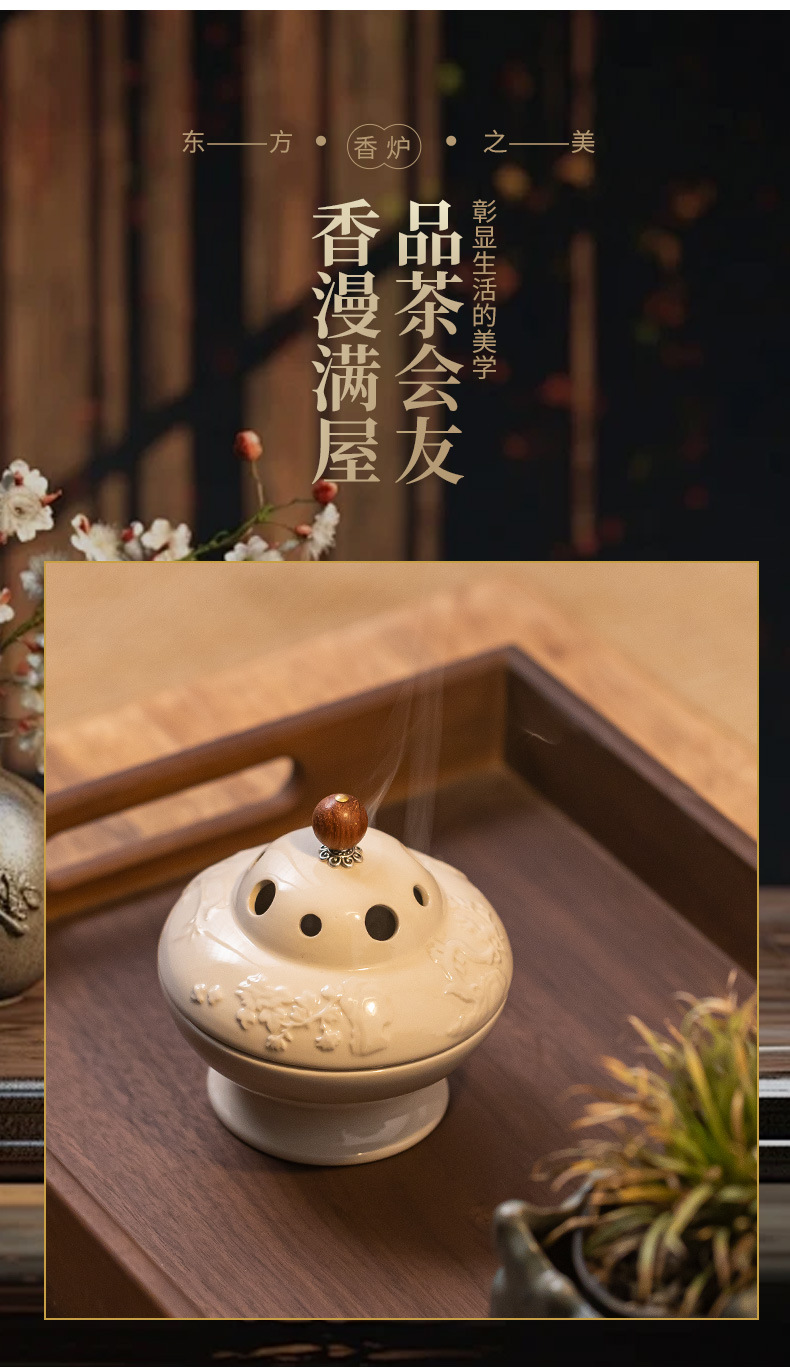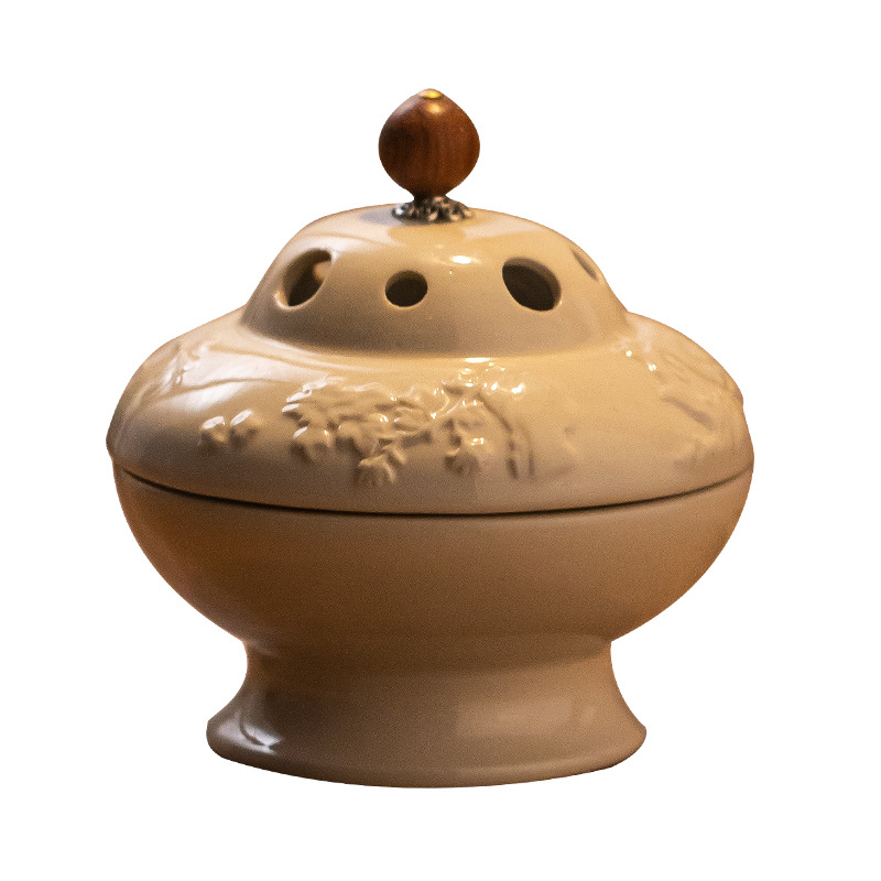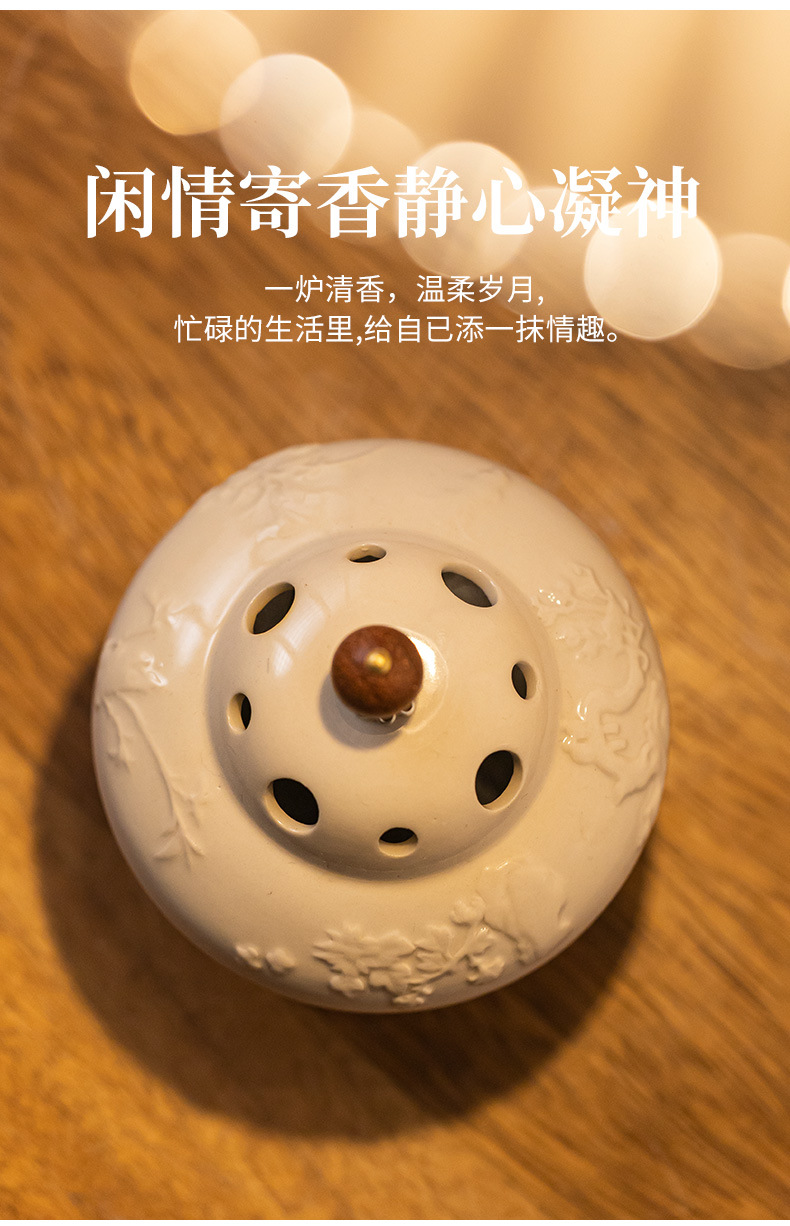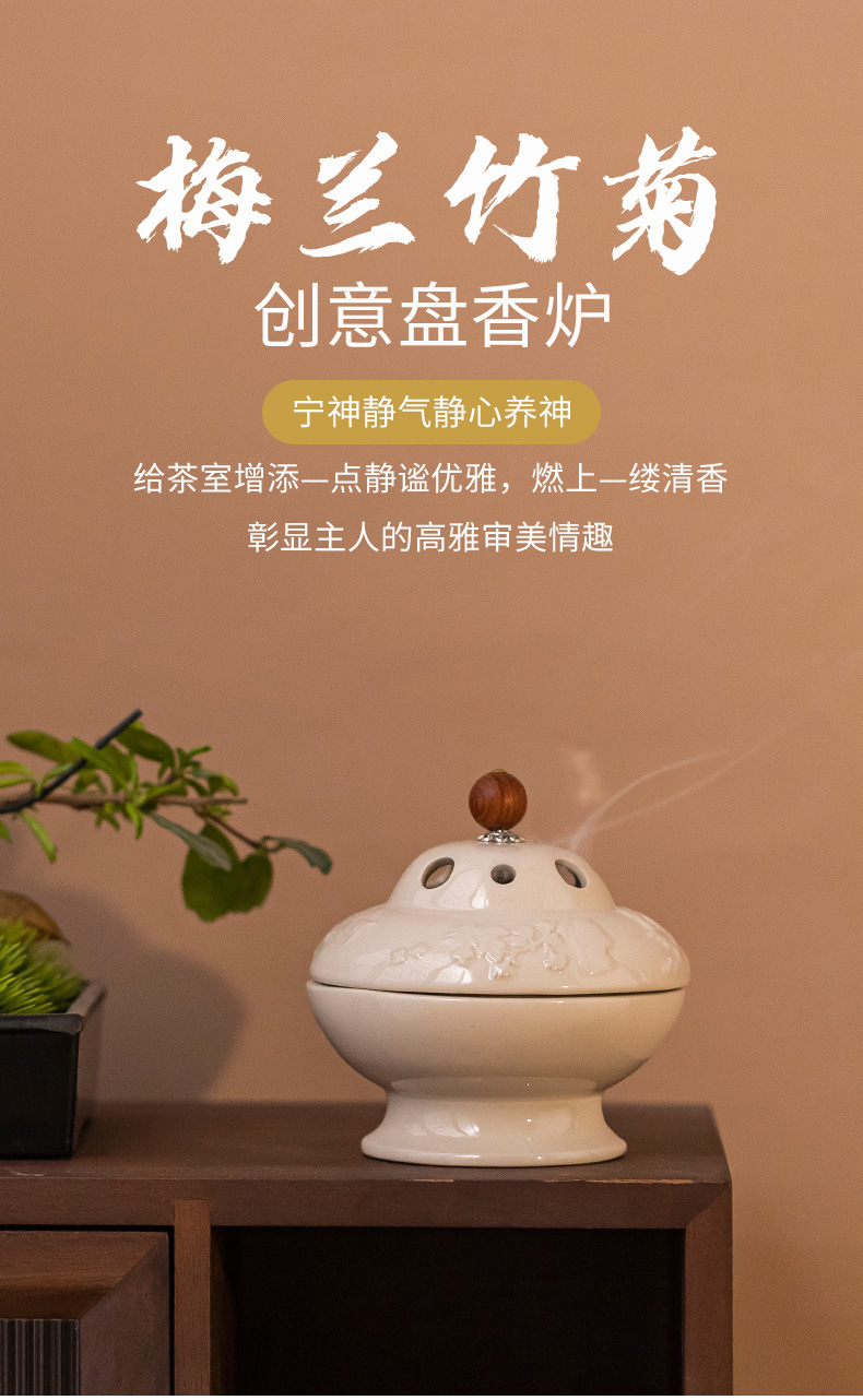 岩山 草木灰陶瓷室内焚香盘香炉檀沉香炉创意桌上摆件香道香薰炉