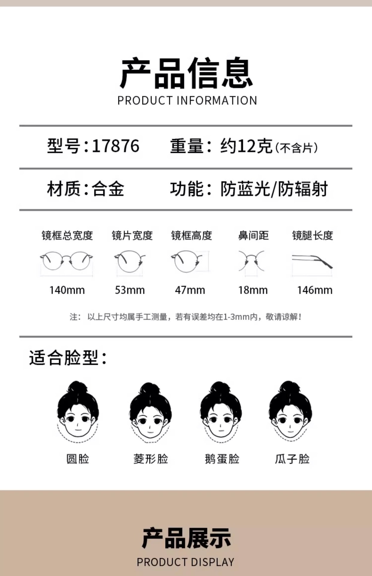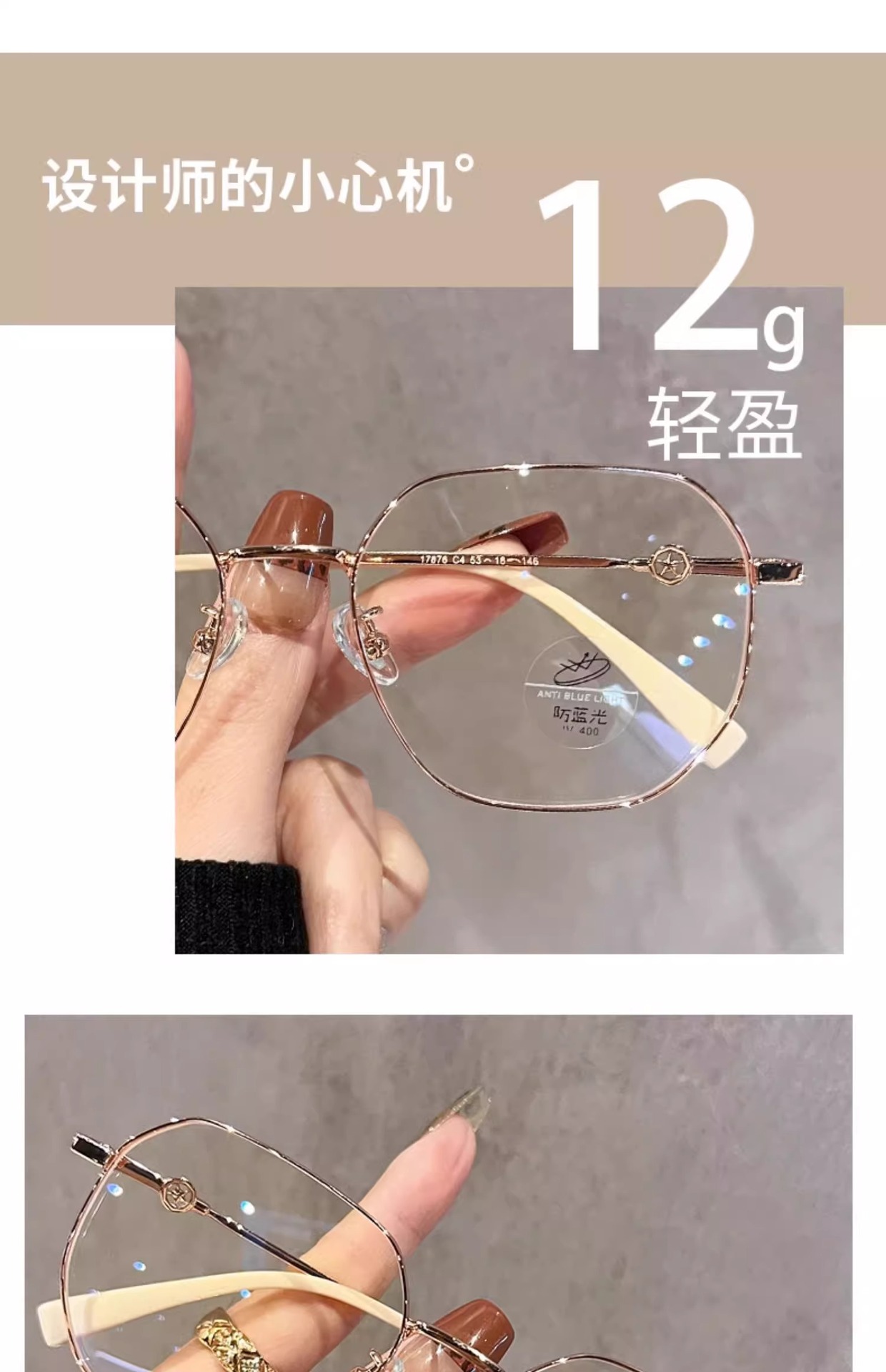 新款防蓝光眼镜超轻金丝眼镜女可配度数高级感眼镜框百搭光学镜架