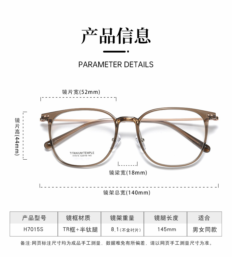 爆款茶色近视眼镜H7015S复古眼镜框网红大框显脸小超轻纯钛眼镜架