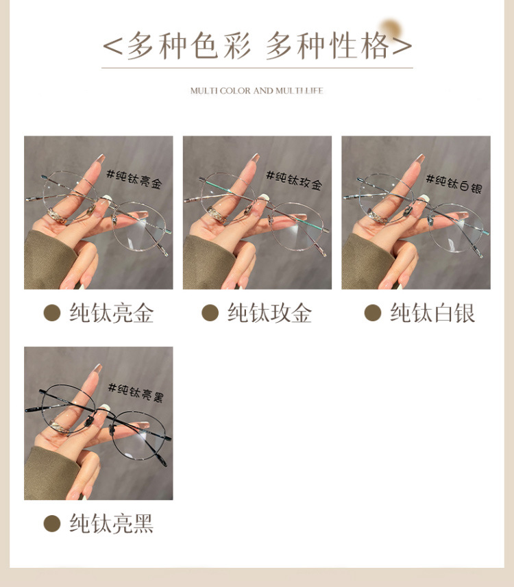 金丝超轻纯钛小框眼镜近视女御姐可配高度数高级感小脸椭圆眼镜架