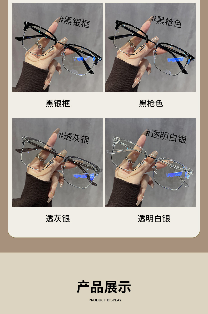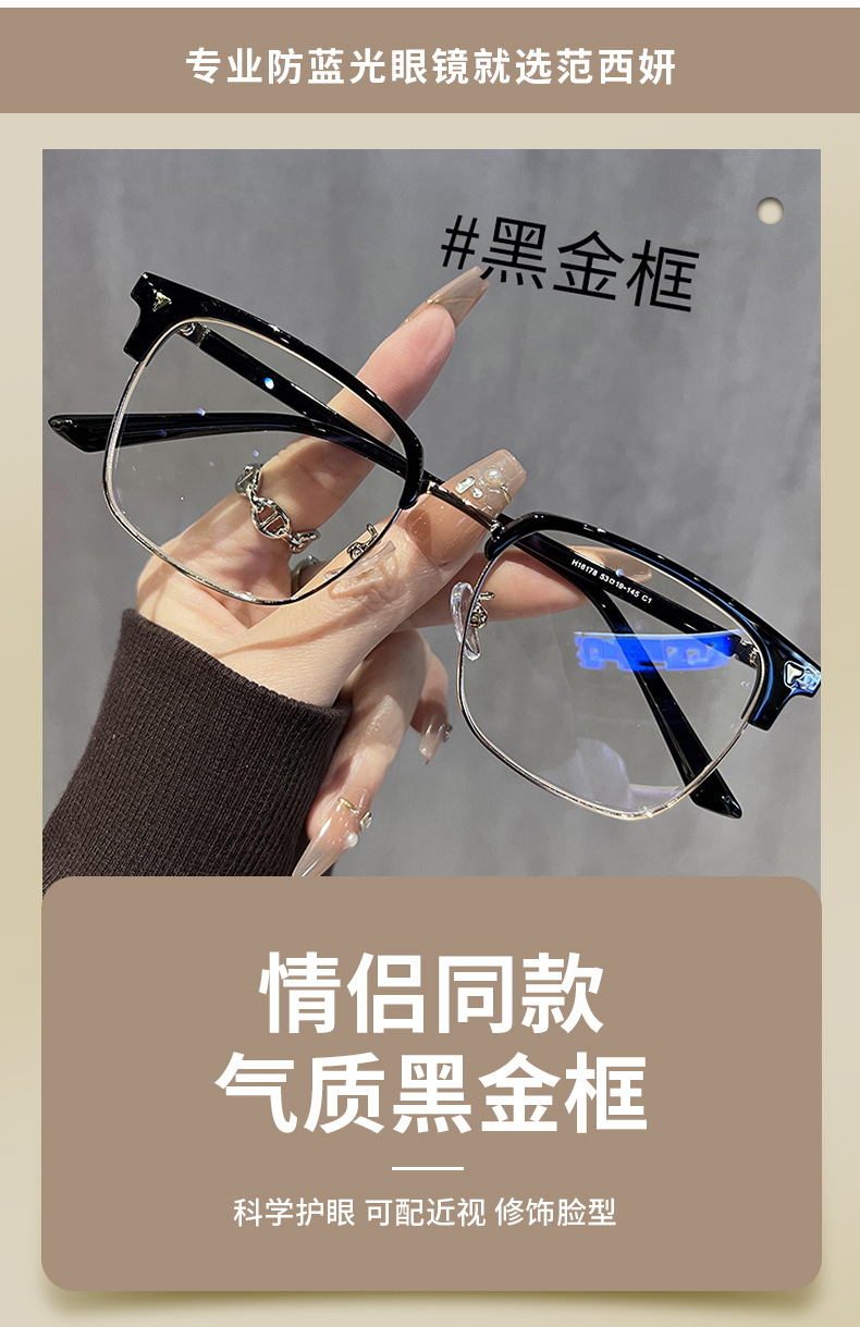 16178童锦程同款斯文败类半框眼镜理工男商务眉毛近视镜现货批发