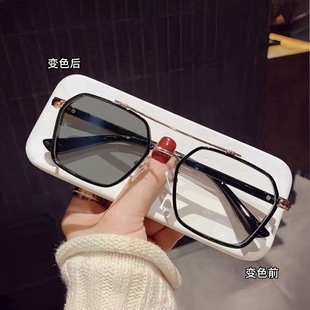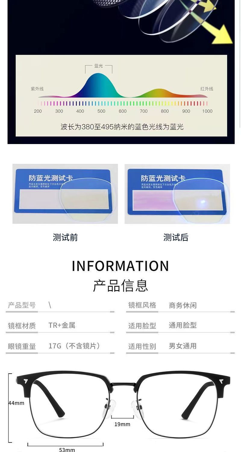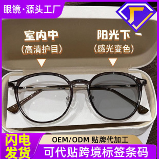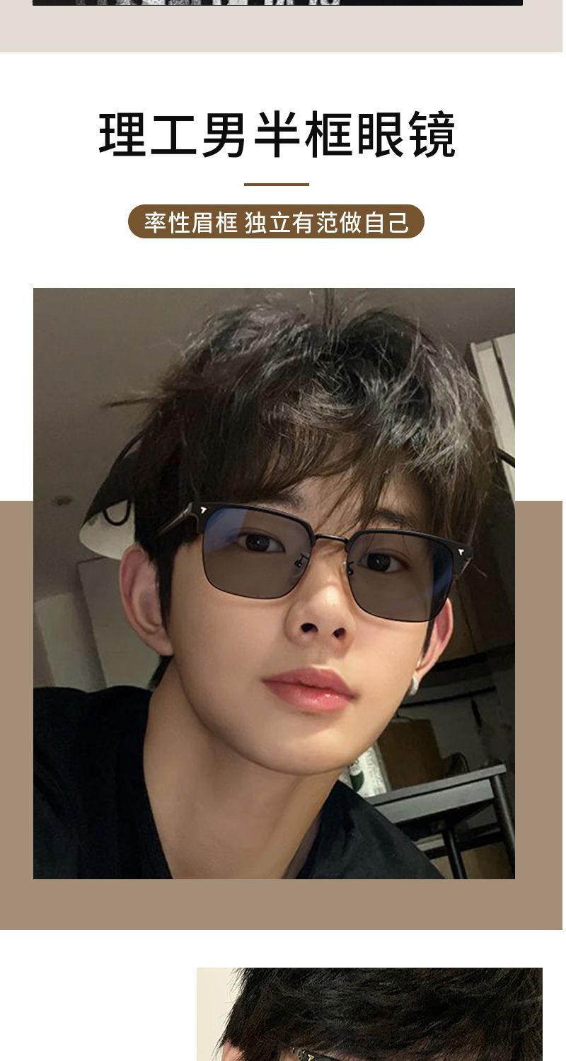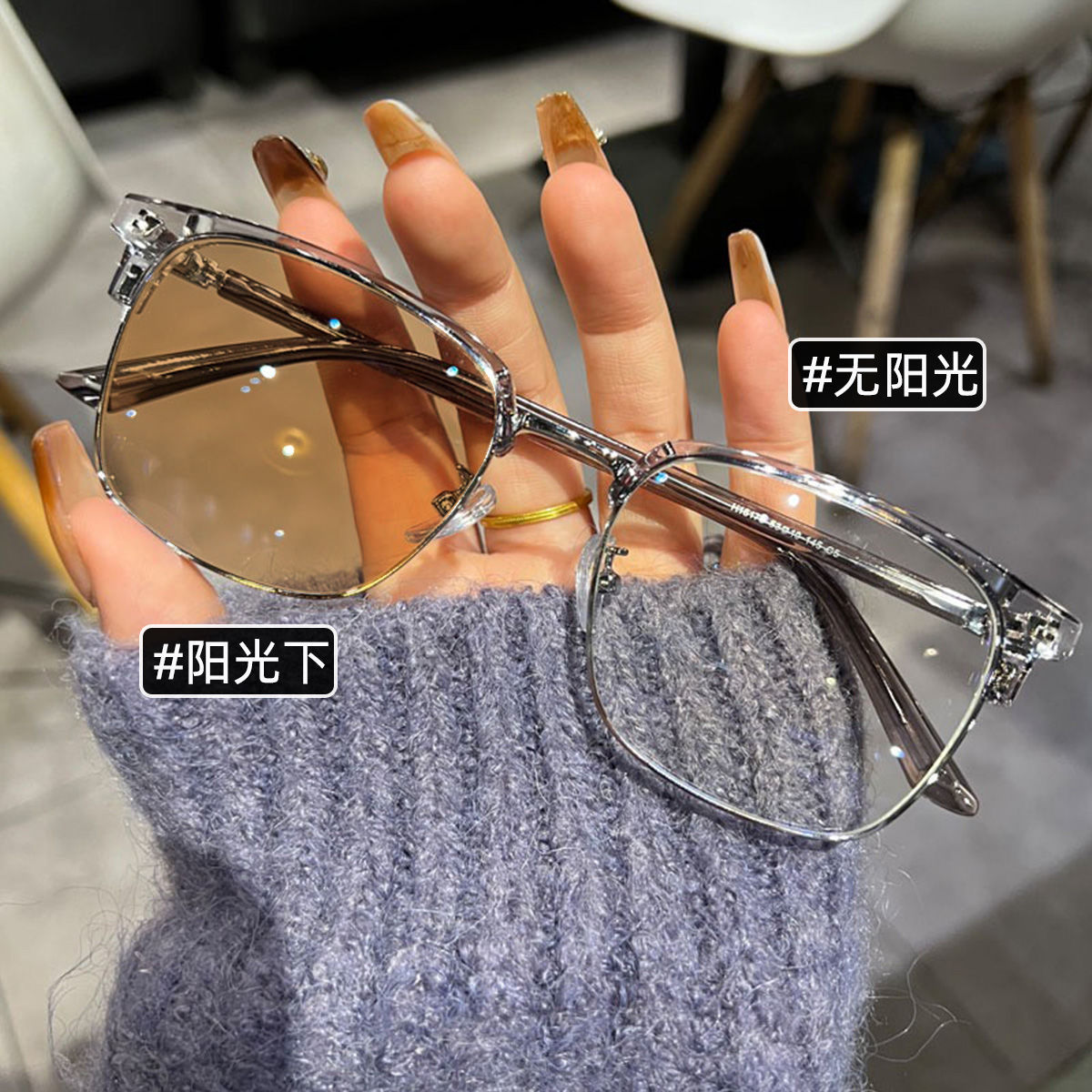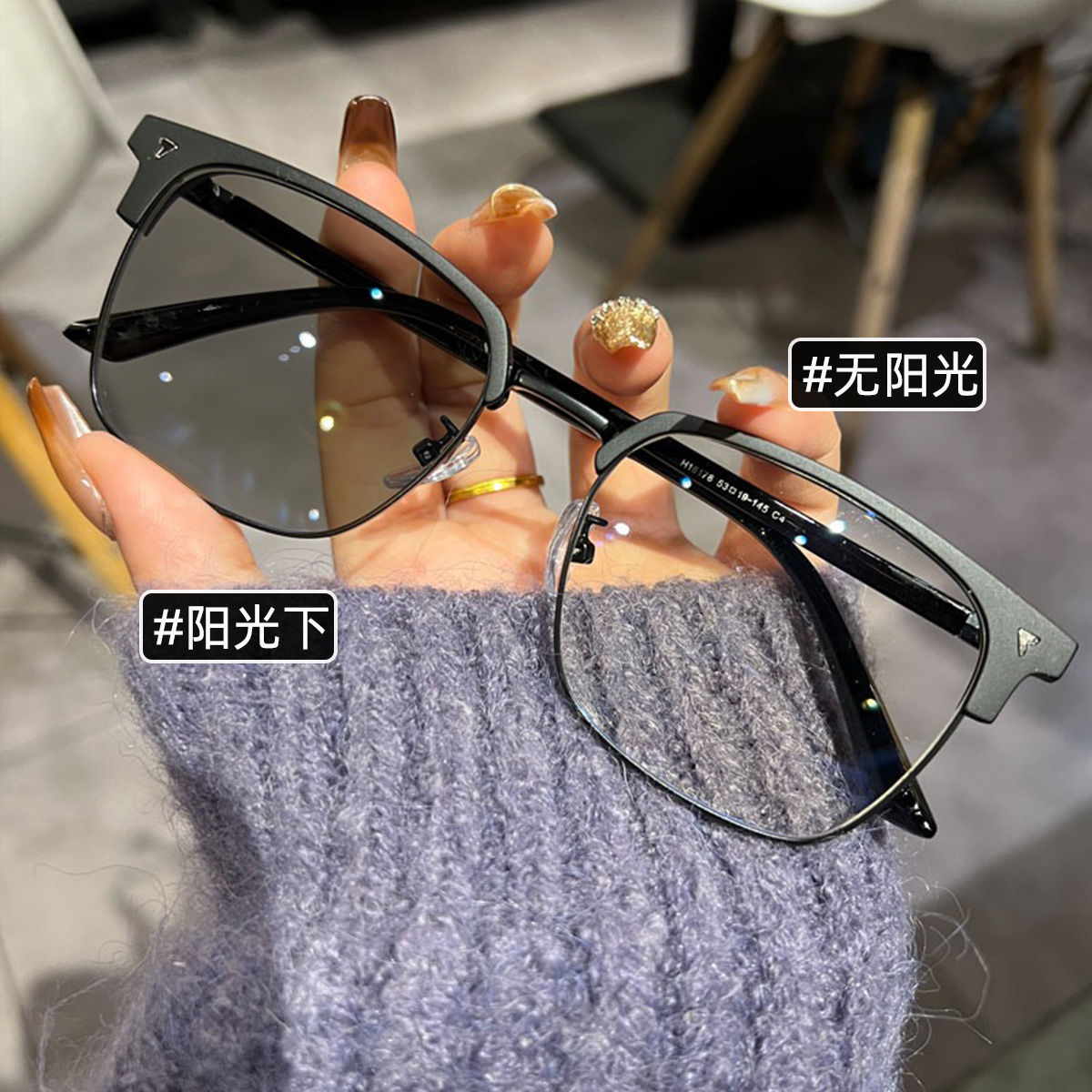 半框变色眼镜超轻潮流高清防蓝光平光镜日常百搭近视镜