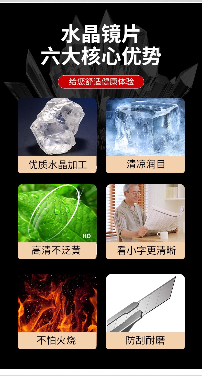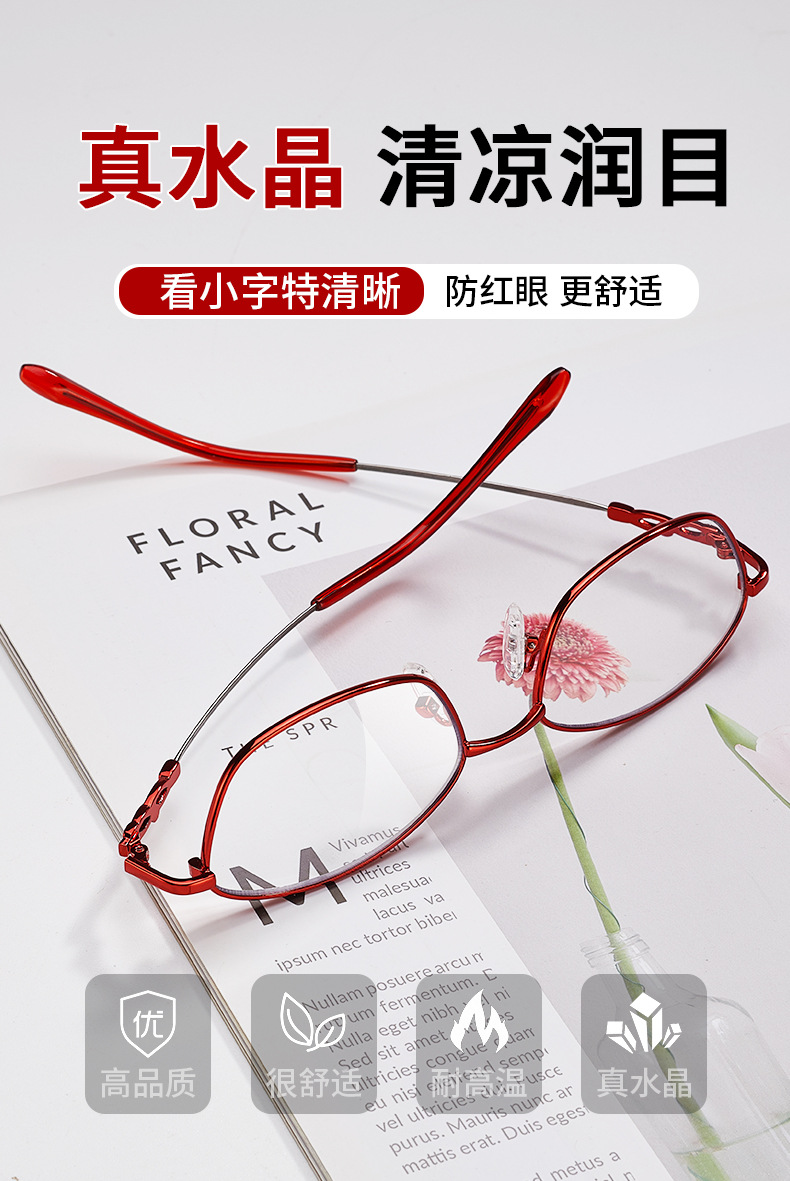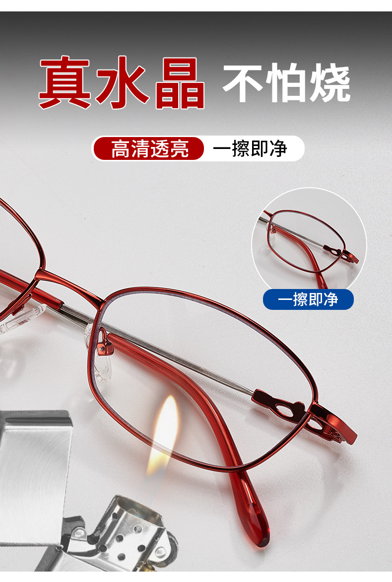 真水晶石头老花眼镜女高清高档新款记忆钛老花镜超轻时尚耐磨批发