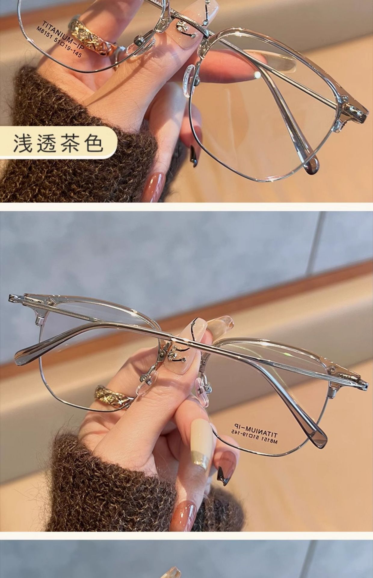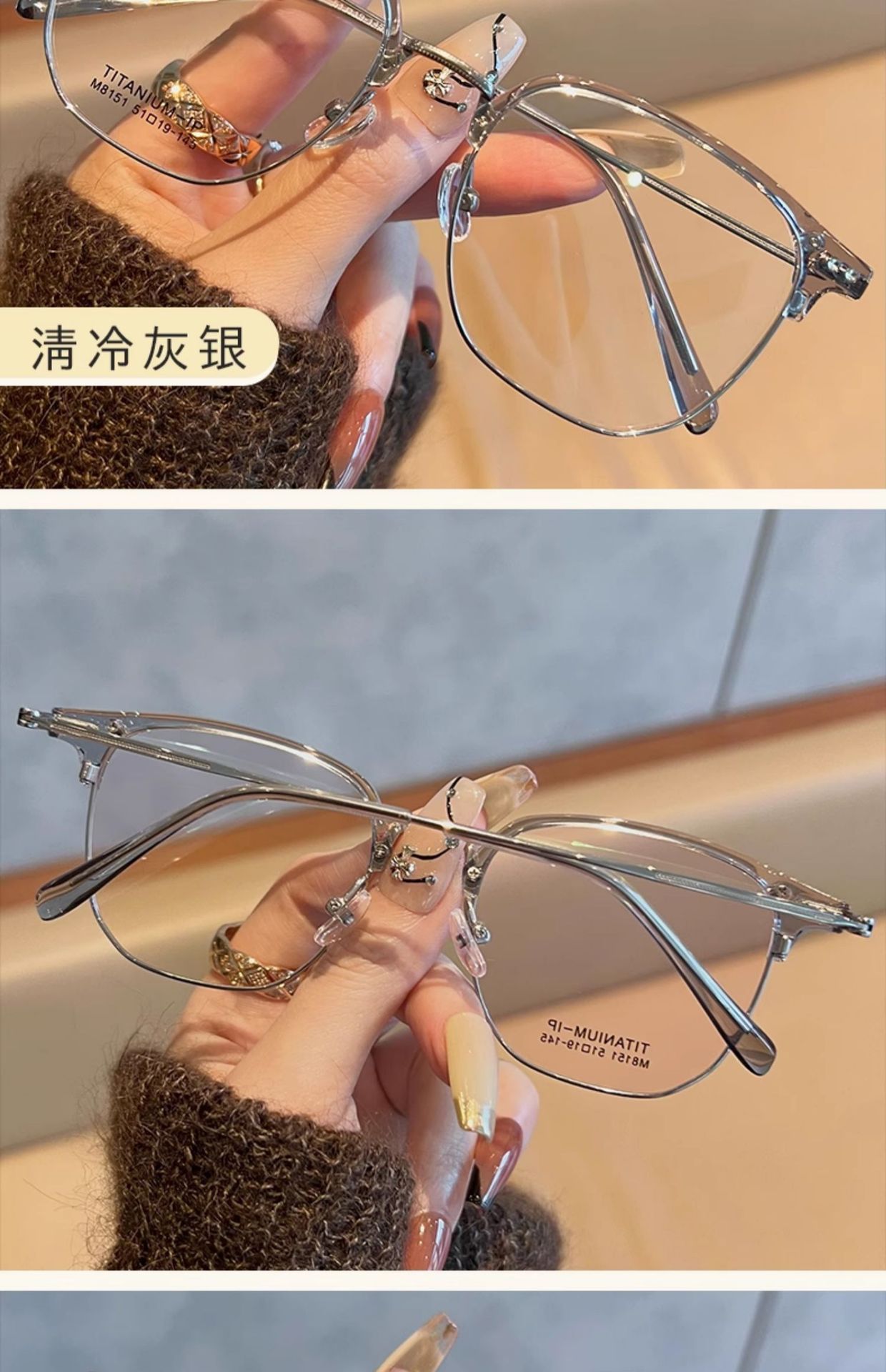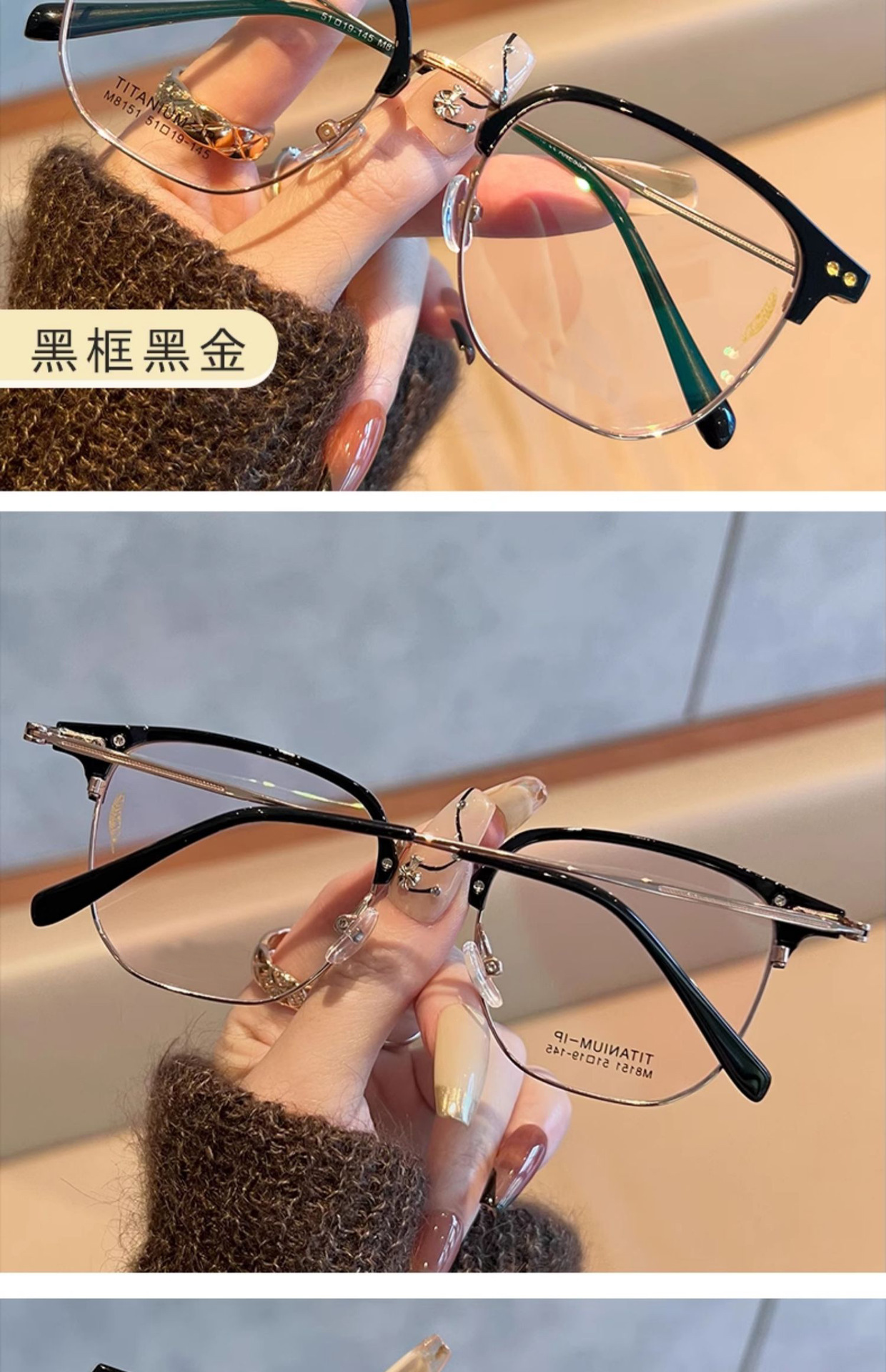 超轻复古气质半框眼镜丹阳女高级感近视可配度数素颜钛架眼镜框架