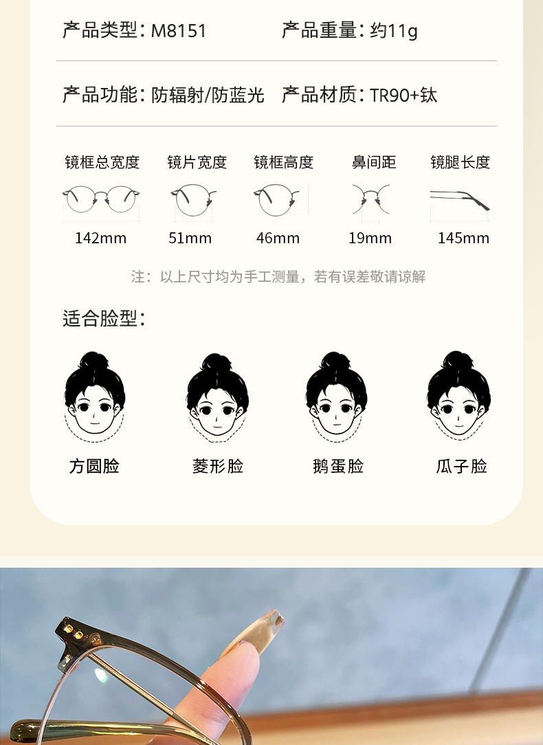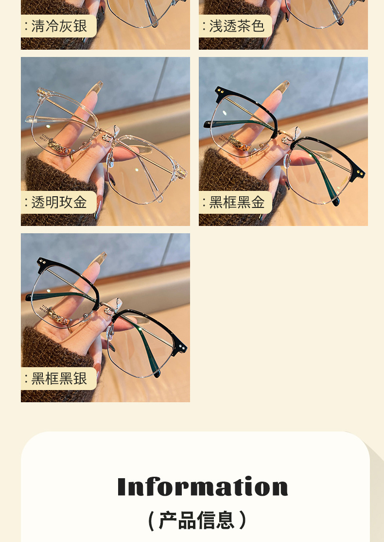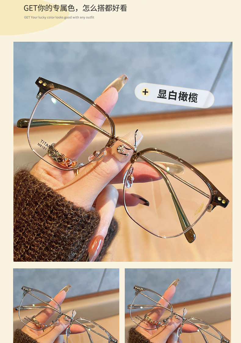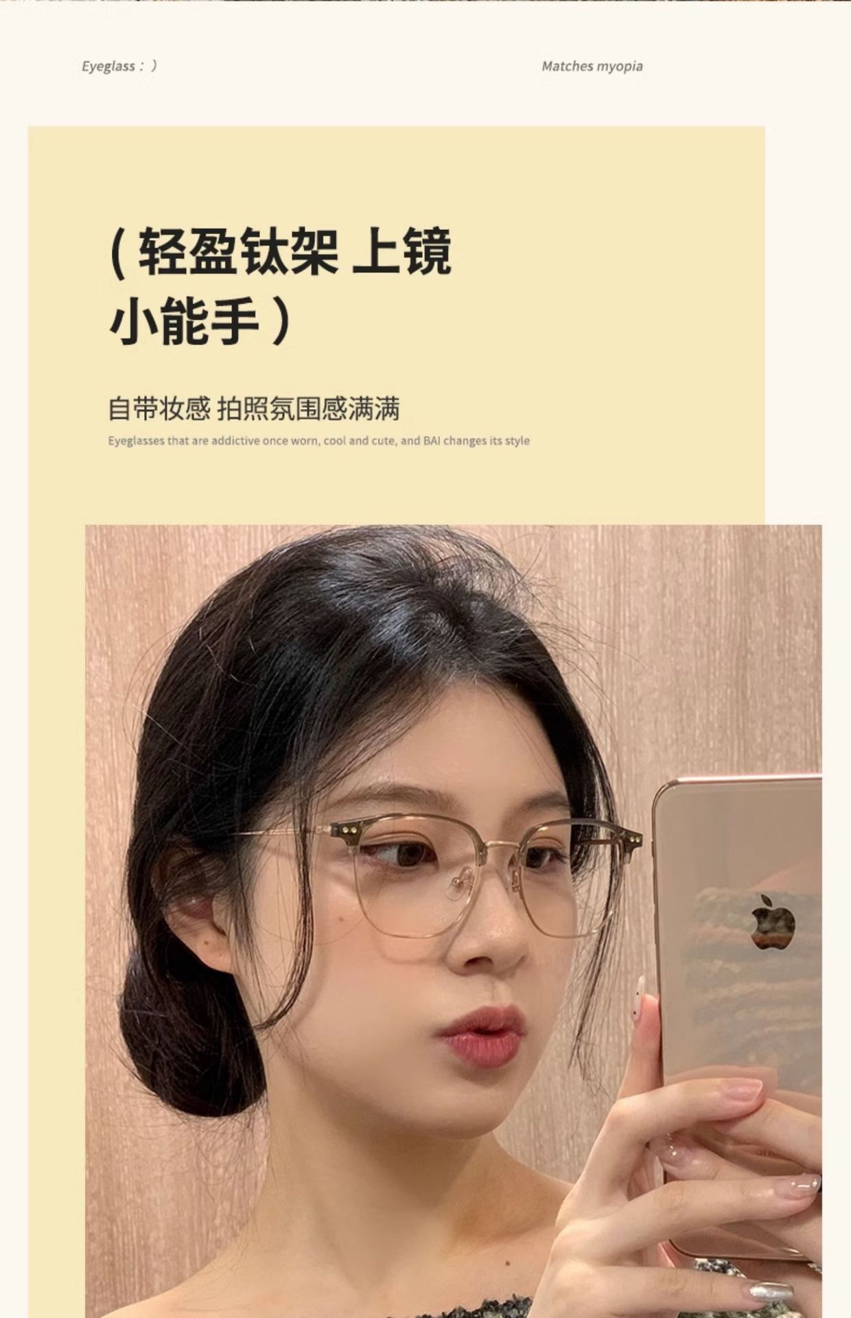 超轻复古气质半框眼镜丹阳女高级感近视可配度数素颜钛架眼镜框架