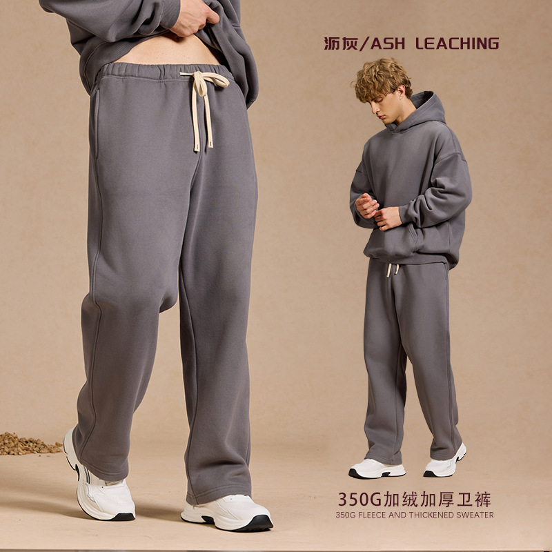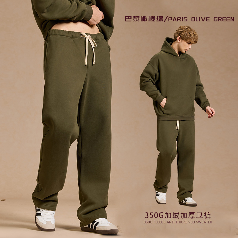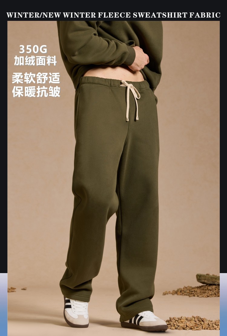 2025秋冬新品350g厚款直筒加绒纯色男长裤宽松运动潮牌休闲卫裤男