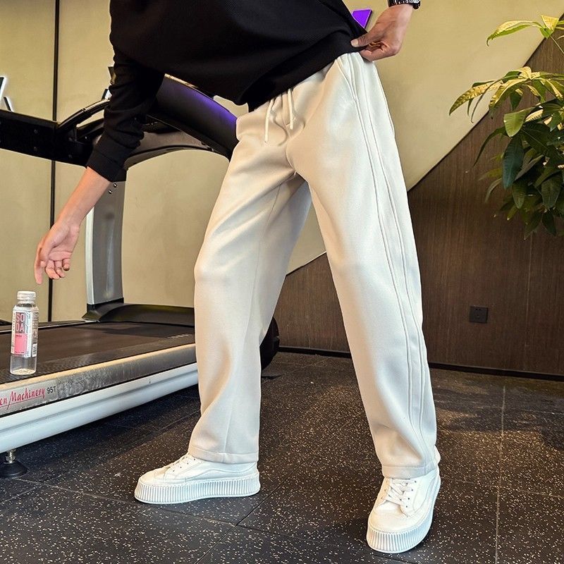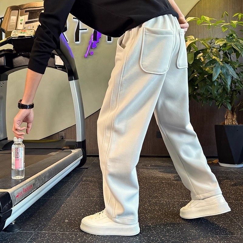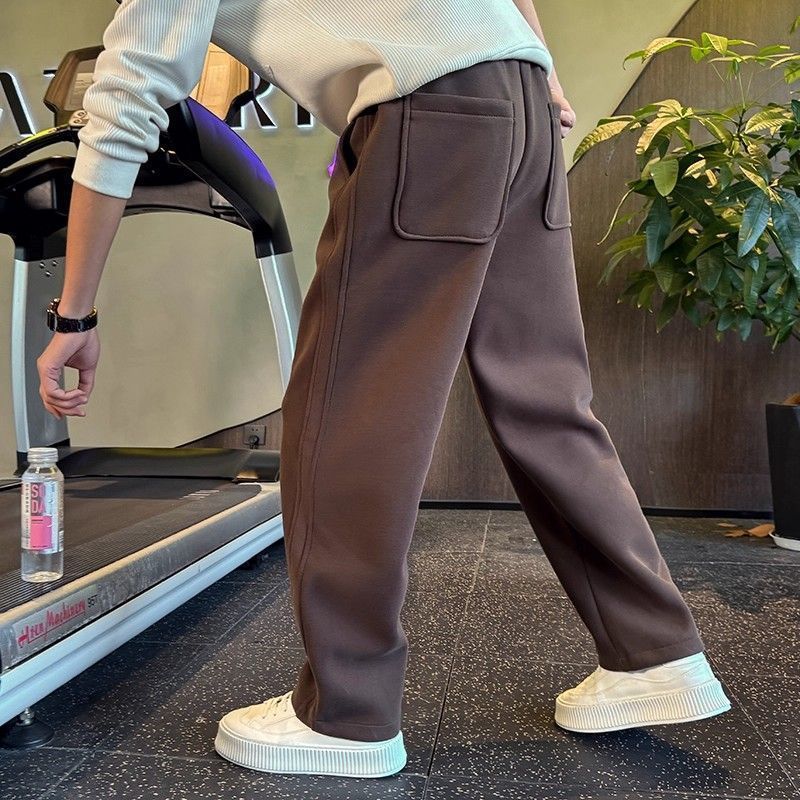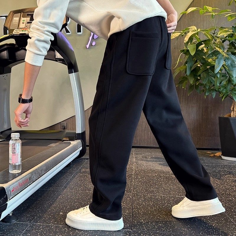 秋冬新款加绒加厚裤子男直筒弯刀裤休闲宽松潮流卫裤中年长裤男