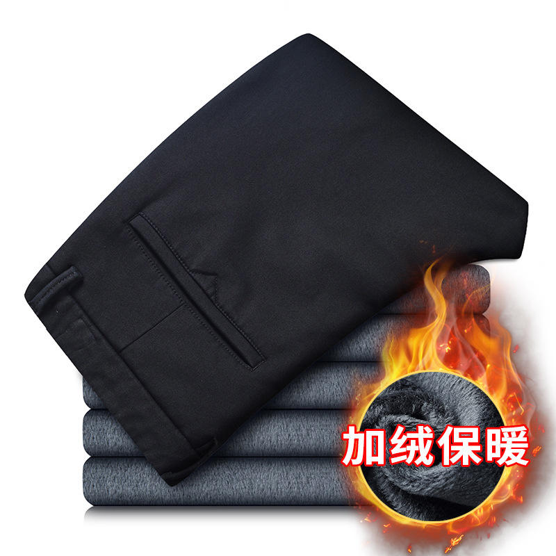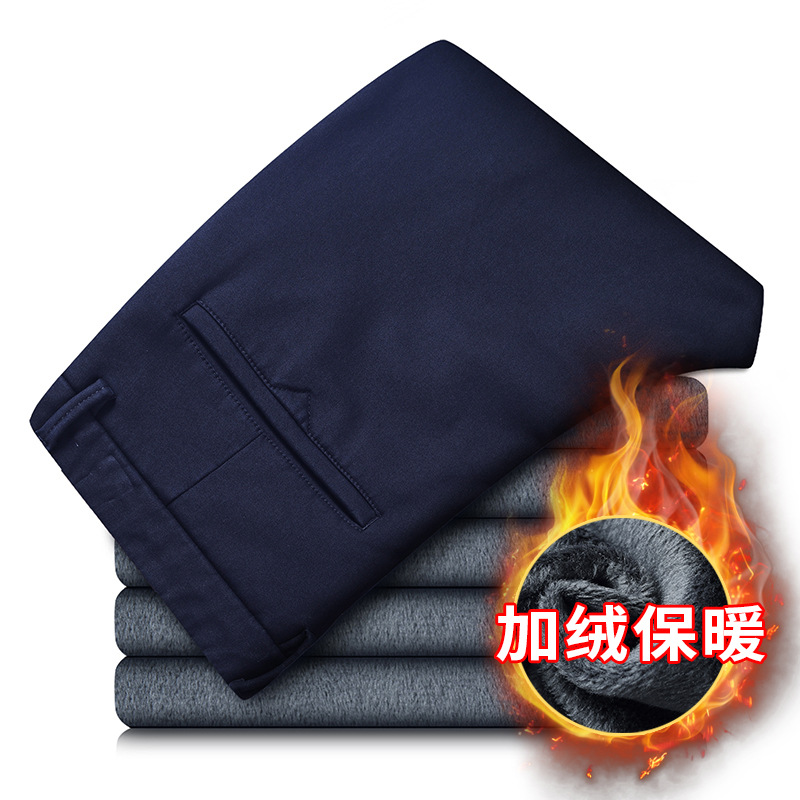 休闲裤男秋冬加绒加厚男士直筒宽松长裤商务百搭裤子男款工装男裤