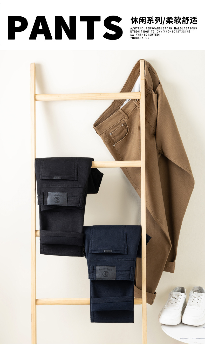 OLA高端商务休闲裤男秋冬新款时尚潮流百搭宽松直筒裤抗皱长裤
