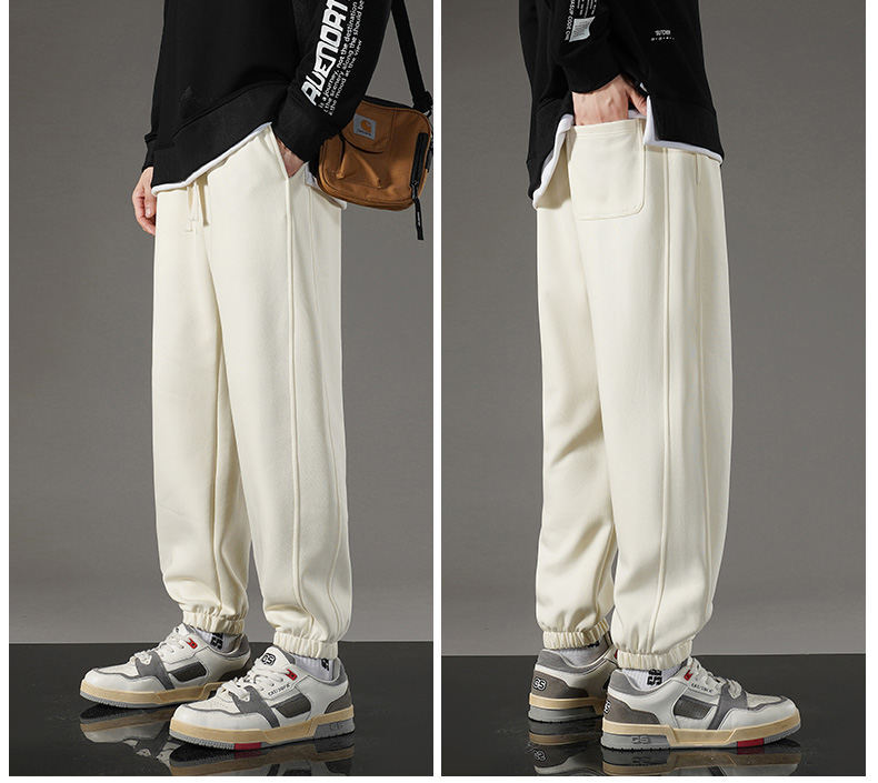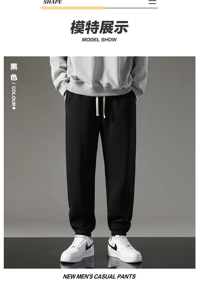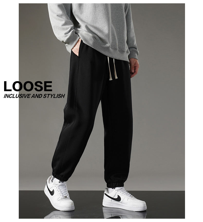 裤子男款秋冬季直筒束脚男士休闲裤加绒卫裤宽松运动裤美式弯刀裤