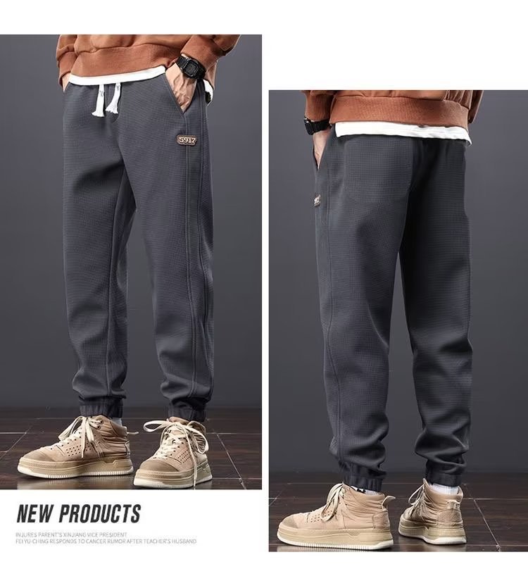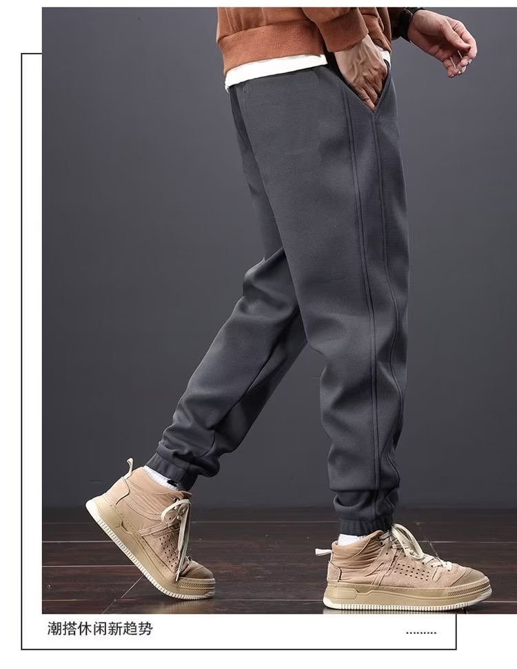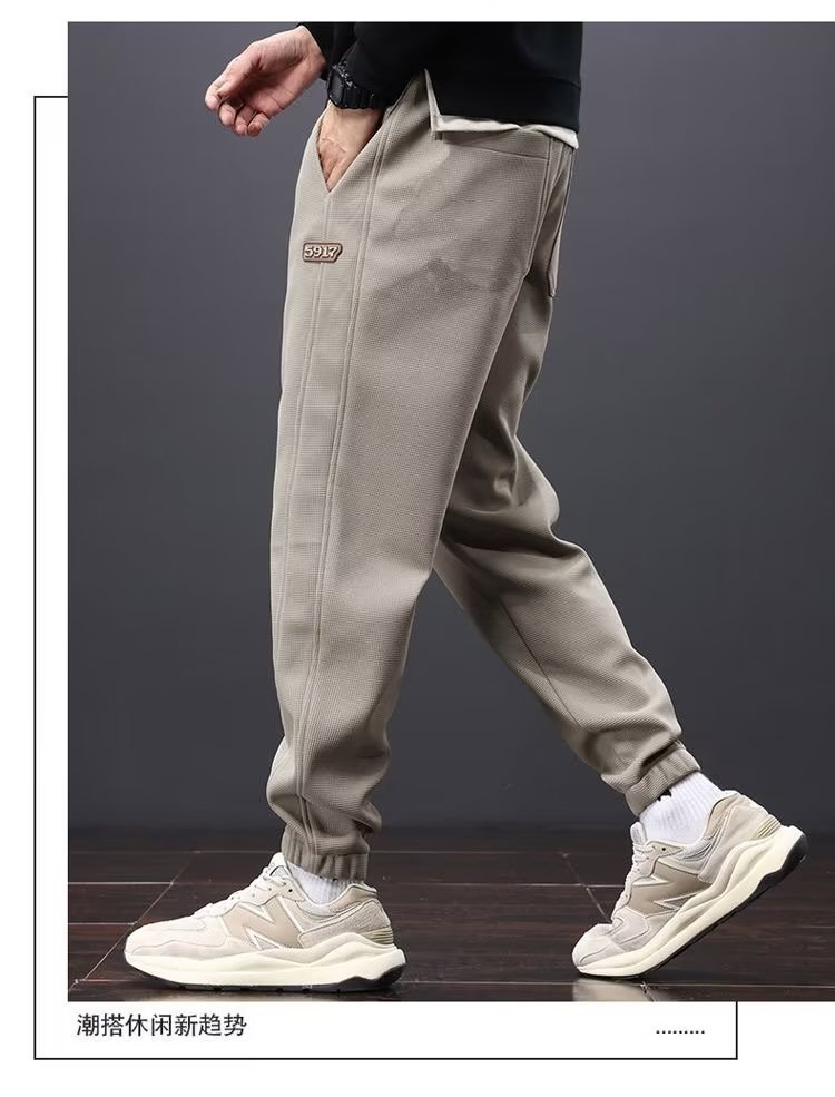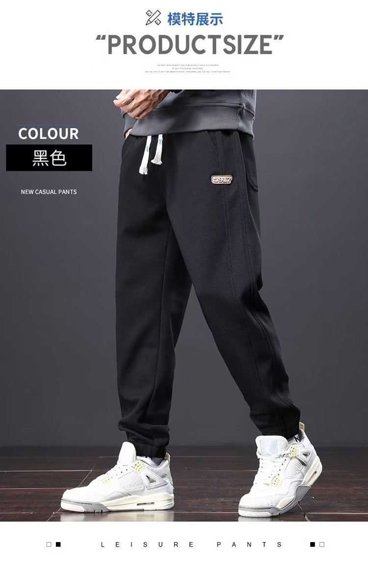 休闲加绒卫裤男士宽松运动裤加厚秋冬季大码束脚裤简约纯色长裤