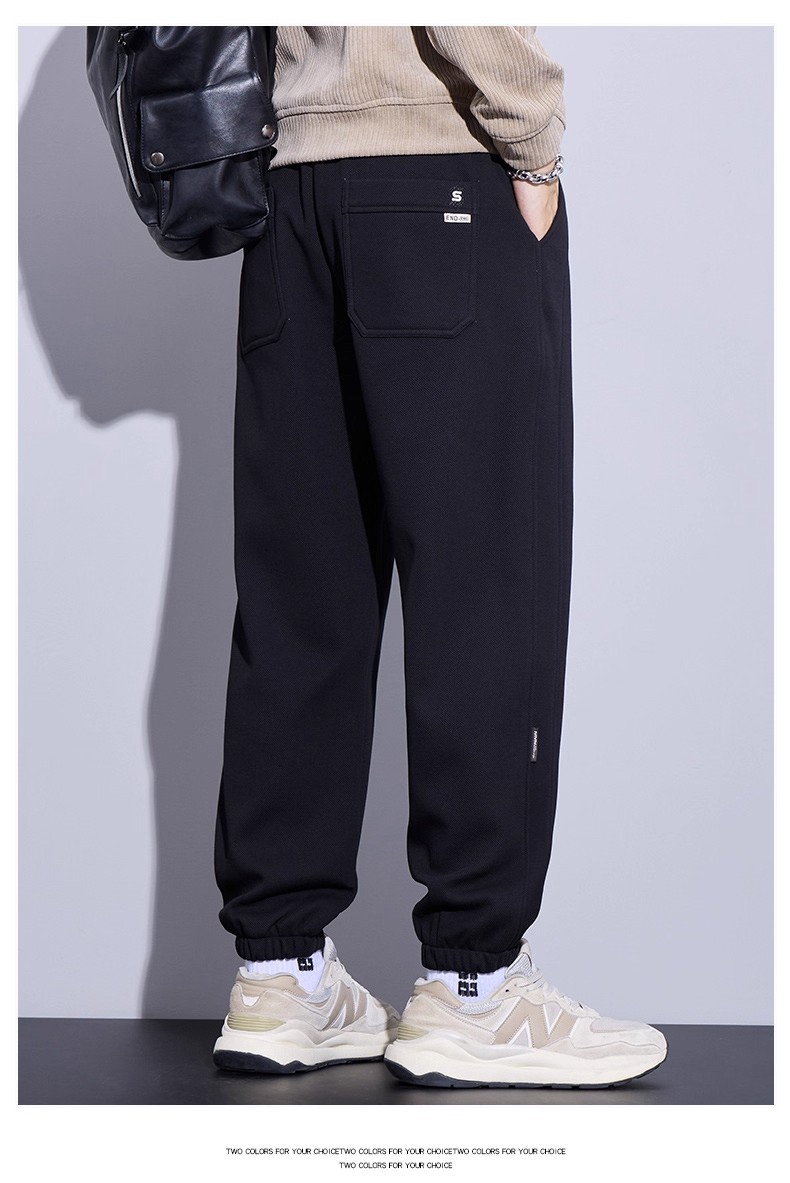卫裤男士春秋款宽松束脚秋季2025新款秋冬加绒青少年运动休闲裤子