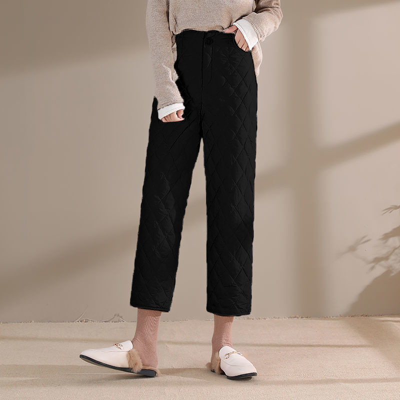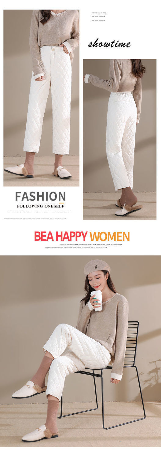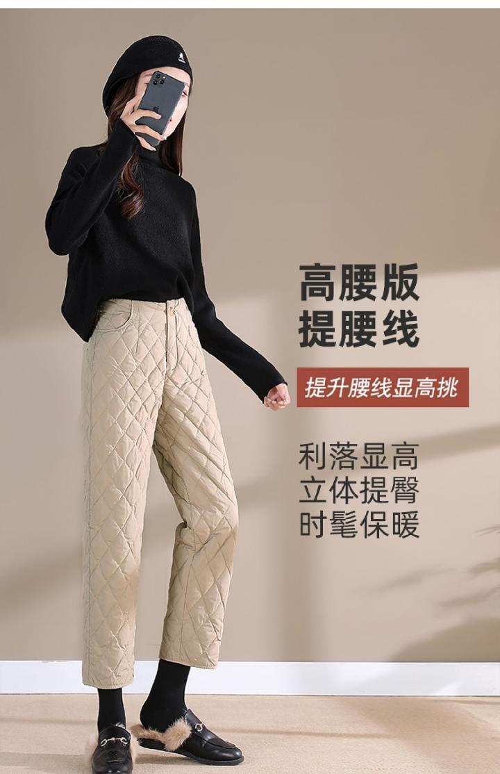 轻薄羽绒棉裤女外穿2021秋冬新款加厚高腰保暖显瘦时尚直筒棉裤潮