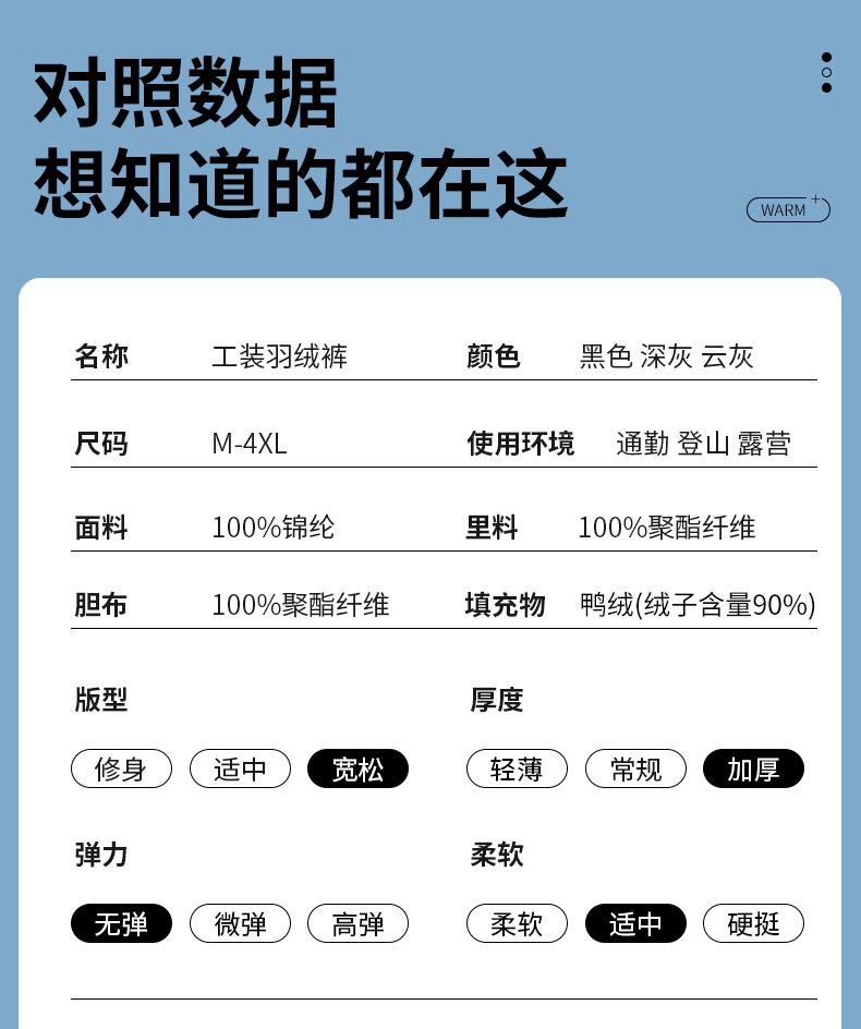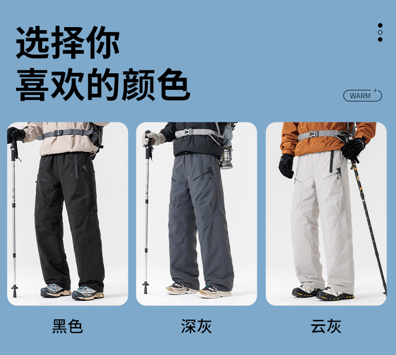 直筒工装羽绒裤男高级感加厚保暖冲锋裤冬季外穿御寒运动休闲长裤