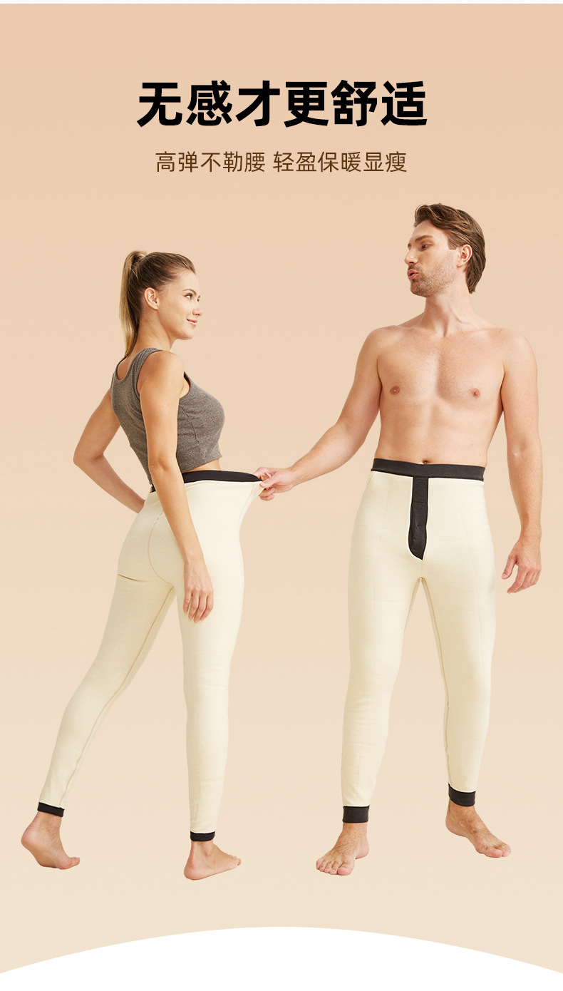 男士蚕丝保暖裤东北加绒加厚蚕丝棉裤冬季打底女士高腰羊毛保暖裤