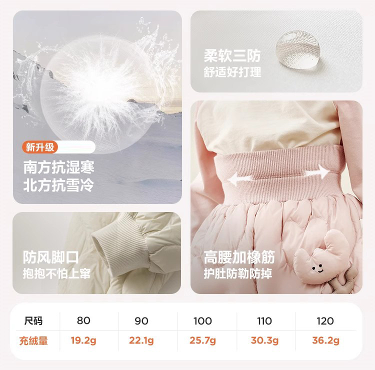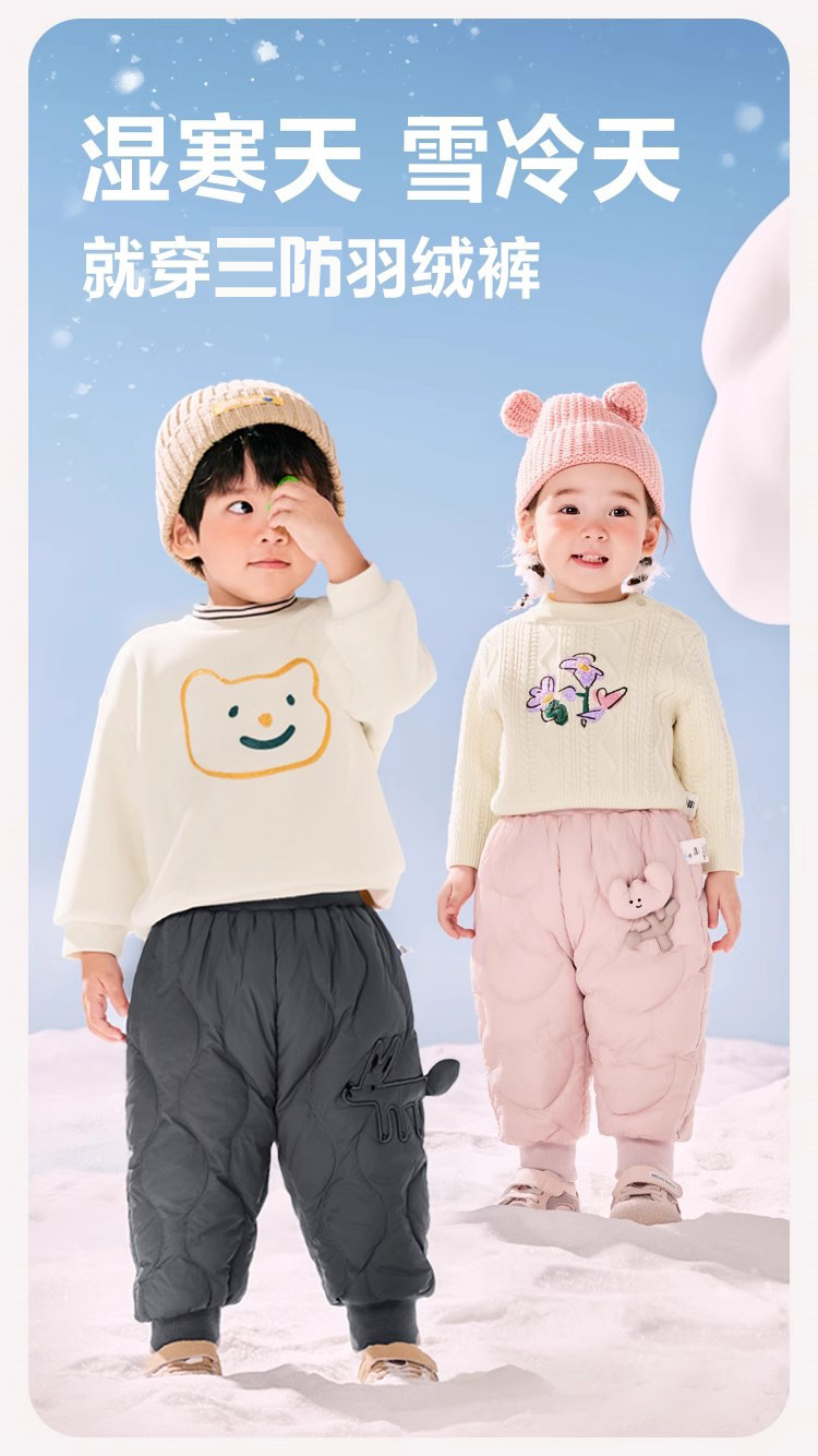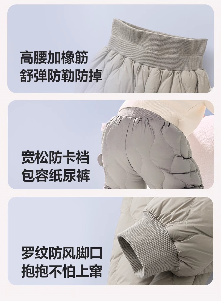 【三防羽绒裤】2025儿童冬季羽绒裤男女童婴儿小宝宝高腰护肚外穿