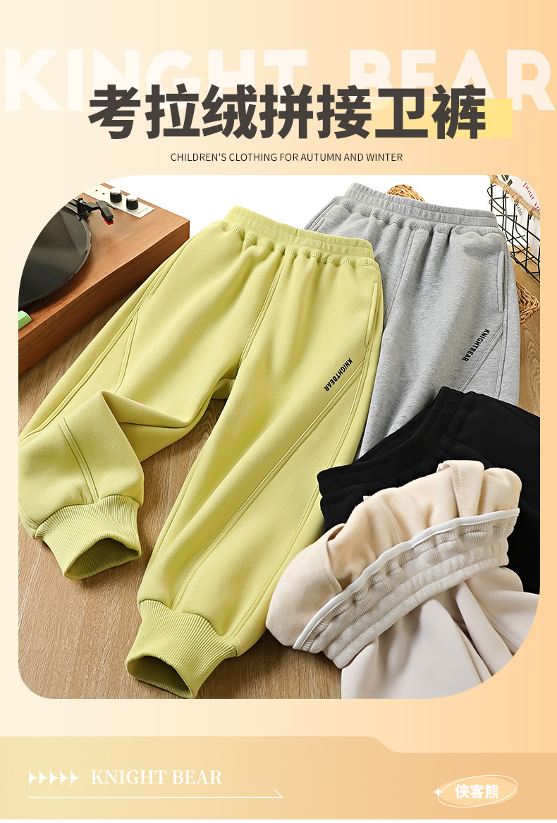 男童冬季一体绒裤子2025新款休闲儿童秋冬加绒运动裤中大童卫裤朝