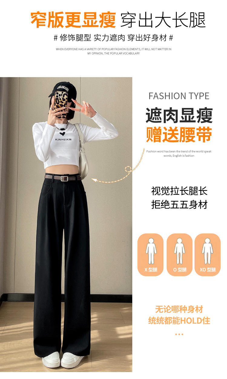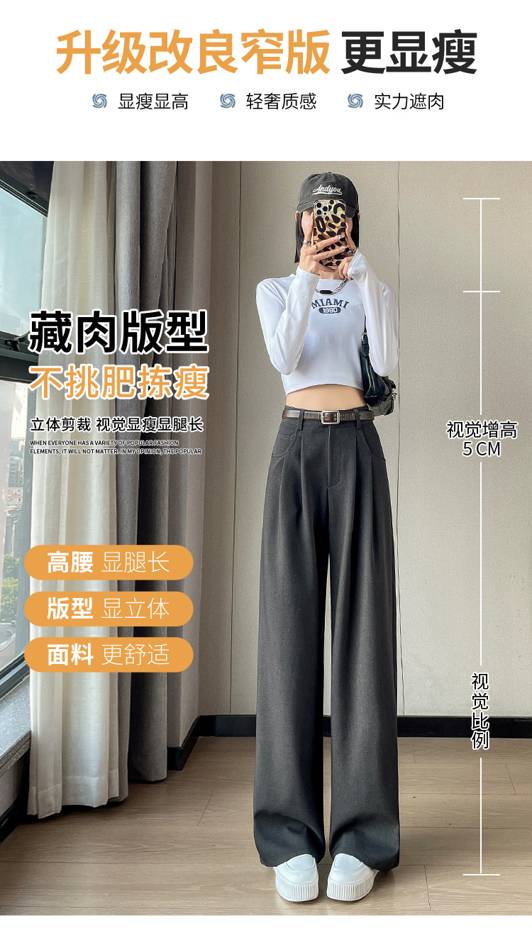 美拉德咖色西装裤女秋冬窄版阔腿裤高腰垂感宽松加绒休闲直筒裤子