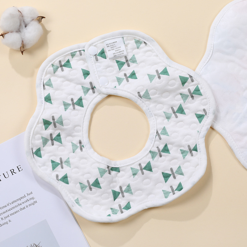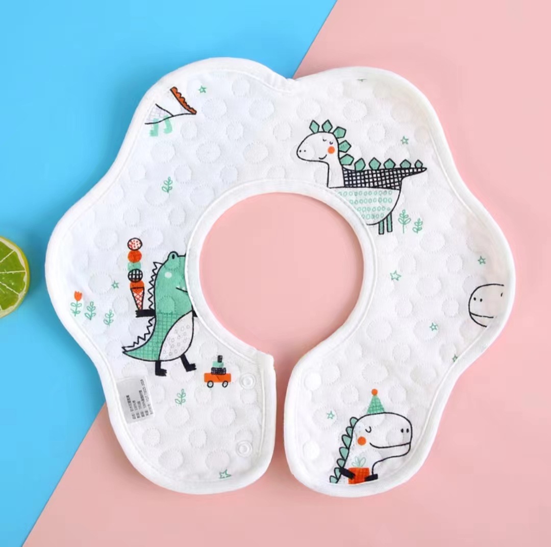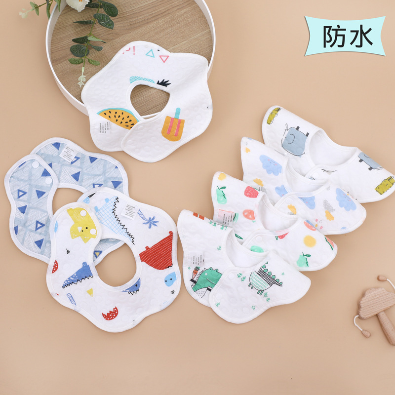 防水围嘴纯棉纱布全棉儿童花瓣宝宝围兜婴儿360度旋转口水巾围嘴