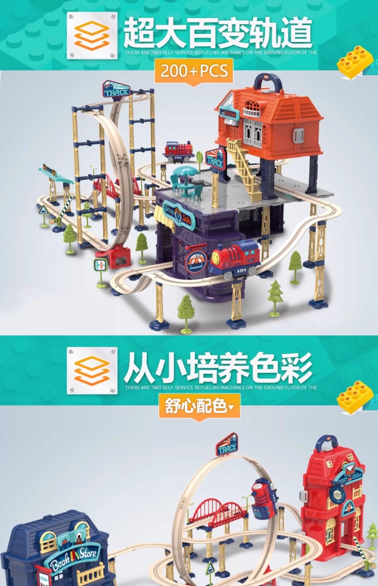 儿童百变拼装火车玩具城市轨道车玩具汽车大冒险城市场景轨道玩具