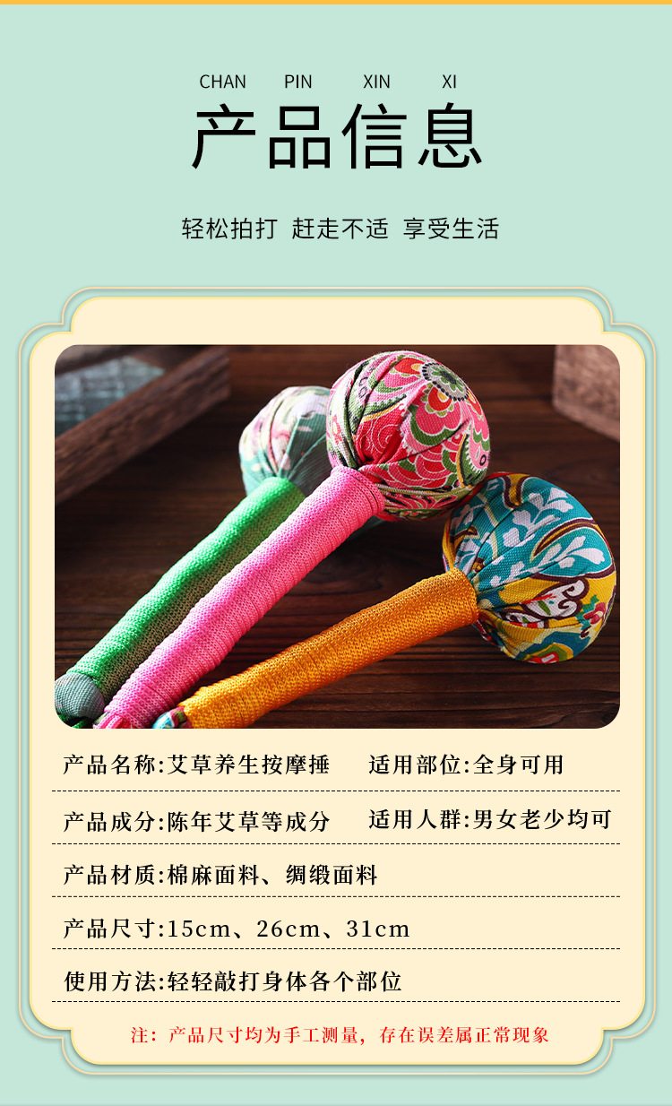 艾草锤批发diy伴手礼品经络养生按摩锤艾绒按摩捶护理艾草养生锤