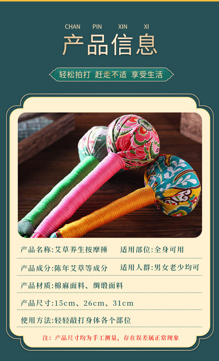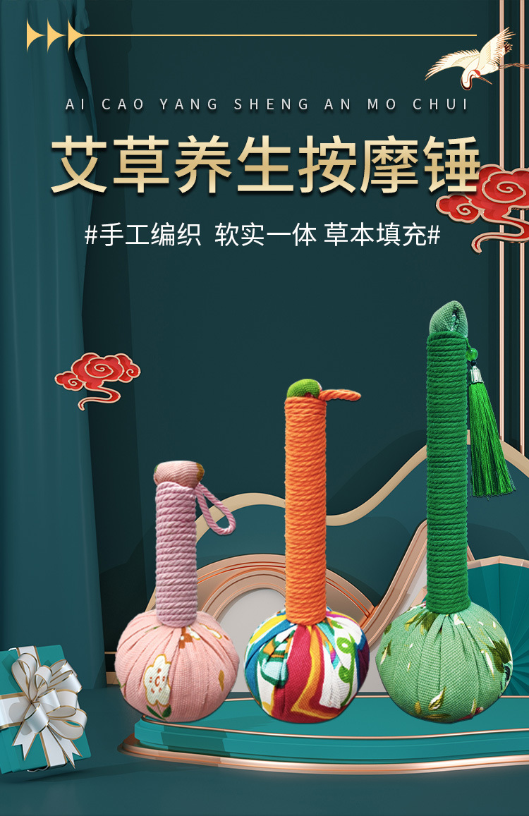 按摩艾草锤节庆用品手持艾叶按摩经络艾灸锤疏通养生锤艾绒捶保健