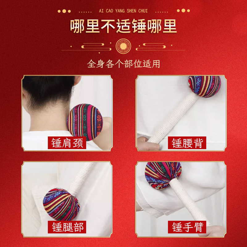 手持经络按摩敲打艾草养生锤肩颈腰椎拍打艾灸锤全身按摩艾草锤