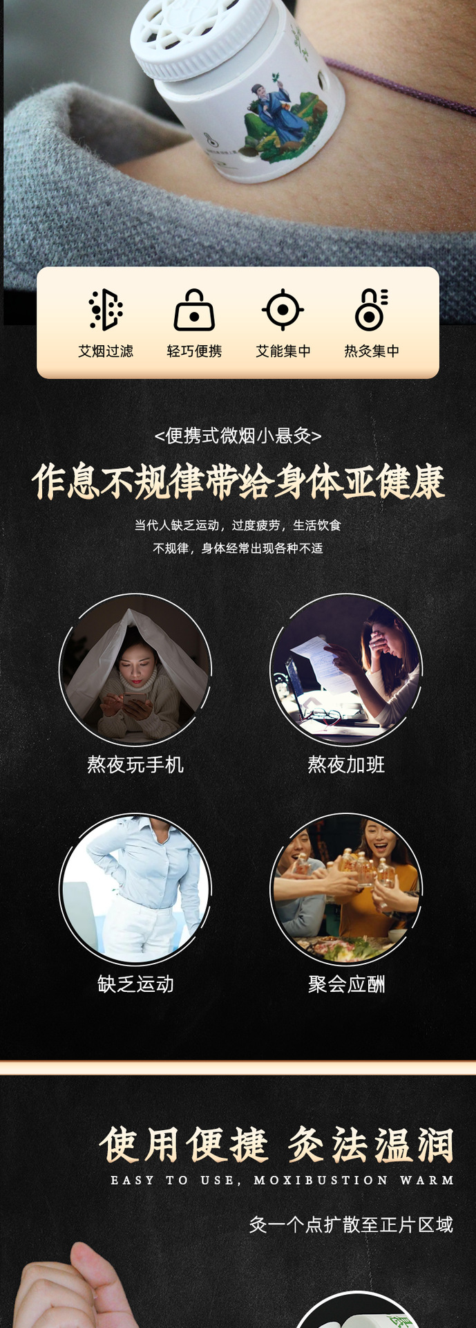 小悬灸微烟随身艾灸桶便携艾灸罐七日小悬灸盒双重控温迷你悬灸桶