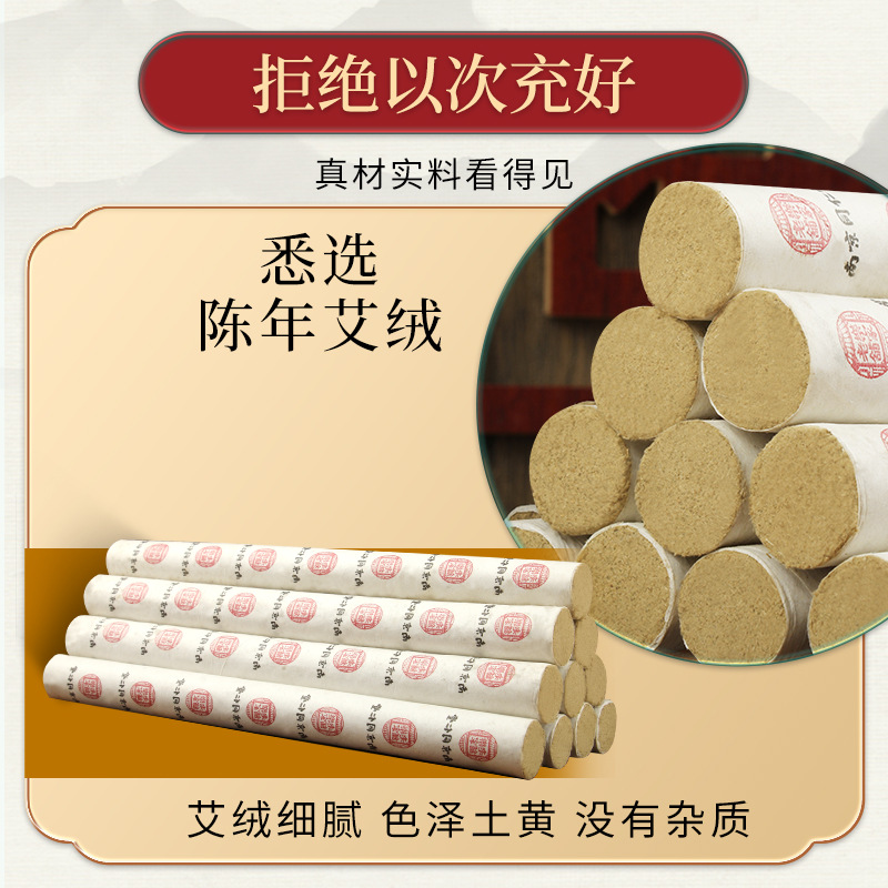 南北京同仁堂艾条家用陈艾叶桑皮纸艾绒条艾灸柱艾柱石磨绒艾灸条
