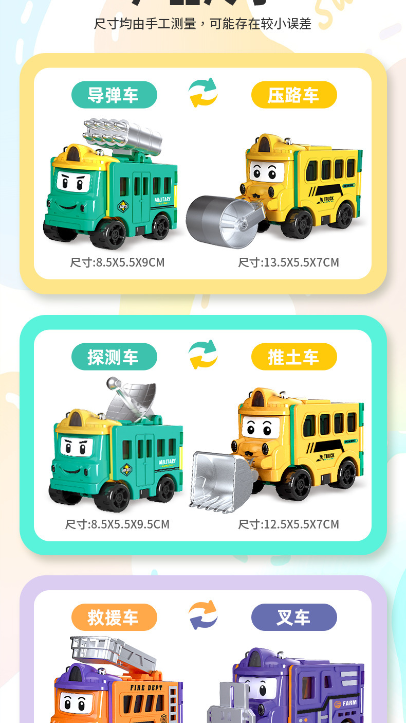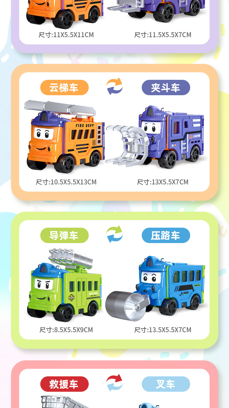 厂家直发卡通变形儿童玩具反转百变车惯性行驶趣味双面翻转工程车