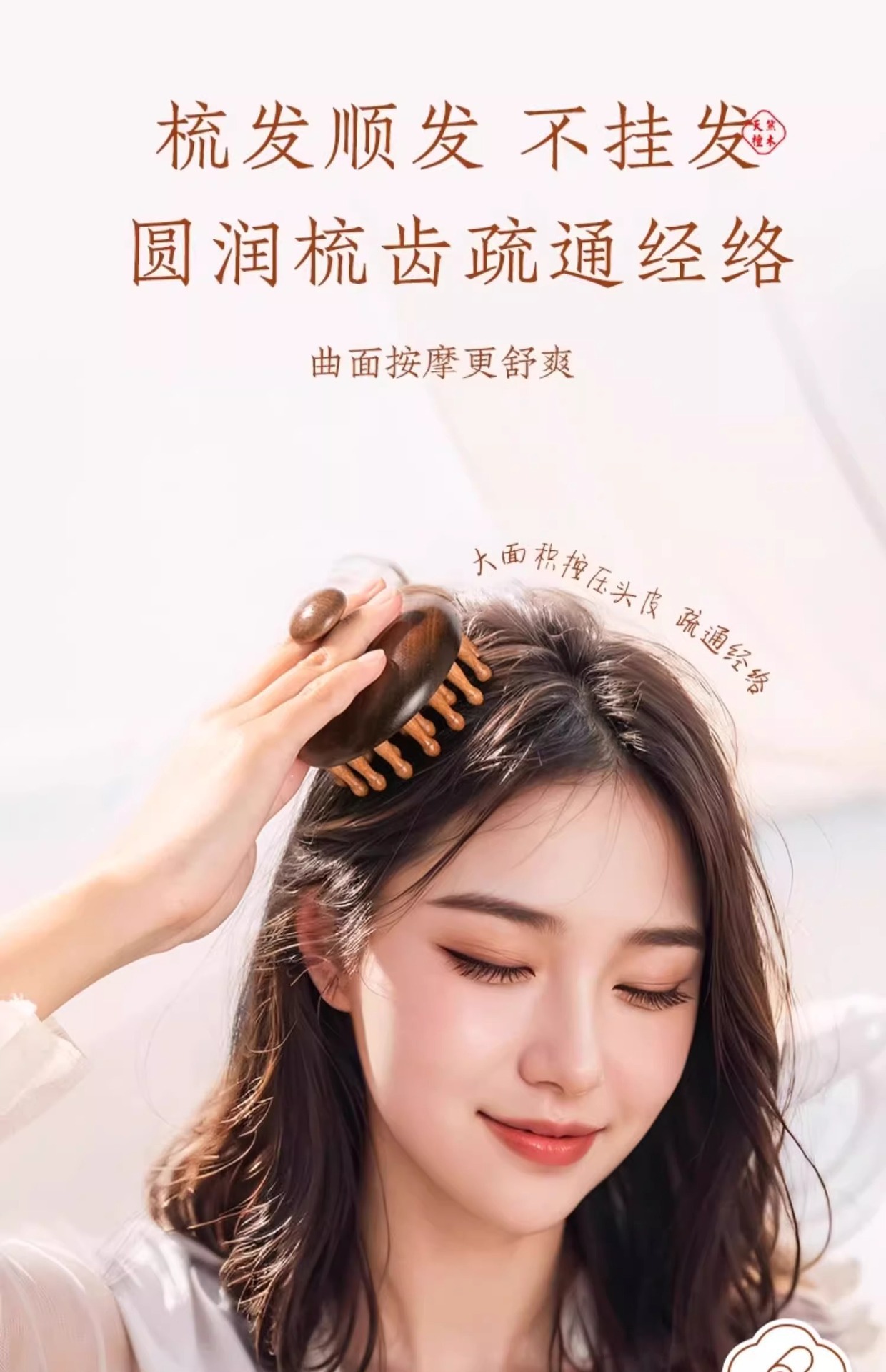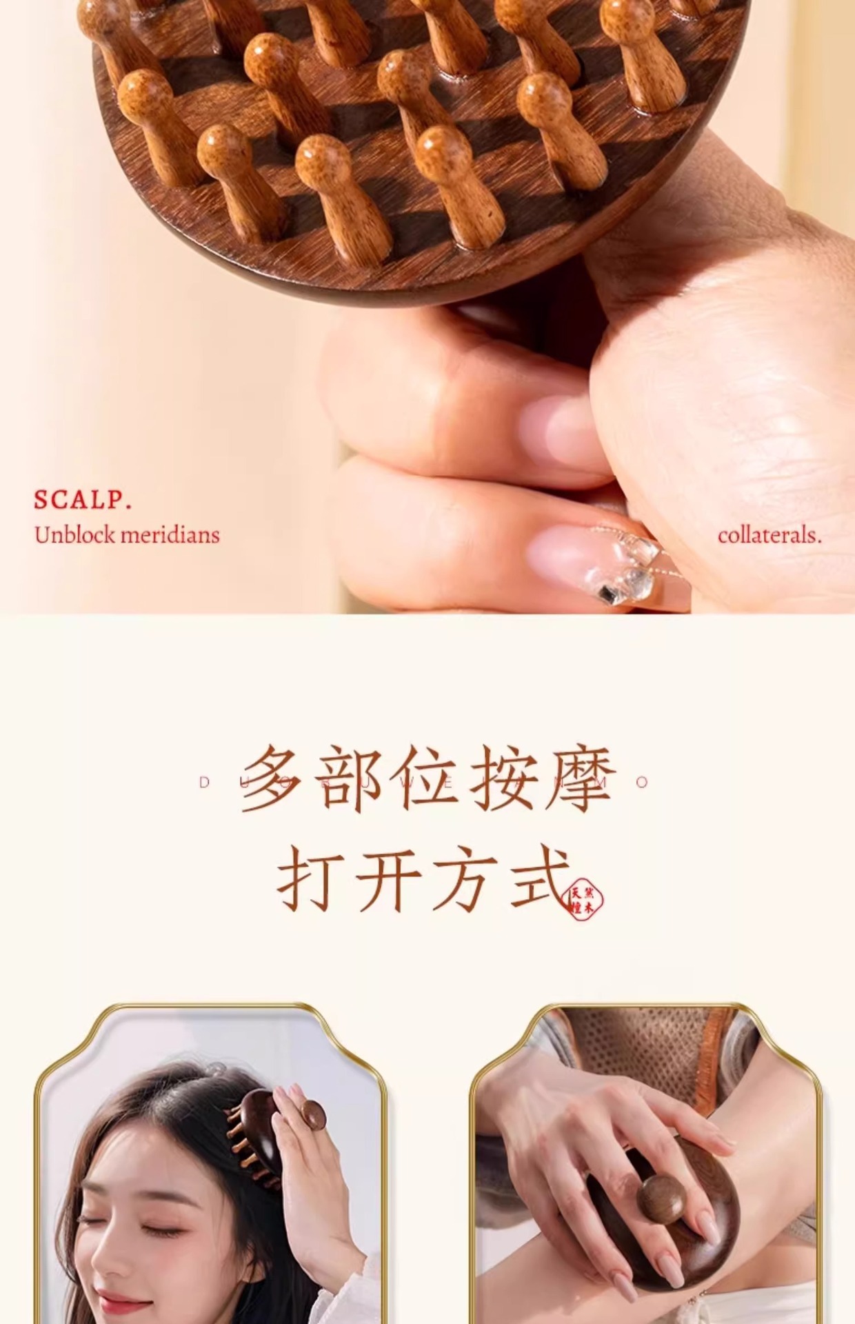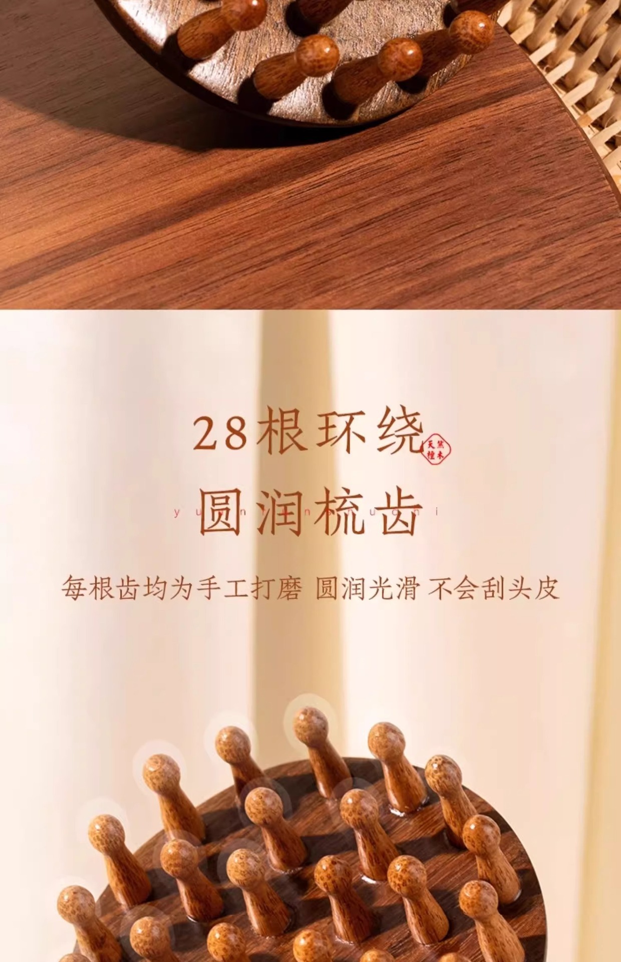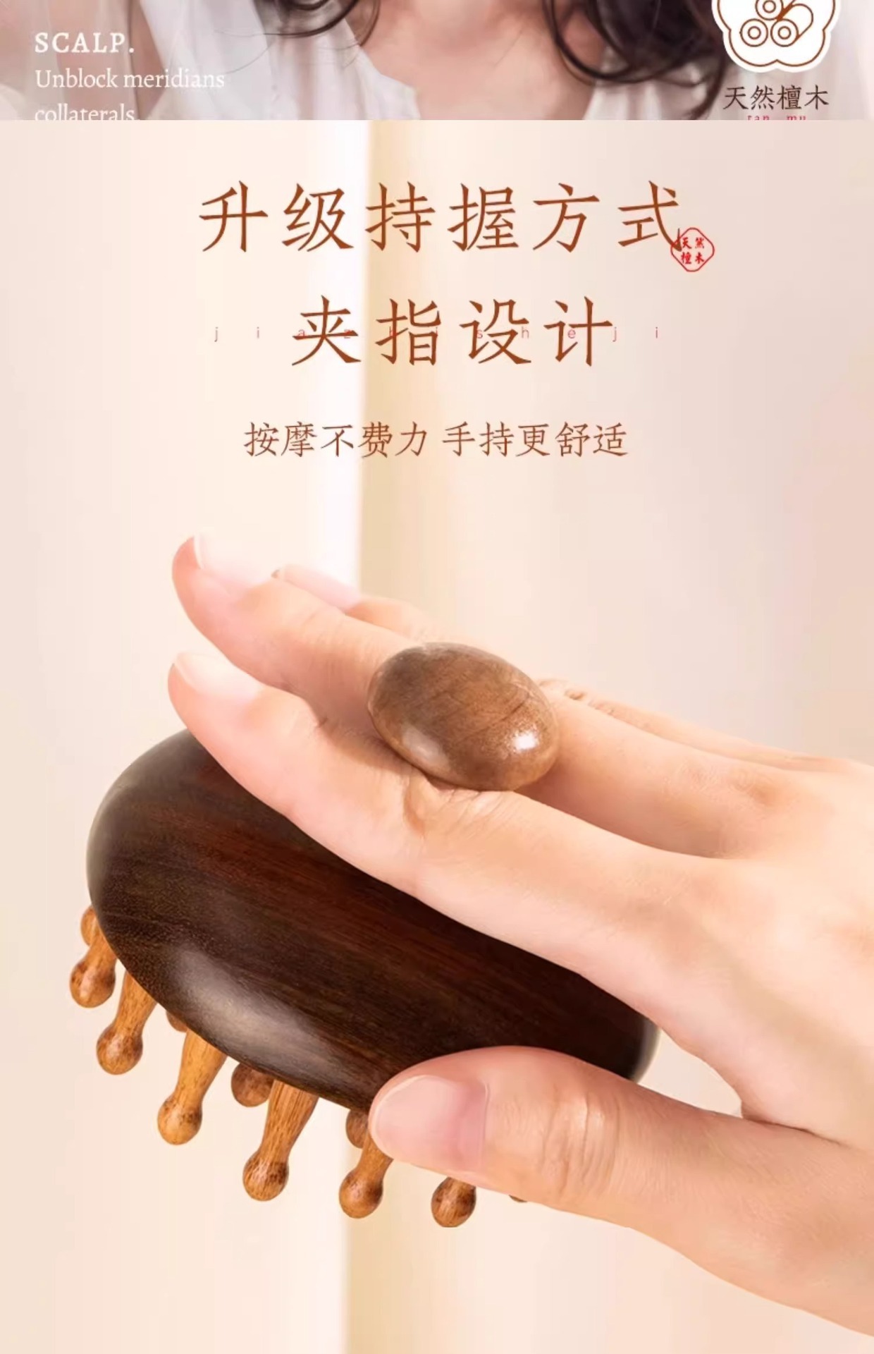 檀木按摩梳经络梳头皮疏通神器头发疗养生头部按摩器木梳子防脱发