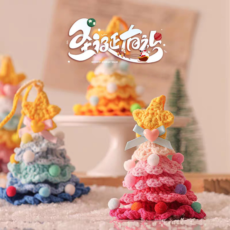 爆款圣诞节Christmas tree车挂件圣诞树毛线手工钩织礼物创意挂件