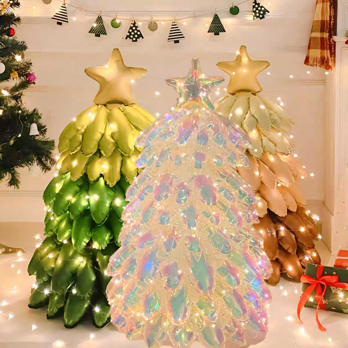 圣诞树气球超大号水晶幻彩立体充气铝膜气球节日氛围场景布置装饰
